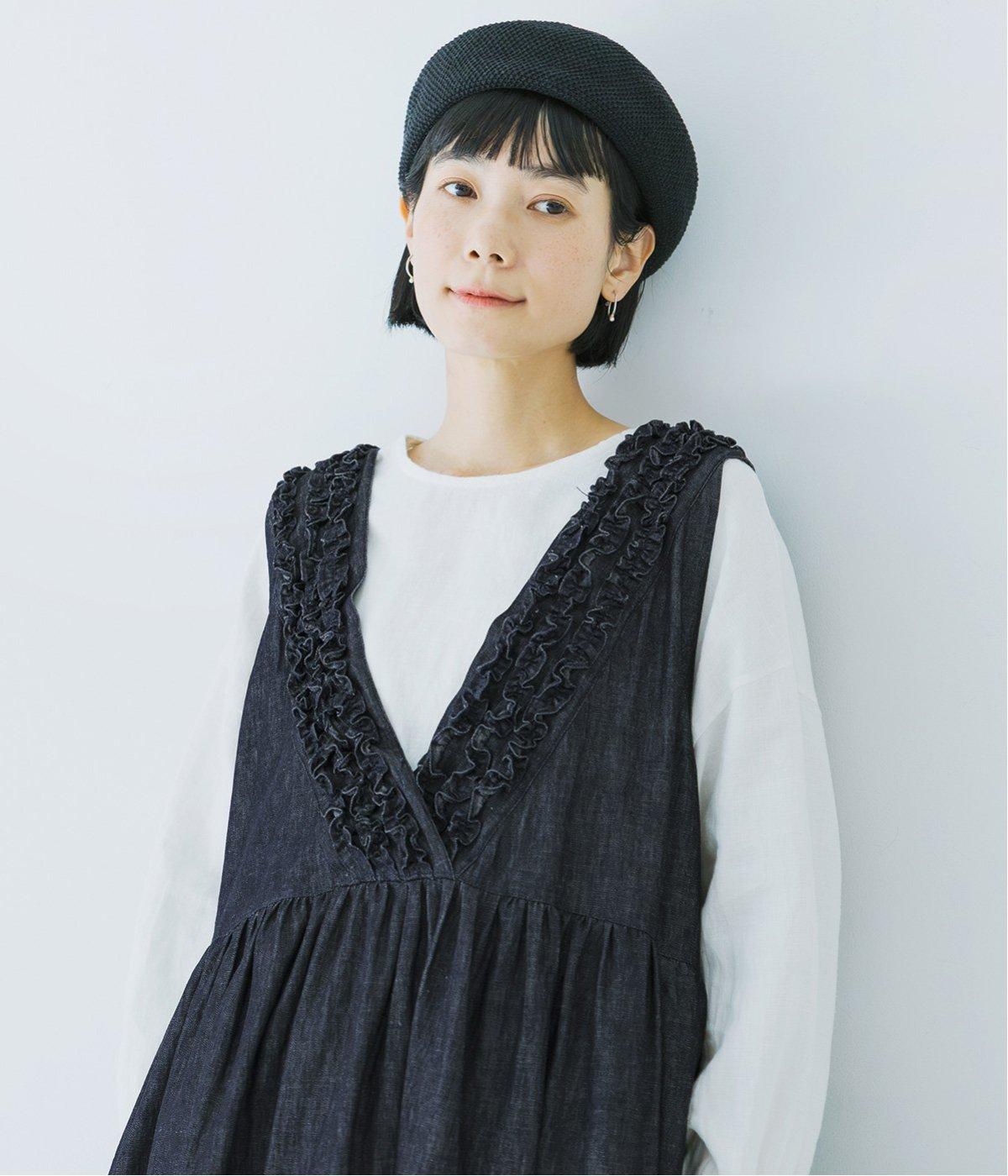 前後に施したフリルが、どの角度から見ても表情を添える一枚。スタイリングしやすく、アウターを羽織ってもバランスよくまとまります。