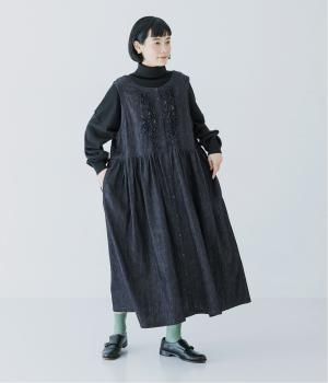 >はデニム素材でもカジュアルになりすぎず、品のある佇まいに導いてくれるカラー。インナーにタートルネックを重ねれば、今の時季もあたたかく着こなせます。