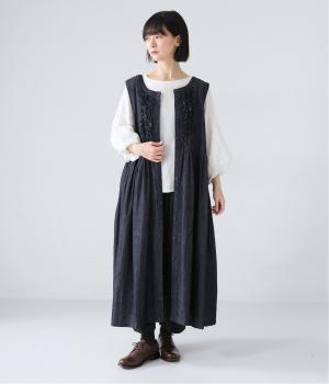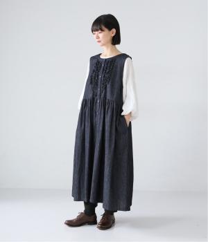 素材は軽やかで自然な風合いの、コットンリネンデニム。通年着られる、ほどよいハリと厚みが魅力です。