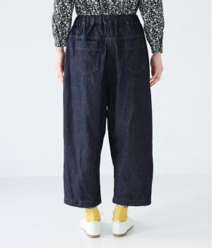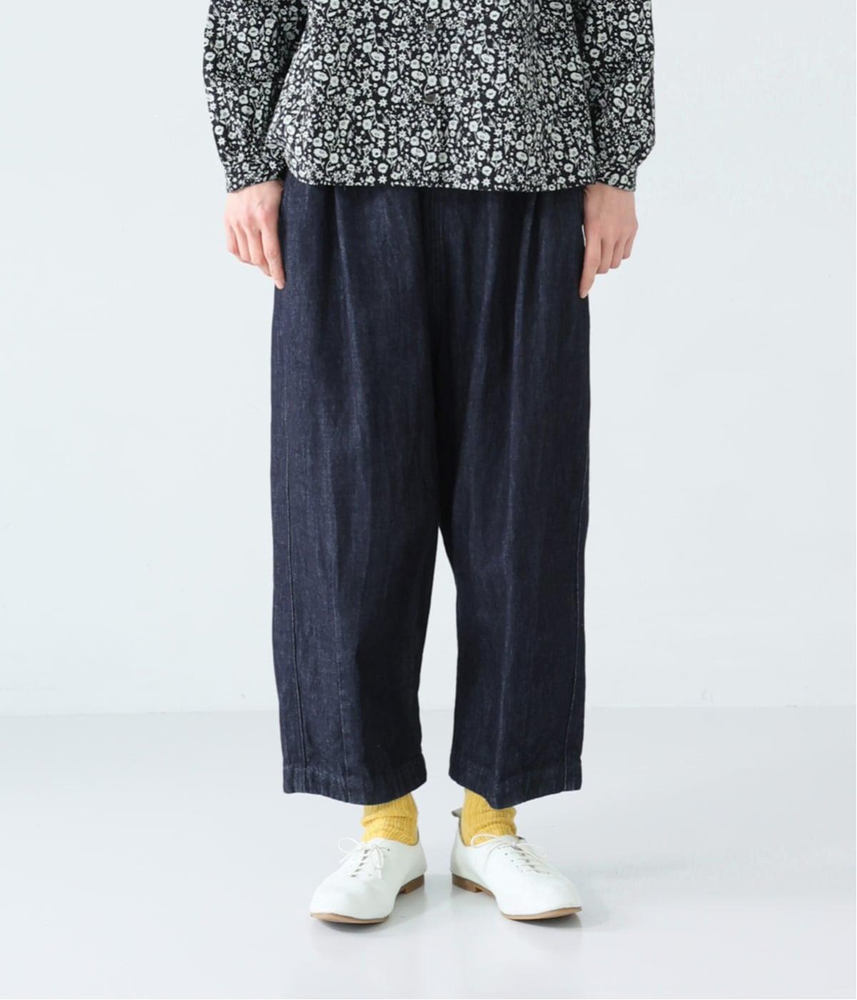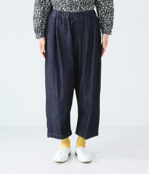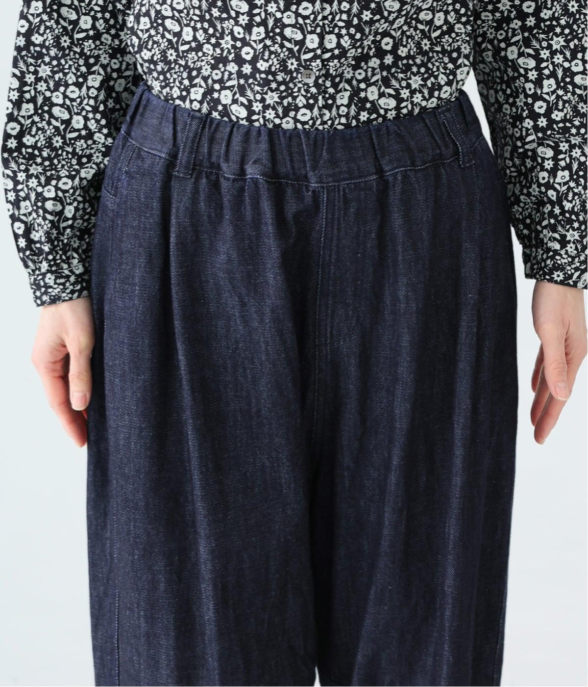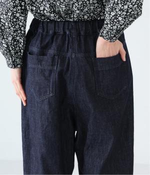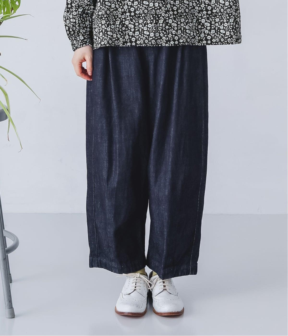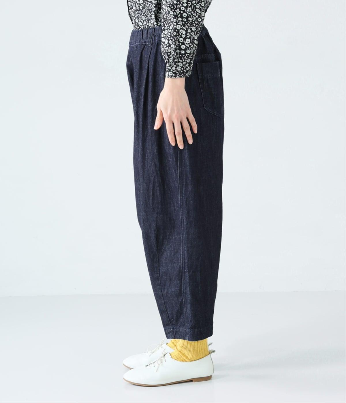 サイドのカーブ切替えなど、ふんわりと立体的に仕上げたバレルシルエットのパンツです。ゆったりとした腰まわりと深めの股上ではき心地がよく、裾にはダーツが入っているのですっきりとした印象に。ウエストはゴム仕様なので、リラックスした着用感なのもうれしいポイントです。