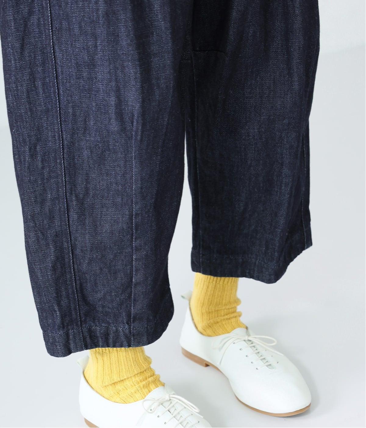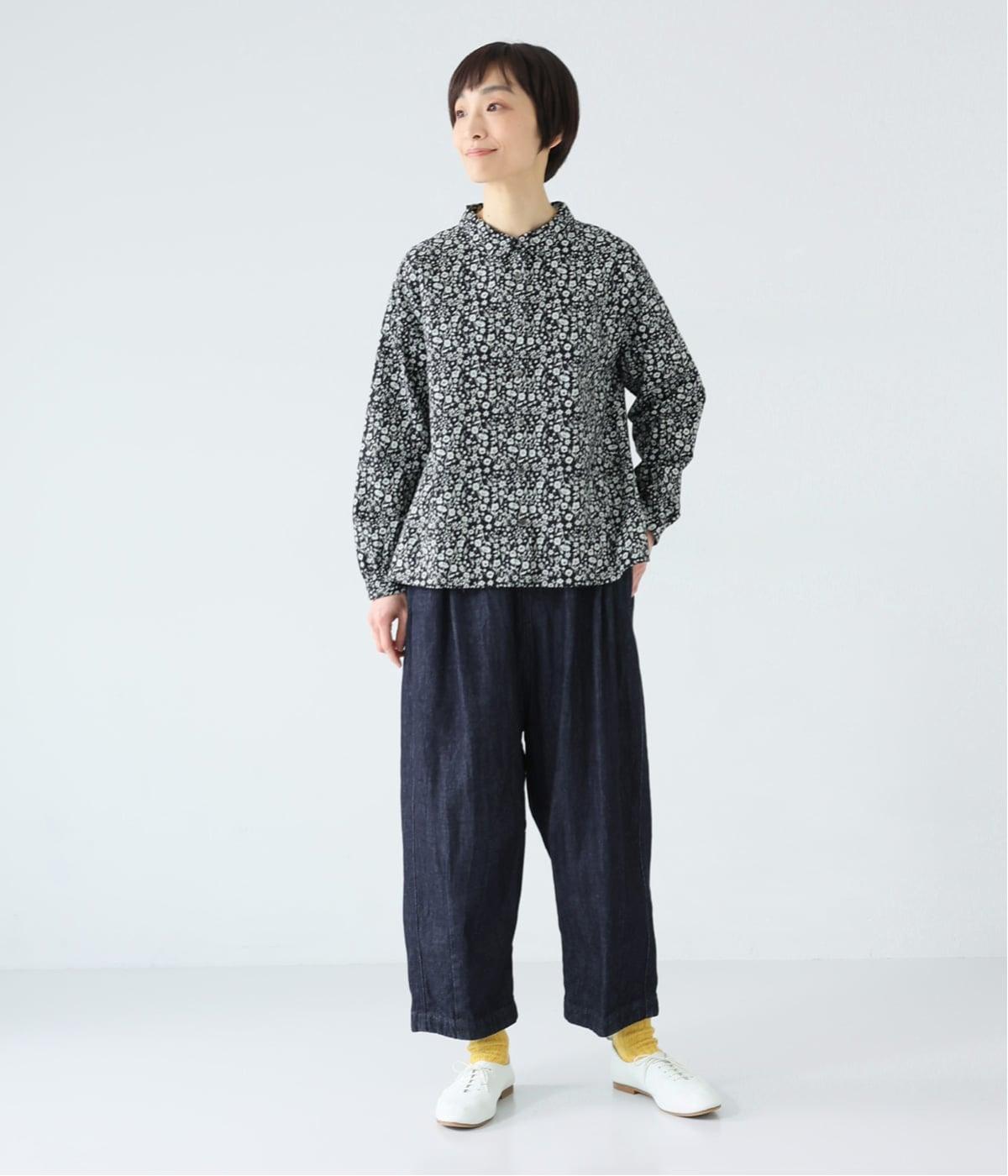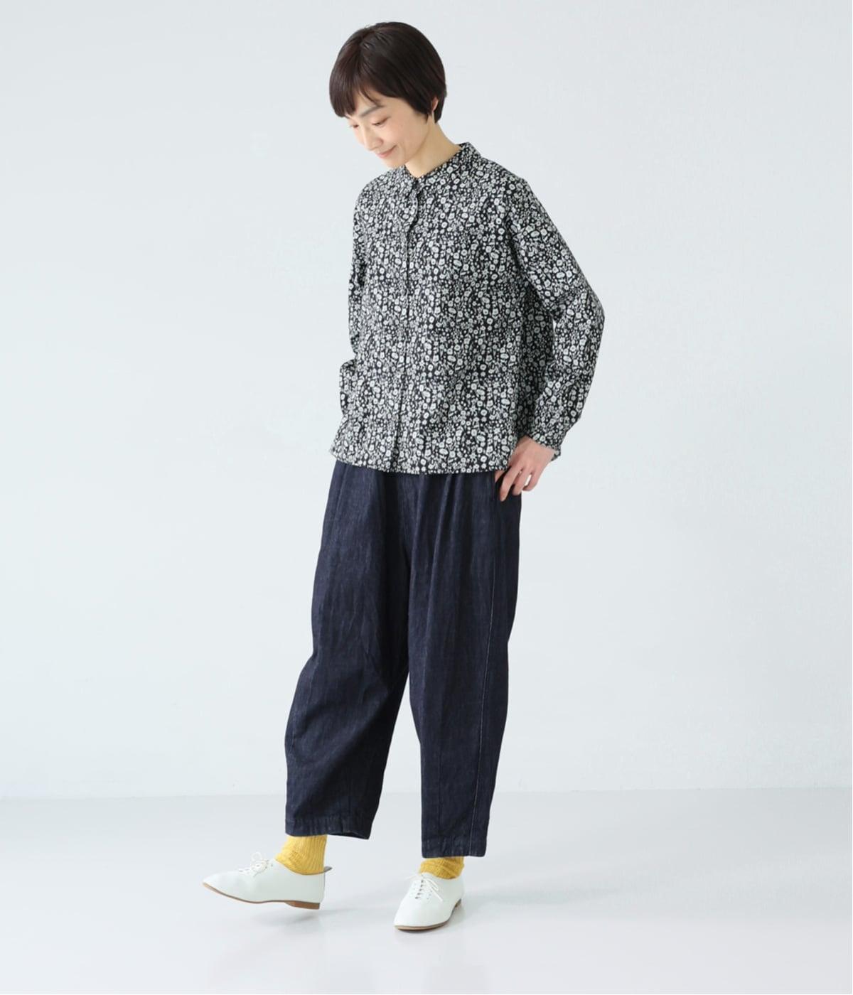ほどよい厚みの甘織デニムは、ハリを感じつつもくったりとやわらかな風合い。着用するほどになじんでいくエイジングもたのしめます。かっちりしすぎない自然な表情が魅力で、カジュアルにも落ち着いたコーディネートにも合わせやすい素材です。