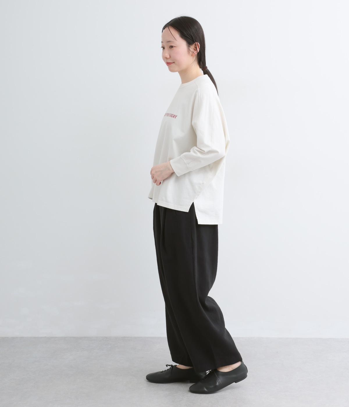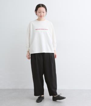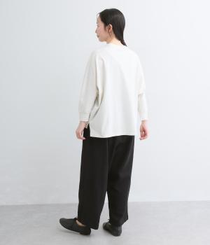 ほどよいハリできちんと見えするパンツです。普段使いからフォーマルまで幅広く着用いただけます。腰まわりにゆとりを持たせ、体のラインを拾いにくいシルエットに仕立てました。ウエストはサイドからうしろまで、ぐるりとゴムを配しています。