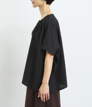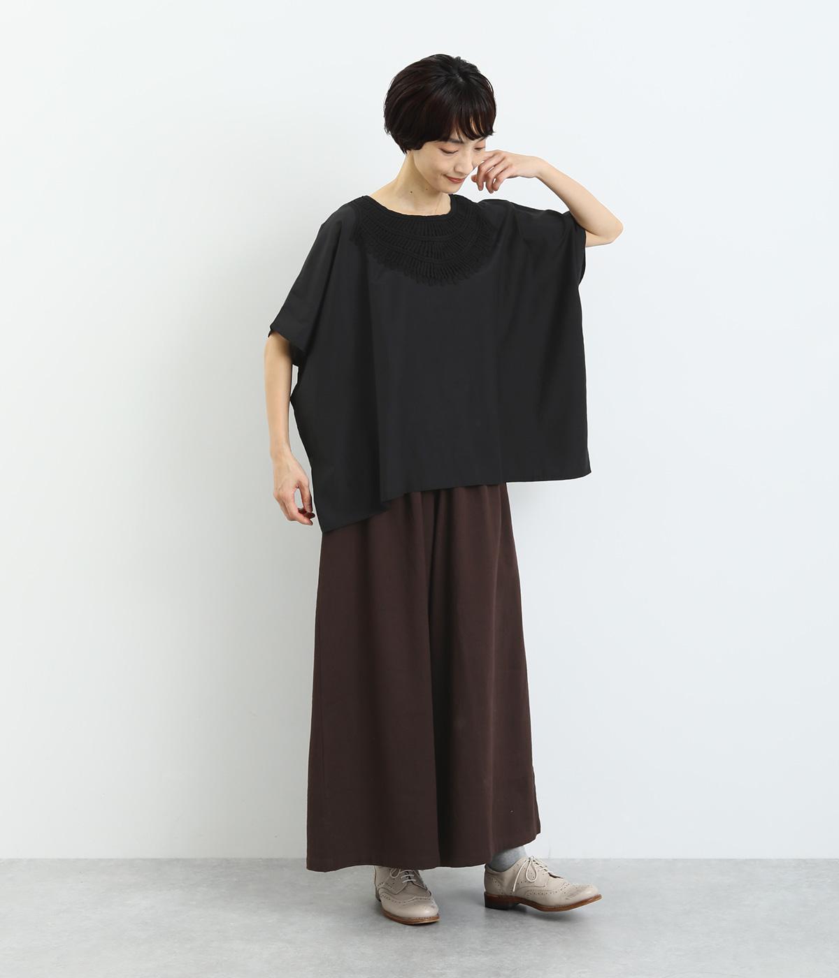 ボックスシルエットに首元のレースが華やかなプルオーバー。ショルダーラインからとろんと流れるようなドレープは、上質な素材ならでは。そのままシンプルに着るのはもちろん、インナーとの重ね着を楽しむのもおすすめです。ゆとりのある身幅で、体型を選びません。