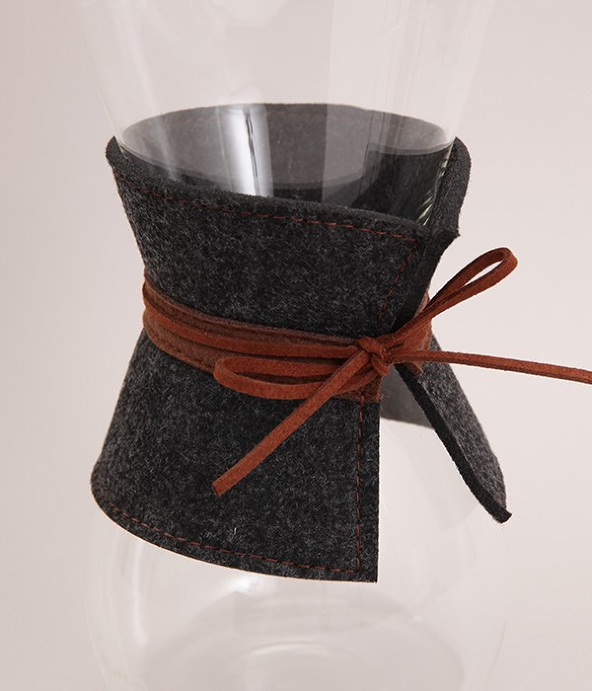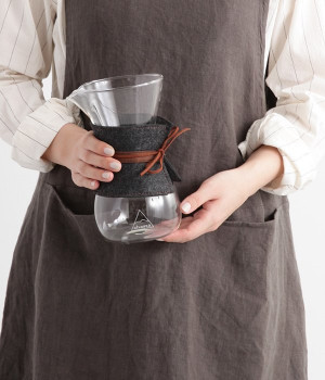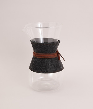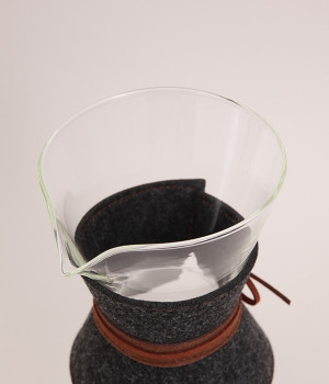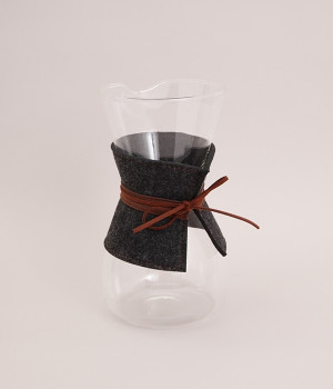 熱湯はもちろん、電子レンジも使用可能な耐熱ガラス製のコーヒーカラフェです。実用性に優れているだけでなく、丸みを帯びたおしゃれなフォルムも魅力の一つ。本体にはフェルト布と革紐をセットするなど、見た目にもこだわっています。コーヒーを淹れる道具として使うのはもちろん、インテリアの一部としても映えるアイテムです。