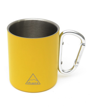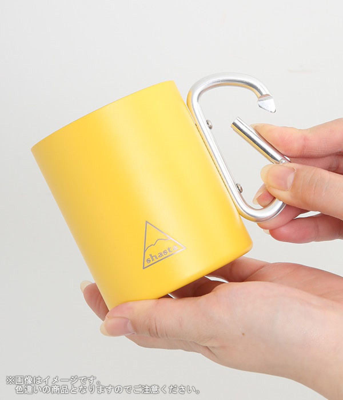 ハンドル部分がカラビナになった使いやすいマグカップです。持ち運びしやすく、取り付けられるため、おうちキャンプやバーベキューなど行楽にピッタリ。保温、保冷力が優れている二重構造、カップ外側は汚れがつきにくいパウダーコーティング、内側は錆びにくい高耐食のステンレスを採用した優れた機能性もポイントです。アメリカ発のブランドshastaはペットボトル飲料やお弁当等の購入を減らし、プラゴミなどの廃棄を減らすことで環境によいサイクルを作り出すことを提案するブランドです。
