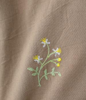 ふんわりとやわらかな肌ざわりにほどよいハリを備えたリネン混のコットン生地を使用しています。軽やかで通気性がよく、春夏でも快適に着られます。