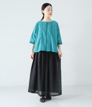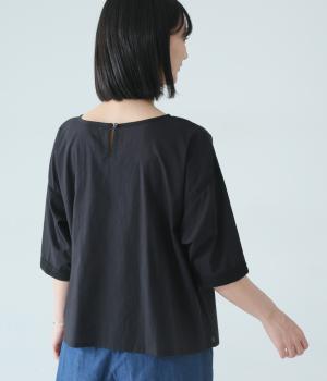 薄手で高密度に織られたコットンキャンブリック生地を使用しています。なめらかな肌ざわりと上品な光沢を備え、ほどよいハリのある質感です。さらりとした着心地で、夏でも快適に着られます。