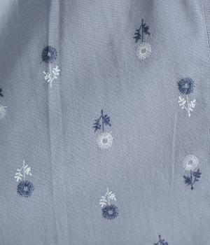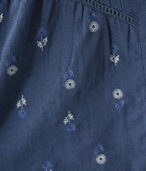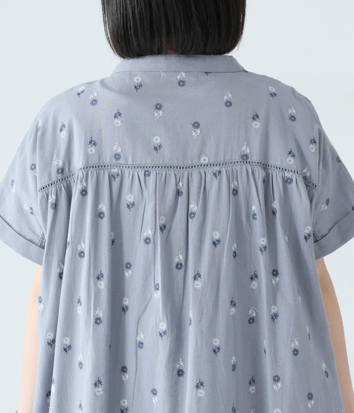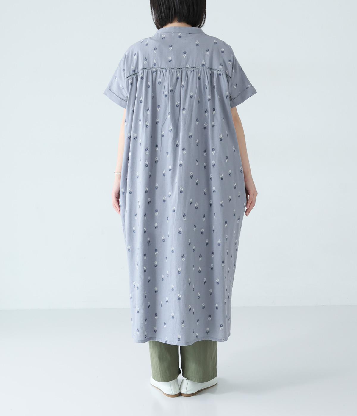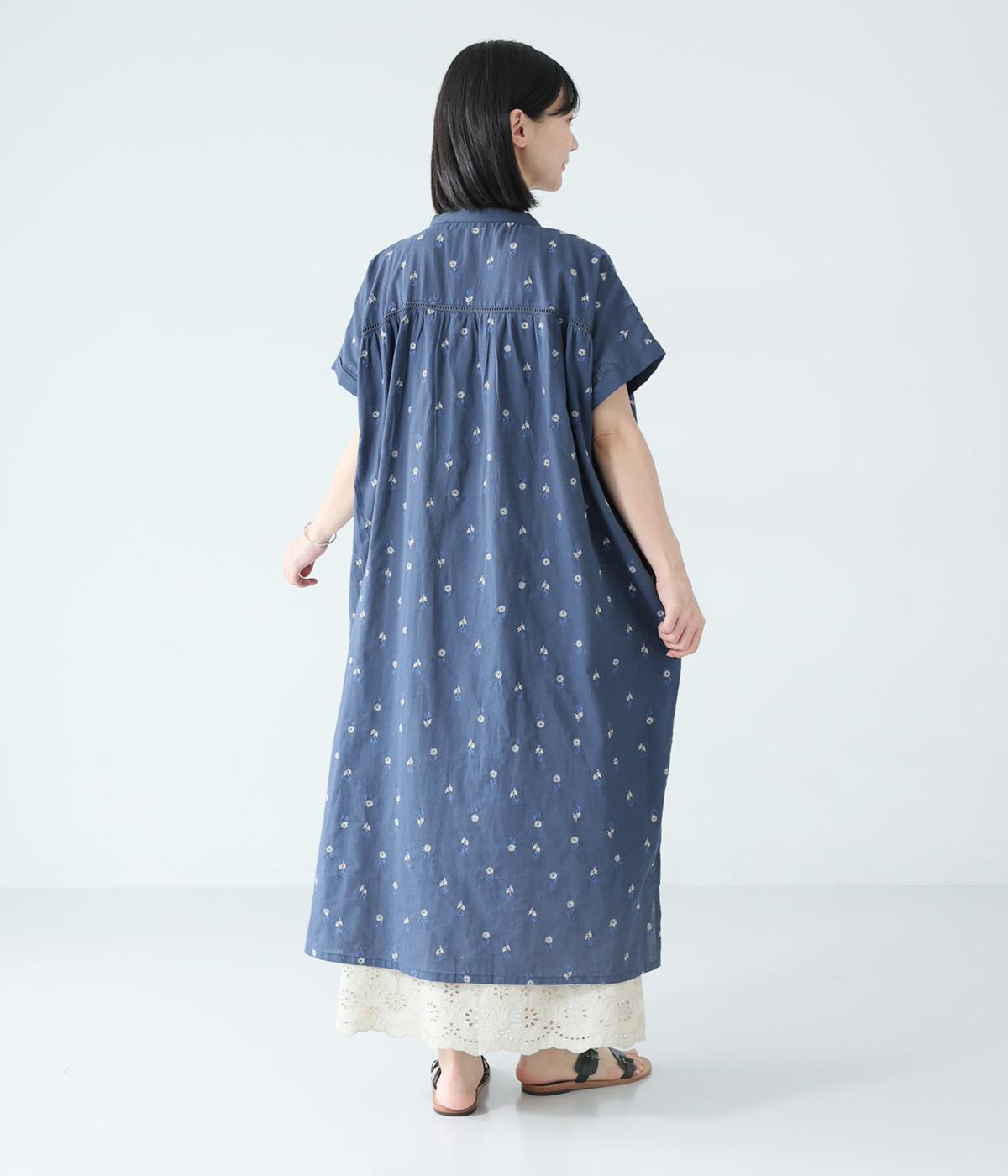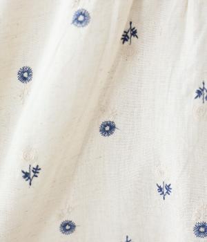 ナチュラルな麻混生地に花柄刺しゅうをあしらったワンピースです。ピンタックやはしごレースがクラシカルな雰囲気を添えます。二の腕をやさしくカバーする半袖丈に両サイドポケット付きで、デイリーに取り入れやすく仕立てました。