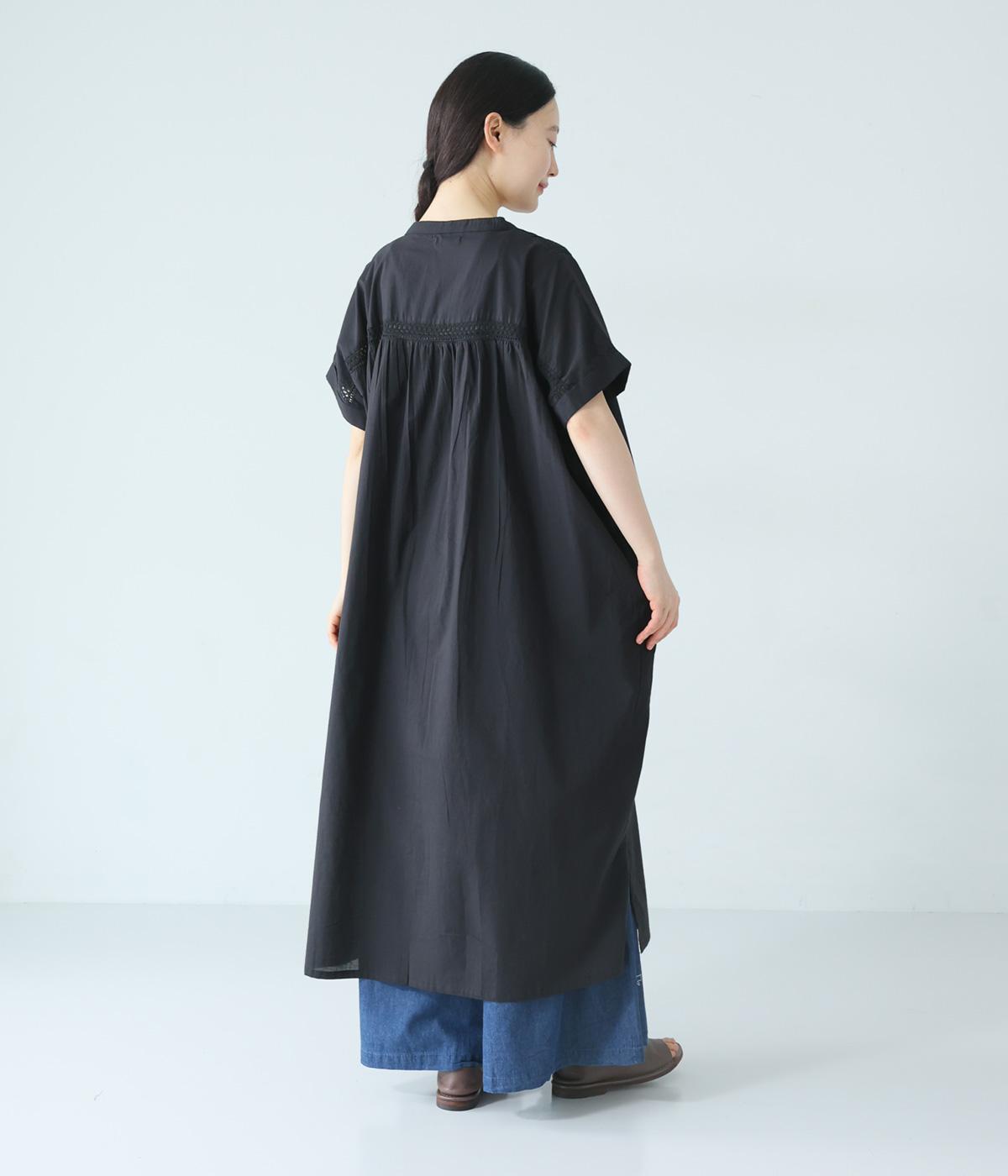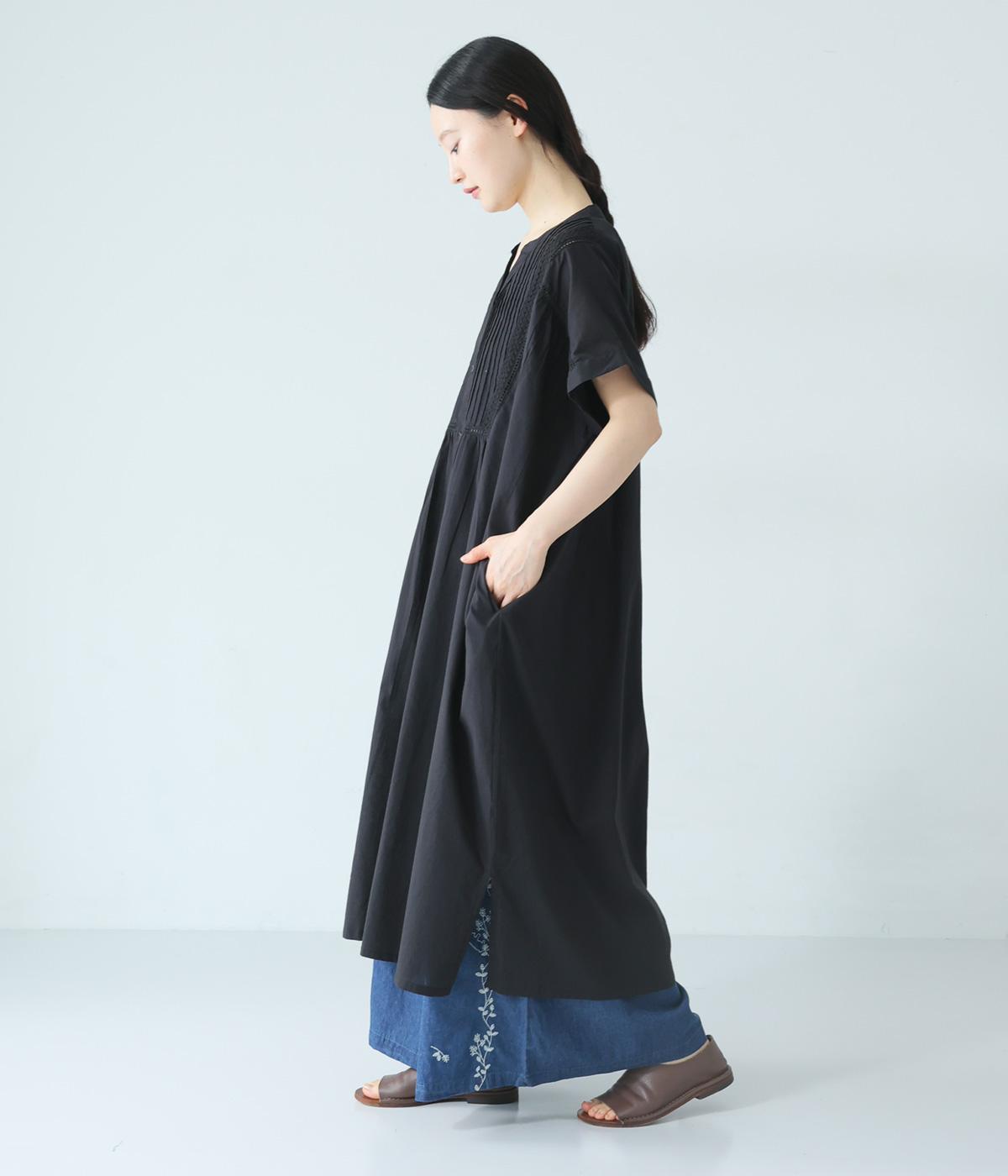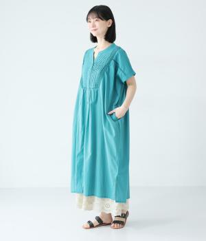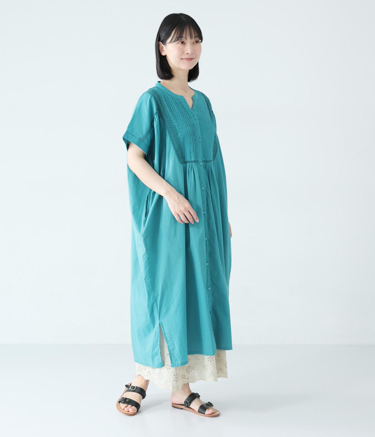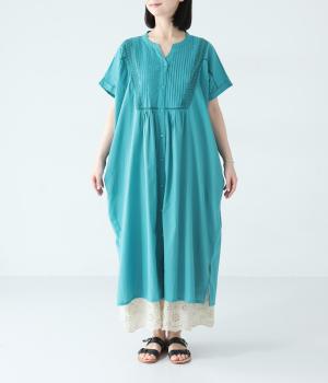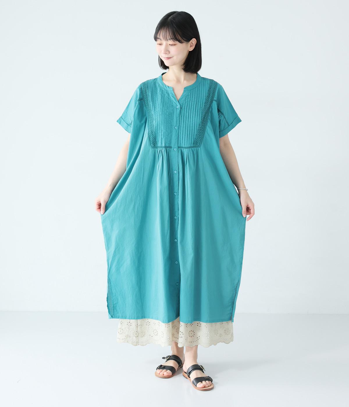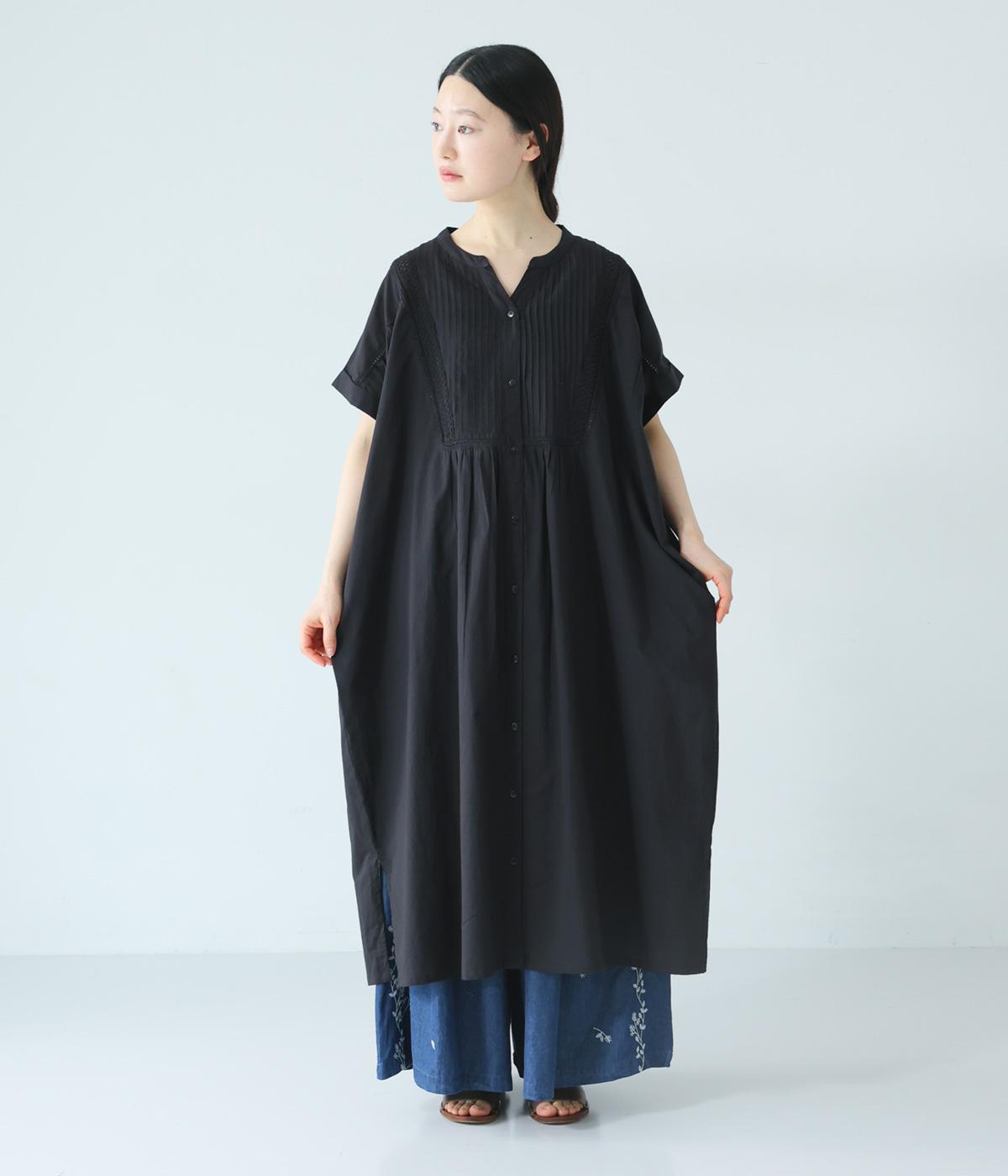 ピンタックとコットンレースをあしらった、フェミニンなムードをまとうワンピースです。デニムと合わせてカジュアルダウンしたスタイリングにもすっとなじみ、日々の装いに幅広く取り入れられる一枚です。