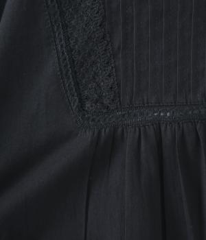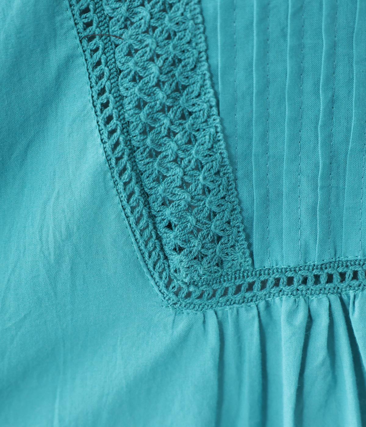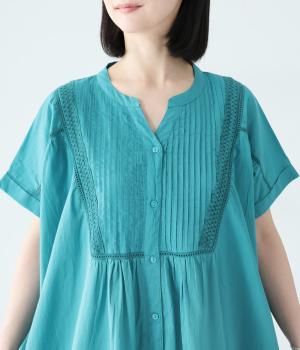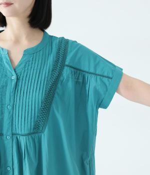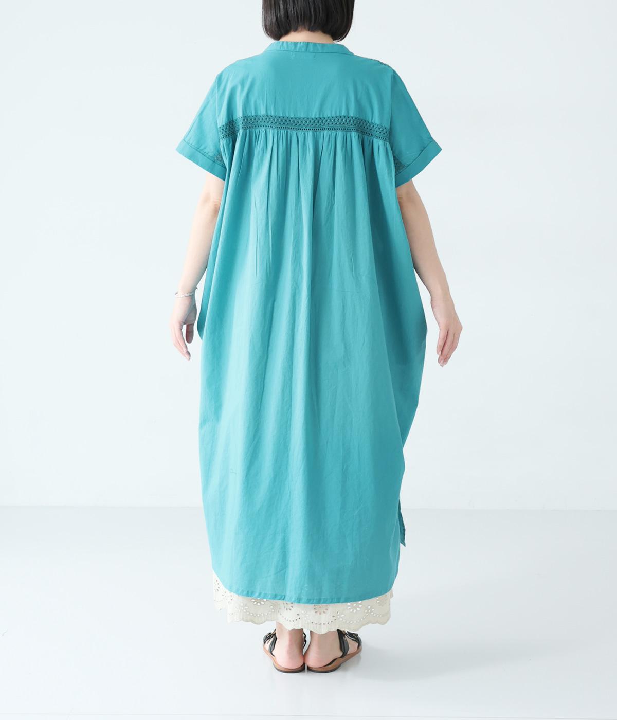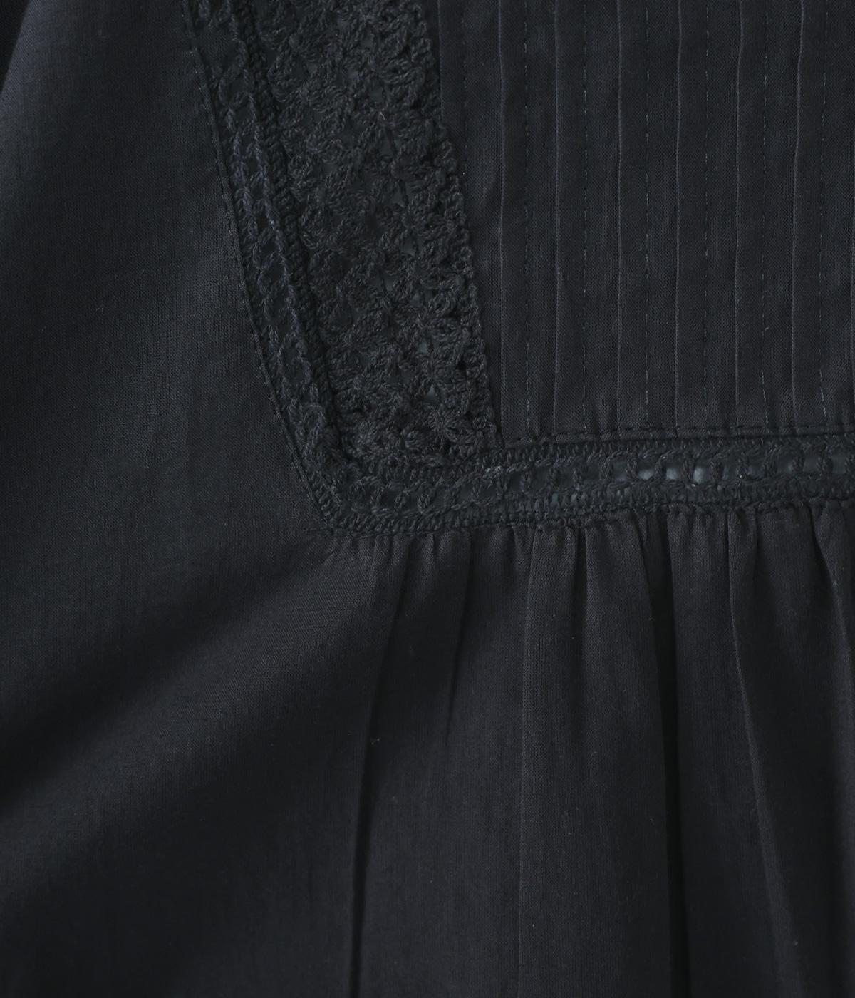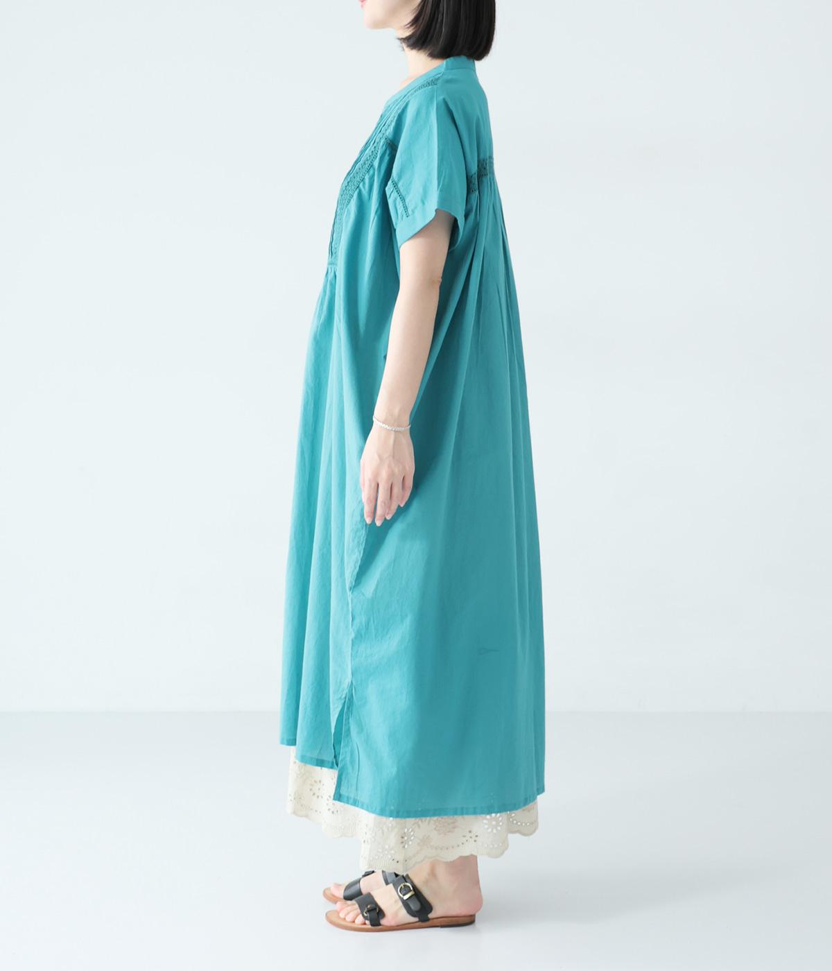 ピンタックとコットンレースをあしらった、フェミニンなムードをまとうワンピースです。デニムと合わせてカジュアルダウンしたスタイリングにもすっとなじみ、日々の装いに幅広く取り入れられる一枚です。