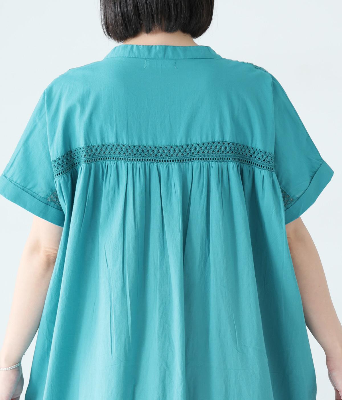 薄手で高密度に織られたコットンキャンブリック生地を使用しています。なめらかな肌ざわりと上品な光沢を備え、ほどよいハリのある質感です。さらりとした着心地で、夏でも快適に着られます。