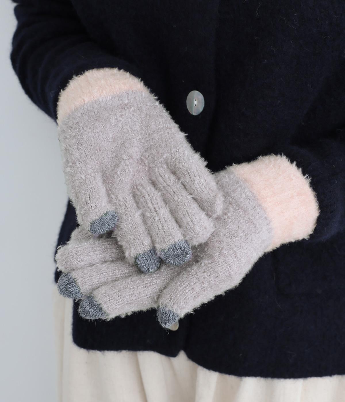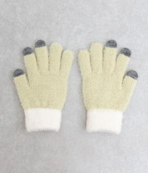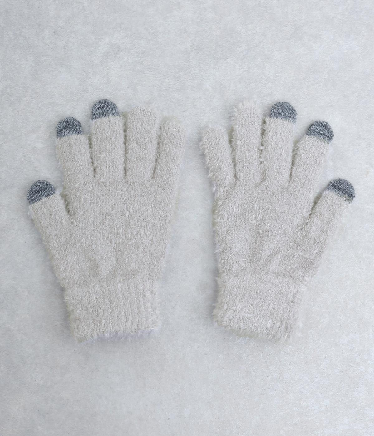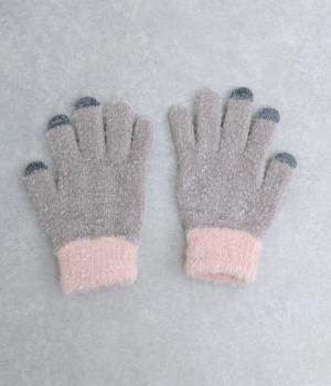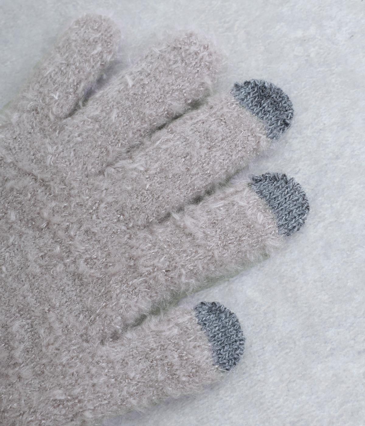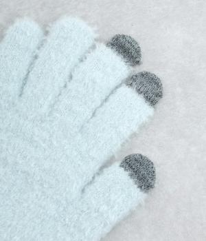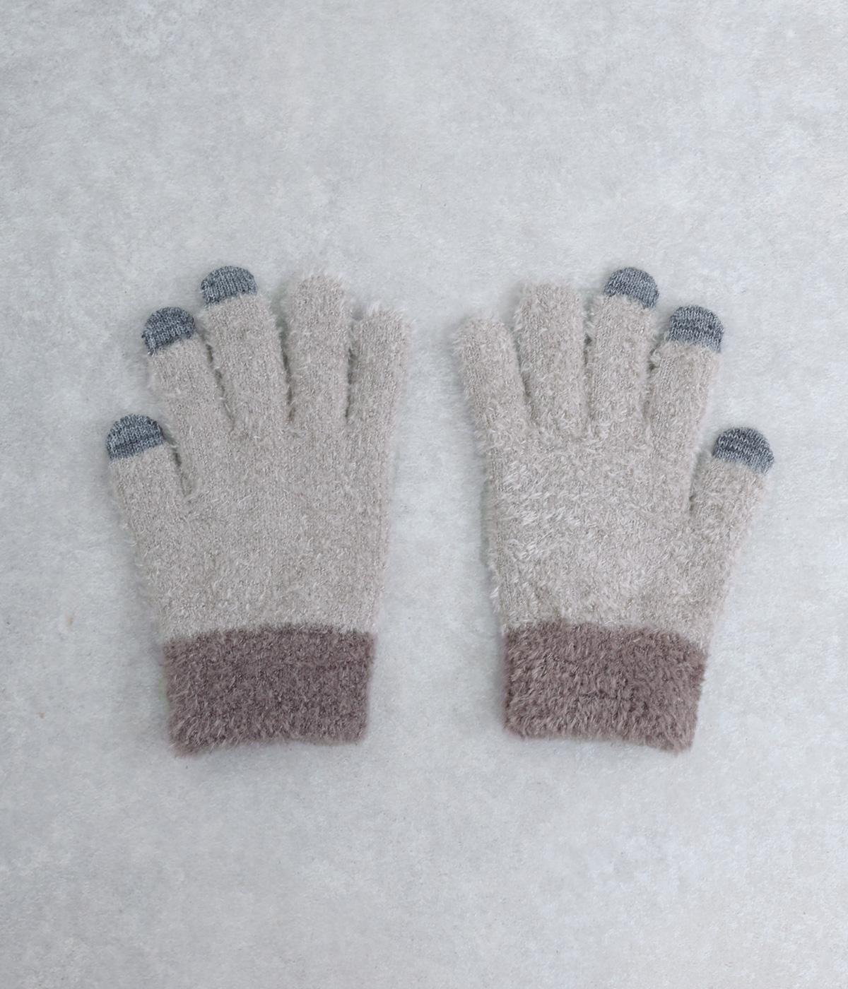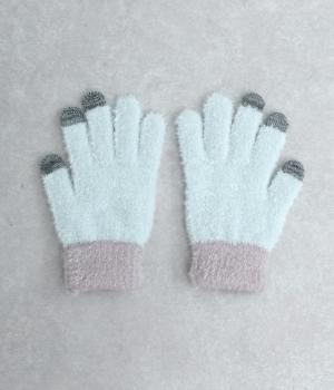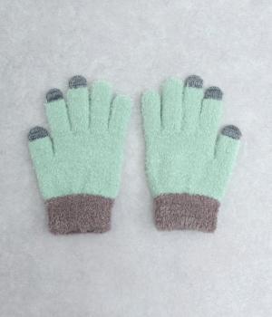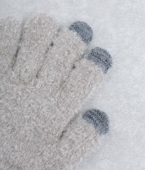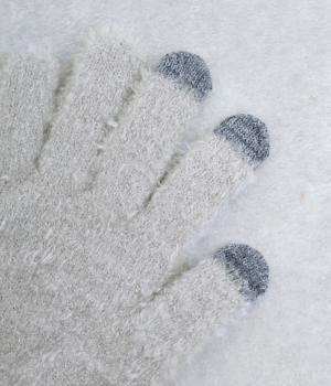 ふんわりと心地よい肌あたりの素材感です。伸縮性もあり使いやすさ抜群。色違いの指先はスマートフォンのタッチパネルに対応しています。