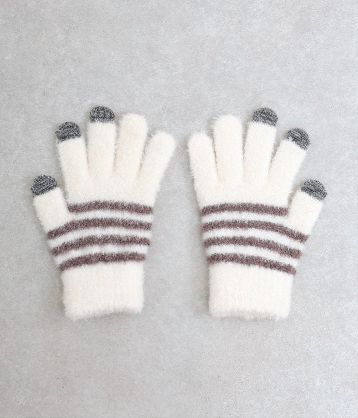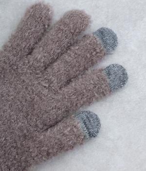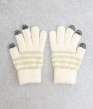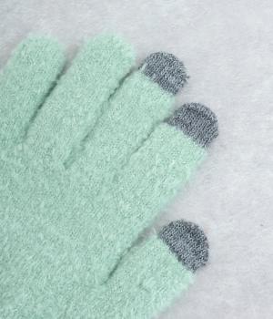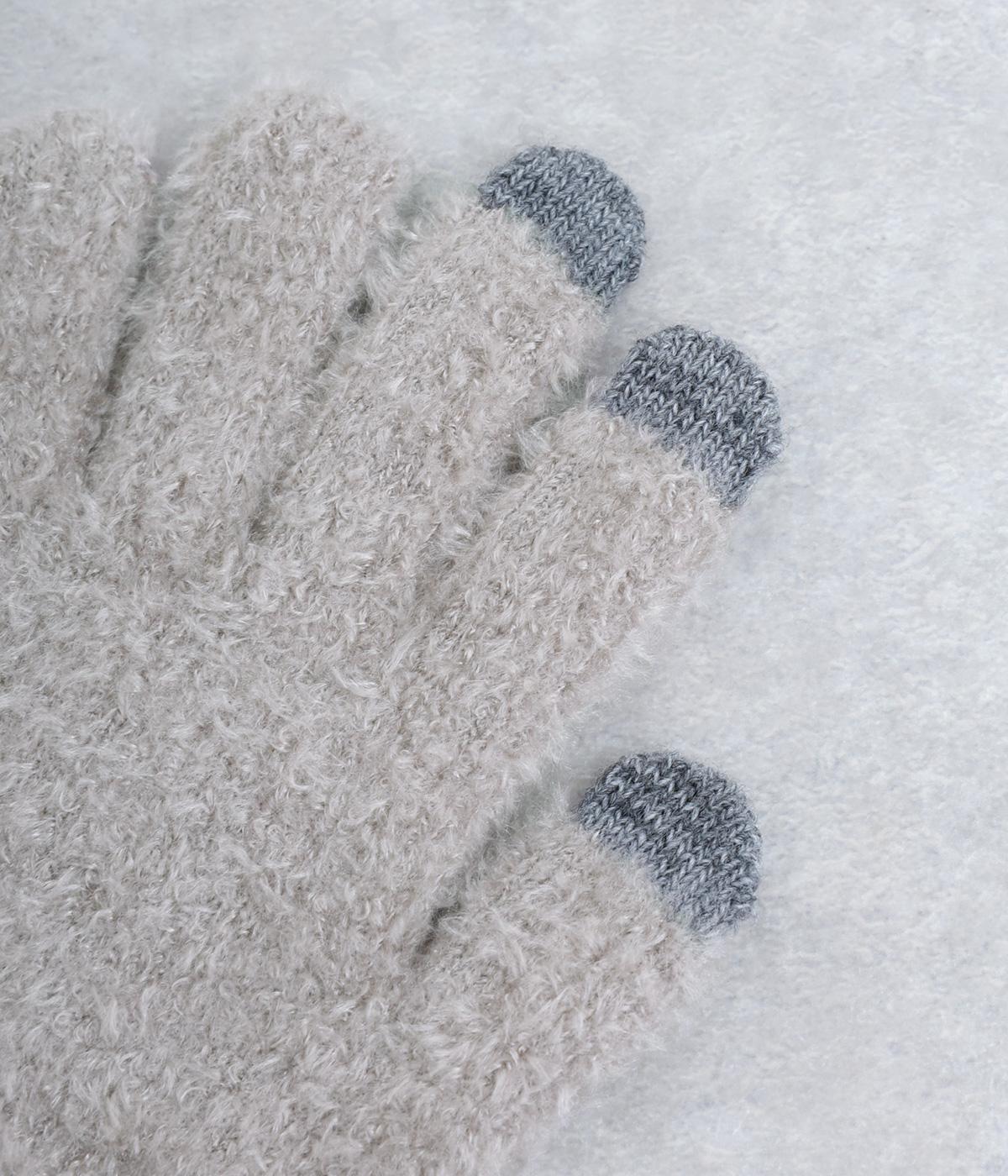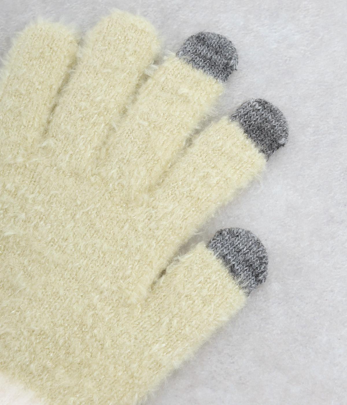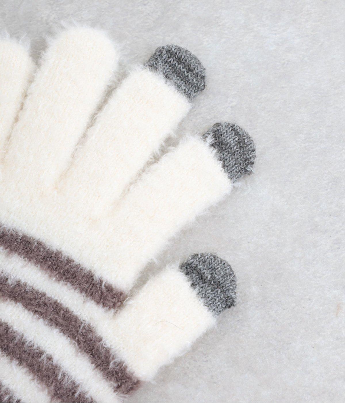 ふんわりと心地よい肌あたりの素材感です。伸縮性もあり使いやすさ抜群。色違いの指先はスマートフォンのタッチパネルに対応しています。