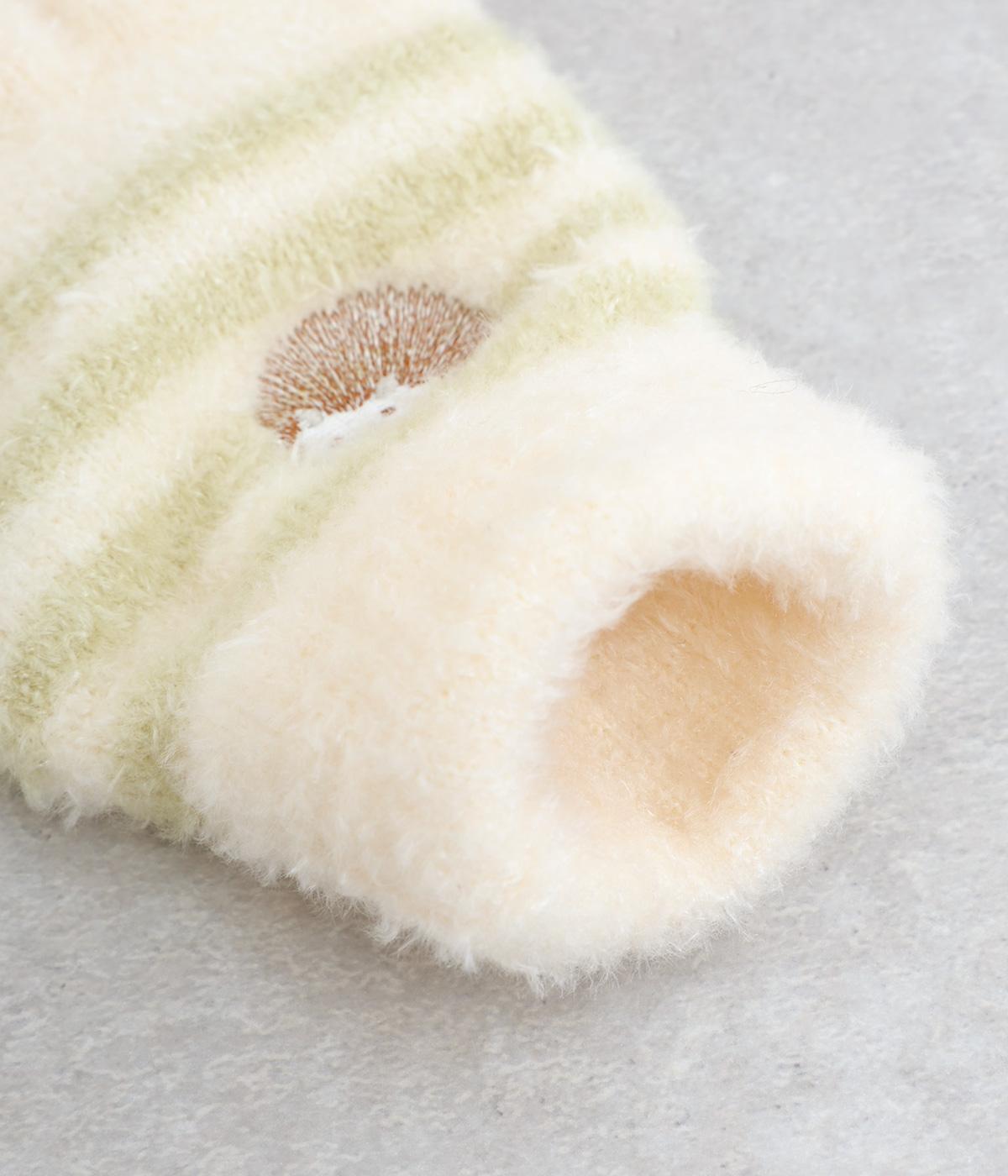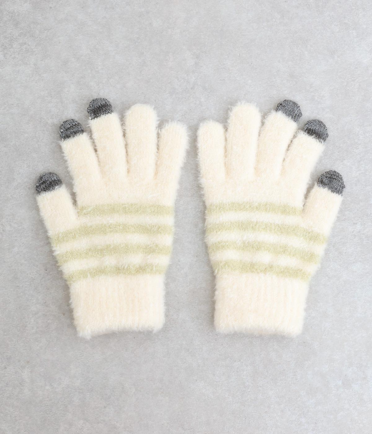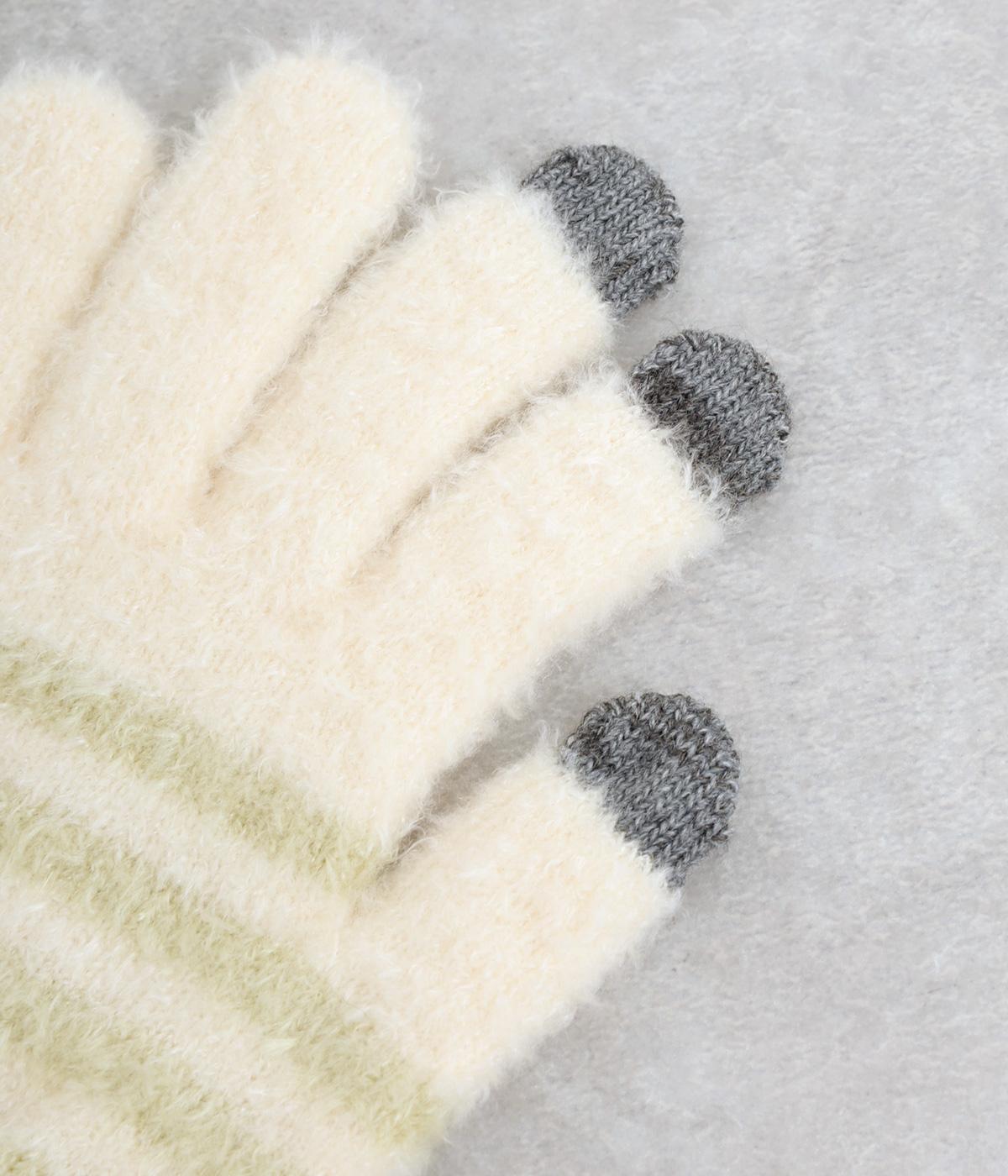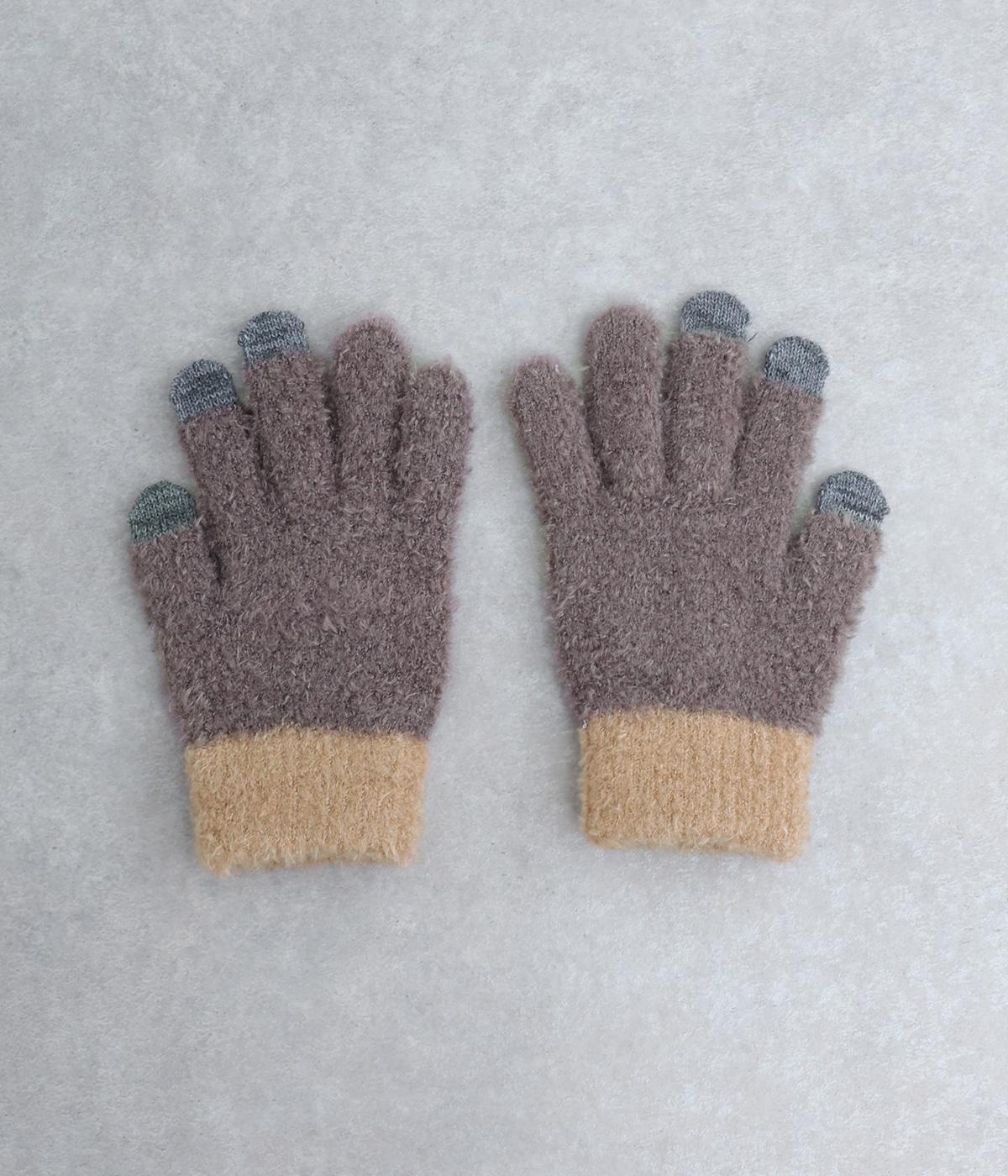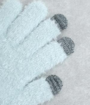 ふんわりと心地よい肌あたりの素材感です。伸縮性もあり使いやすさ抜群。色違いの指先はスマートフォンのタッチパネルに対応しています。