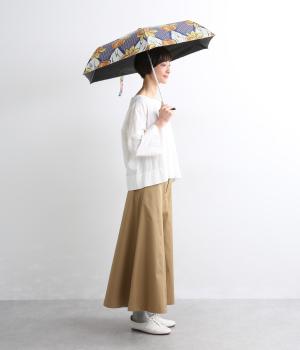 裏側にPUコーティングをほどこした、遮光率・UVカット率99.9%以上の晴雨兼用仕立てです。親骨50cmの大きさで耐風骨を用いているので風の強い日でも安心。