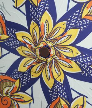 雨の日も晴れの日も気分をパッと華やかに高めてくれるアフリカンプリントの折りたたみ傘。大胆な色彩と柄が他にはない唯一無二な存在感を放ち、ギフトにも最適。同素材のカバーつきで、カバンの中でも一目で見つかります。