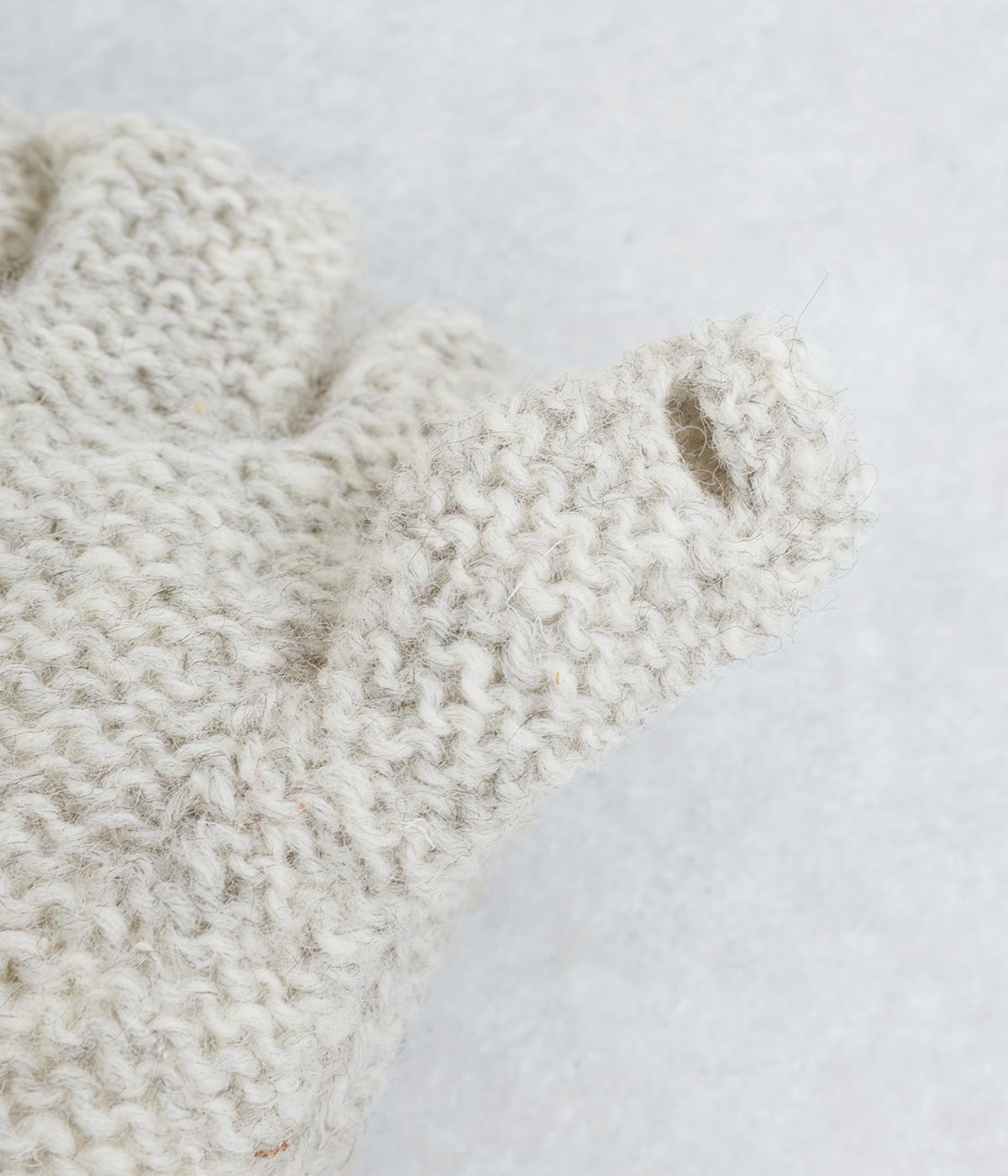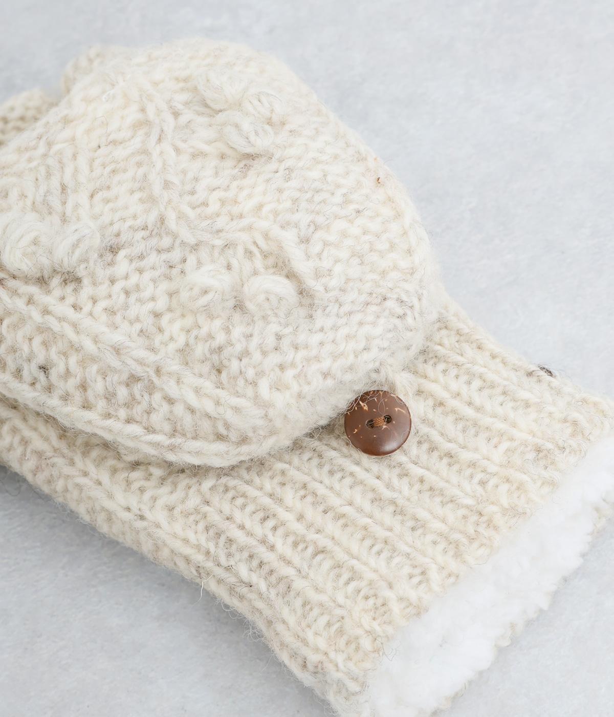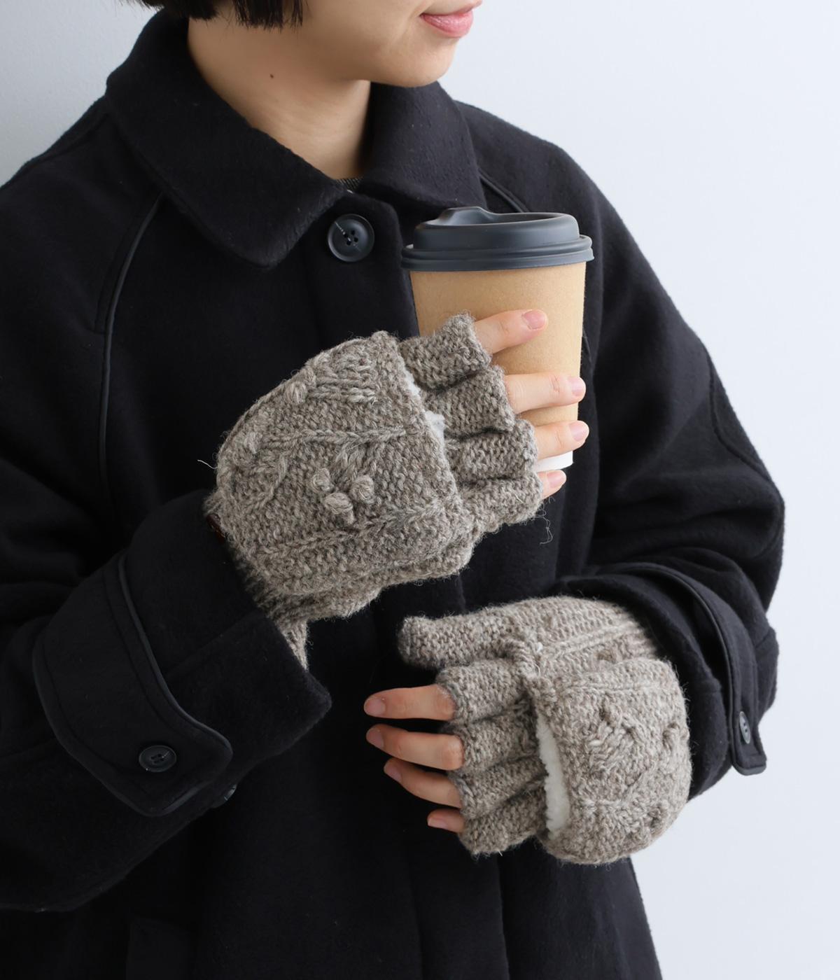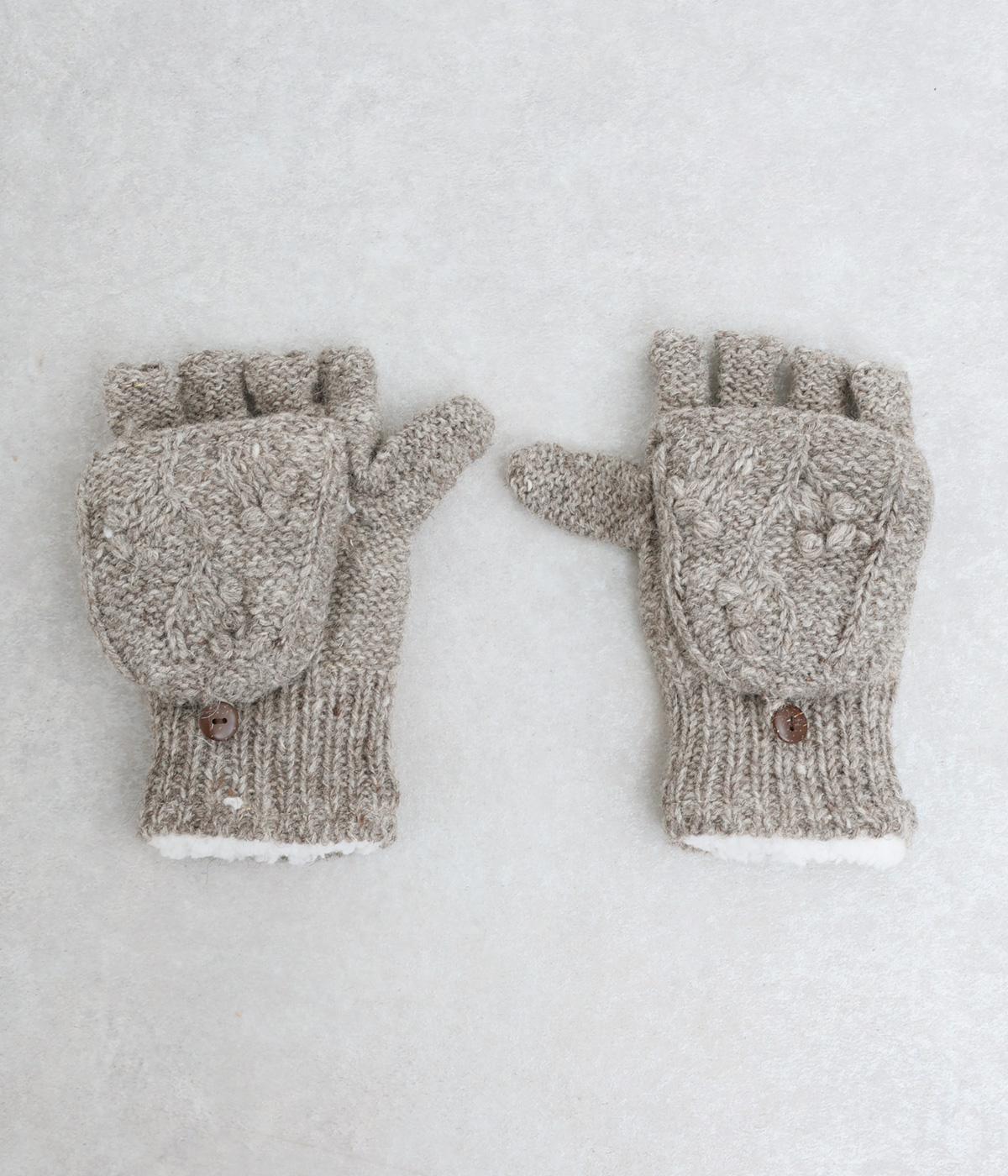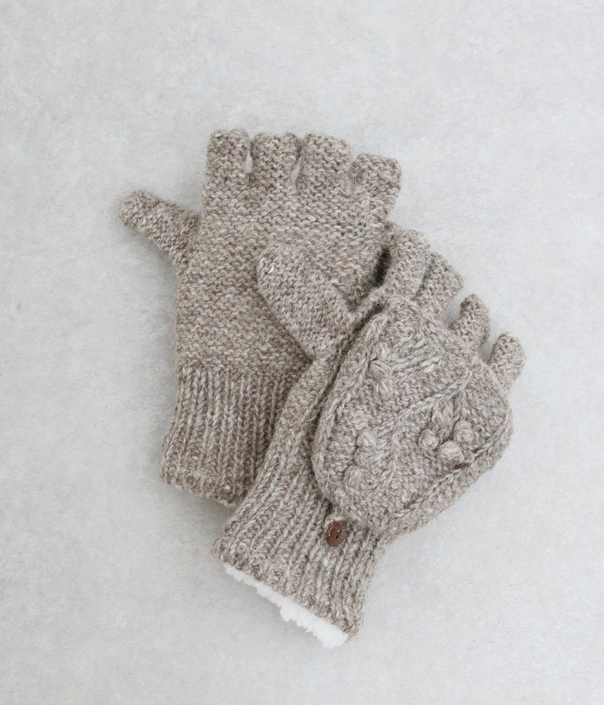 ネパールで一つ一つ丁寧に作られたやさしさ溢れるグローブです。人差し指から小指まではカバーの取り外しが可能。スマートフォン操作や小さな手作業がイージーです。親指部分には小さな穴が開いており、指先を出すこともできます。かわいらしく愛らしい手袋です。
