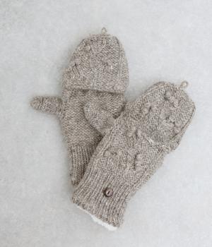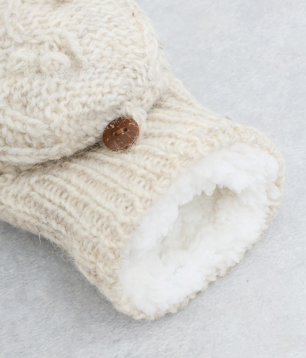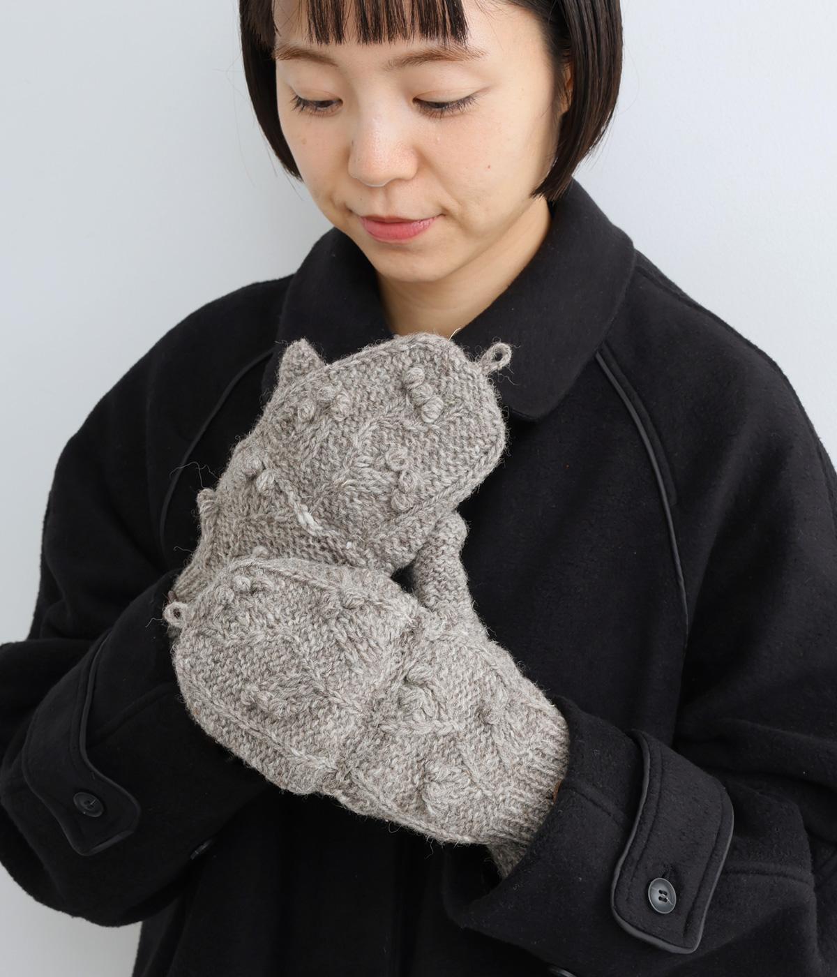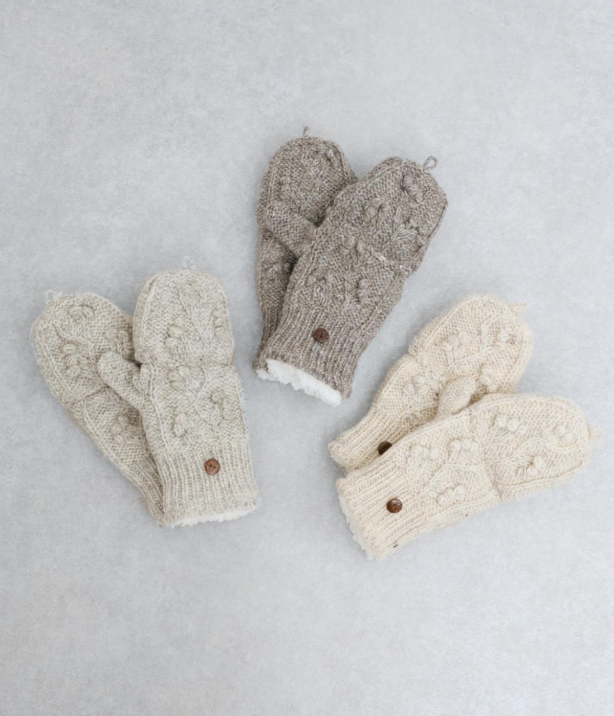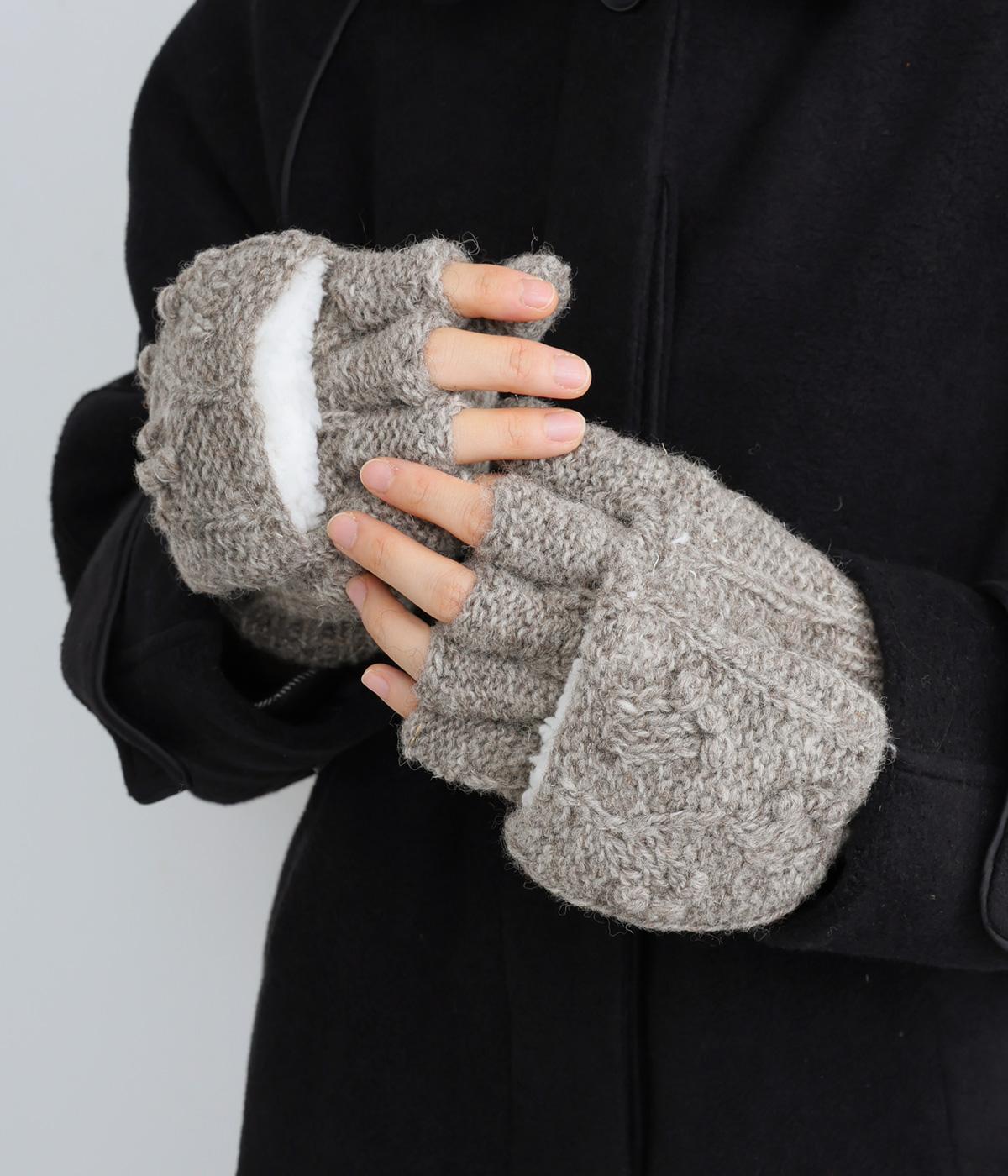 ネパールで一つ一つ丁寧に作られたやさしさ溢れるグローブです。人差し指から小指まではカバーの取り外しが可能。スマートフォン操作や小さな手作業がイージーです。親指部分には小さな穴が開いており、指先を出すこともできます。かわいらしく愛らしい手袋です。