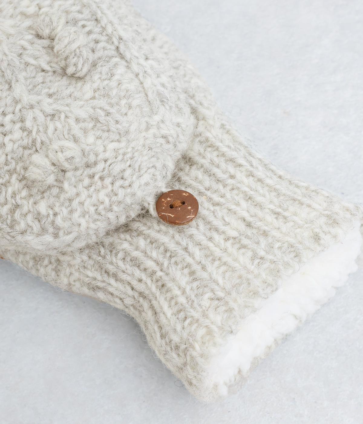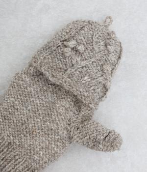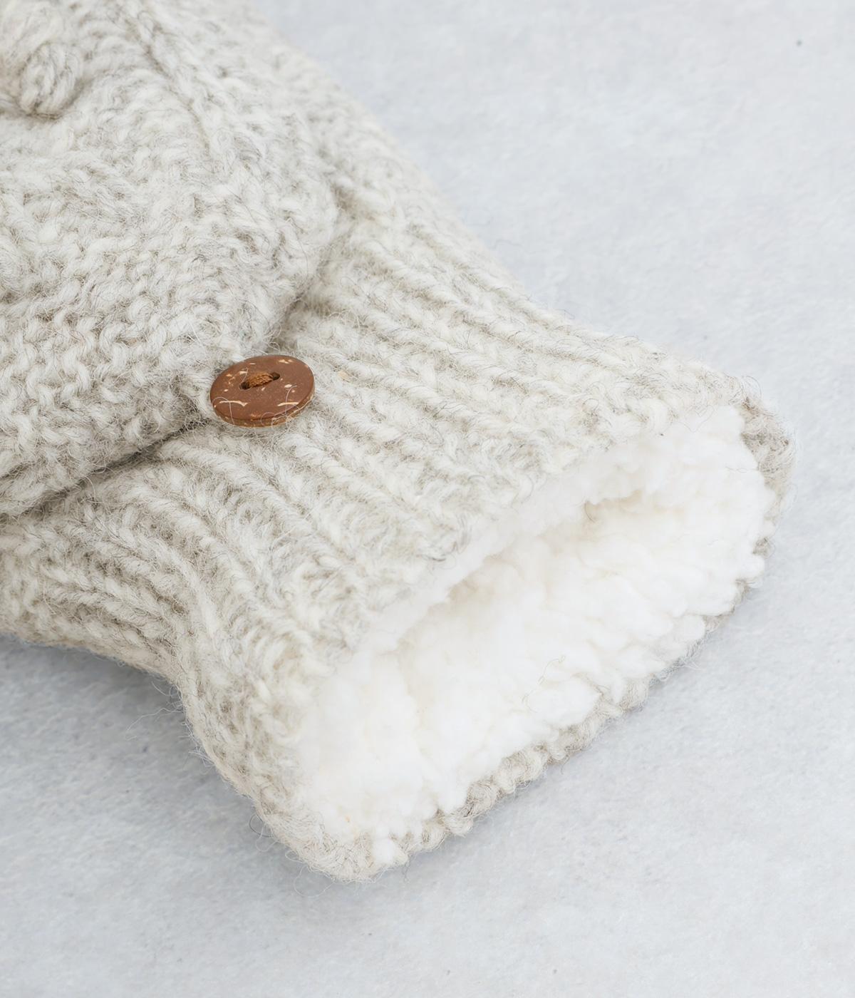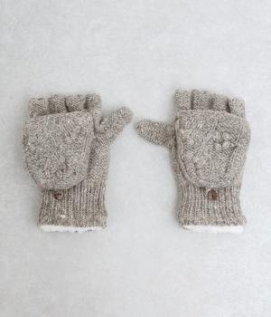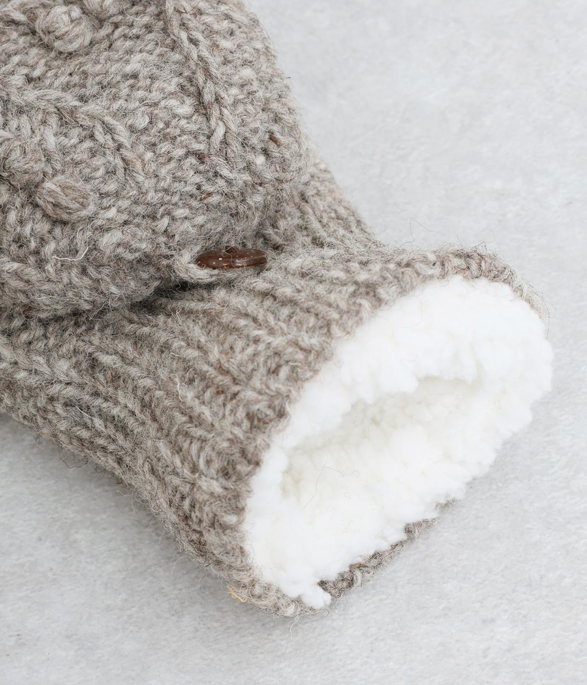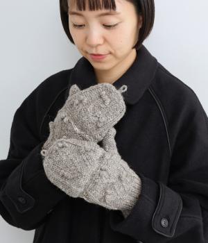 やさしい雰囲気のウール素材と、裏地のふんわりポリエステル素材が心地よい手袋です。手の込んだハンドメイドの独特なボリューム感が魅力的。