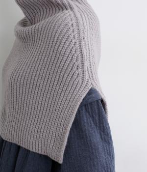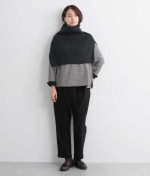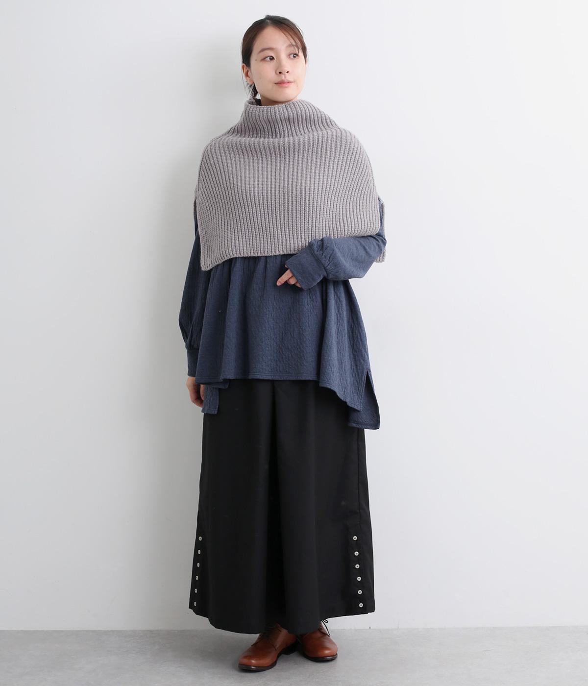 巻いたり結んだりすることなく、すっぽり着るだけで完結するスヌード。ゆとりのあるネックまわりや肩に入ったスリットで動きやすいです。ポンチョ風にまとってアクセントに、アウターの内側にしまうなど、アレンジも楽しめます。