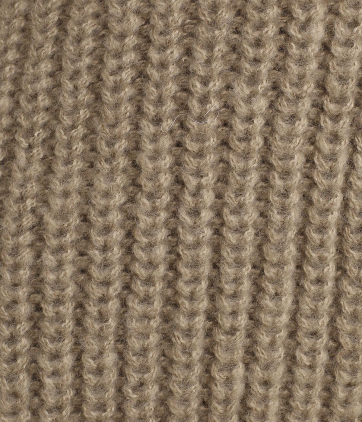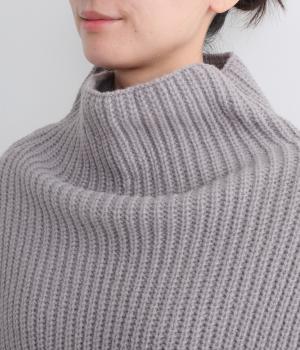 ほどよく肉厚で、ざっくりとした編み目がナチュラルなニットです。なめらかでチクチクしにくい肌ざわりなので、首もとと接しても快適。よく伸びるので窮屈さも感じにくいです。