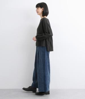 ゆったりとしたシルエットが気負いのないリラックスムードを生みます。表裏を変えた両サイドの切り替えがさり気ないアクセントに。どんなアイテムとも合わせやすく、こなれ感のあるスタイリングが完成。ウエストはオールゴム&内紐のイージー仕様。