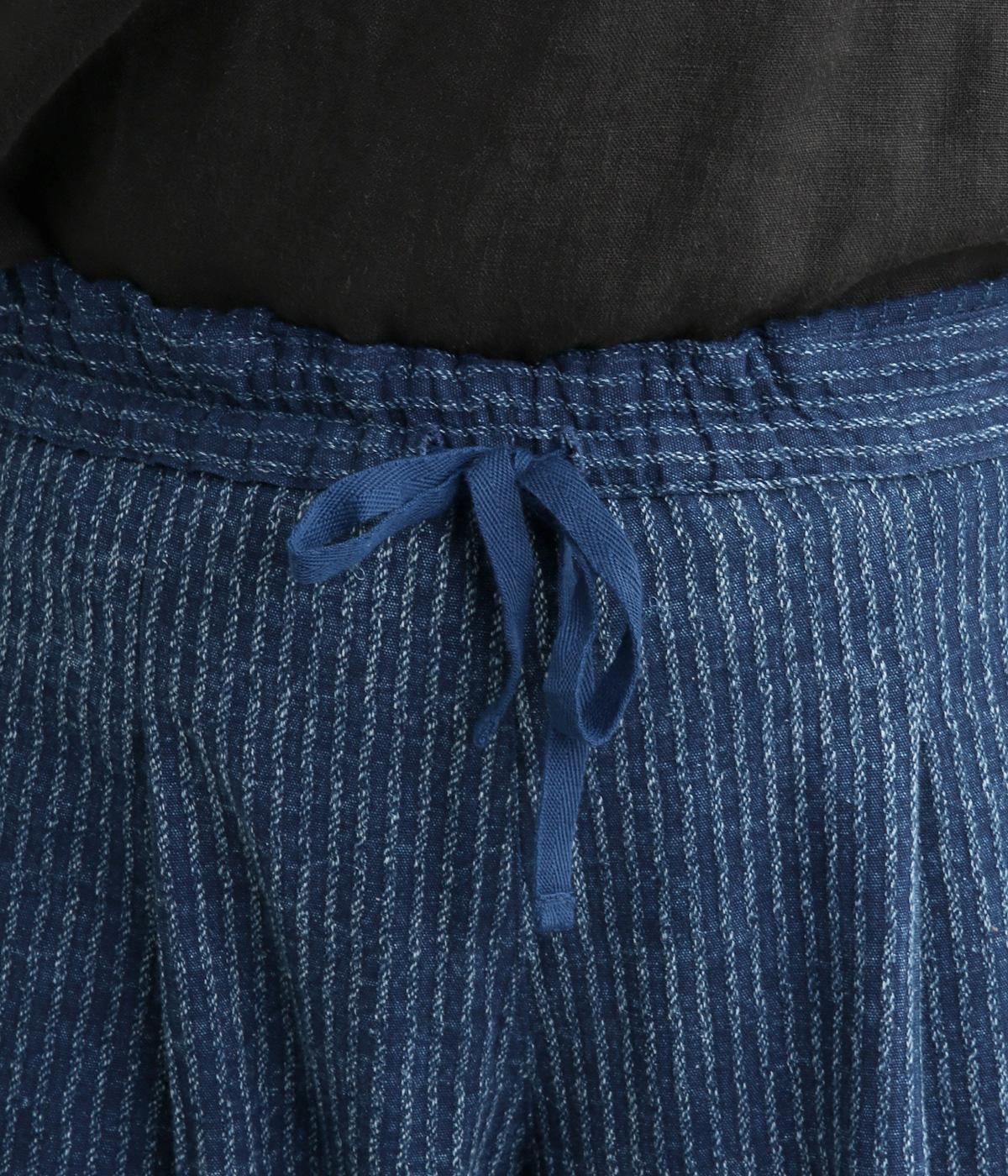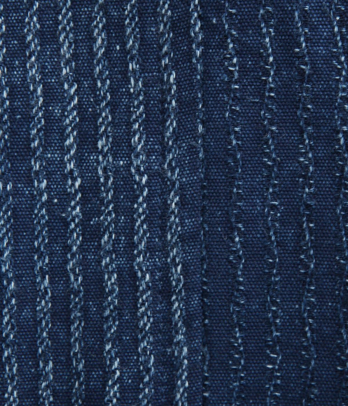 ドライタッチが心地よいコットン製のロープジャカード生地を使用。洗濯を繰り返すごとに味わいが深まるインディゴ生地で、経年変化もたのしみのひとつ。