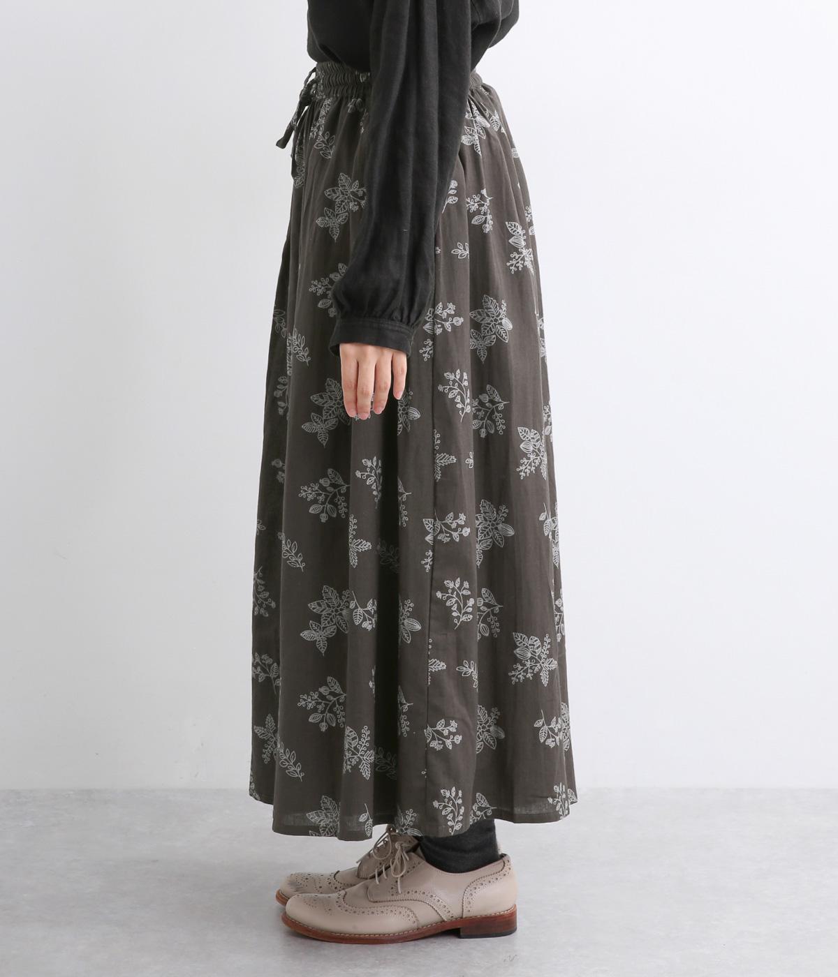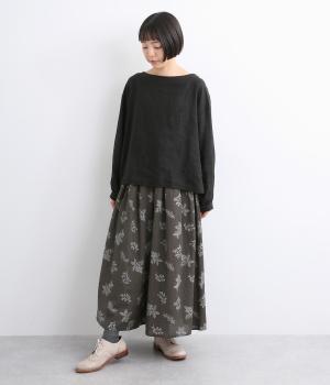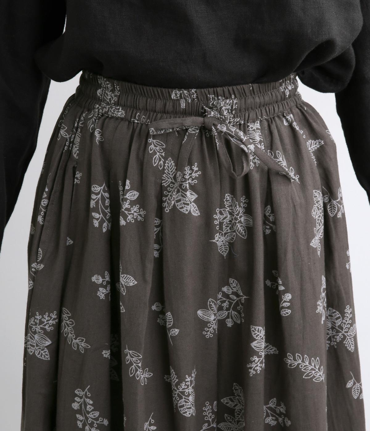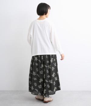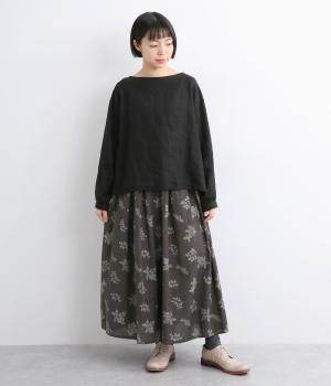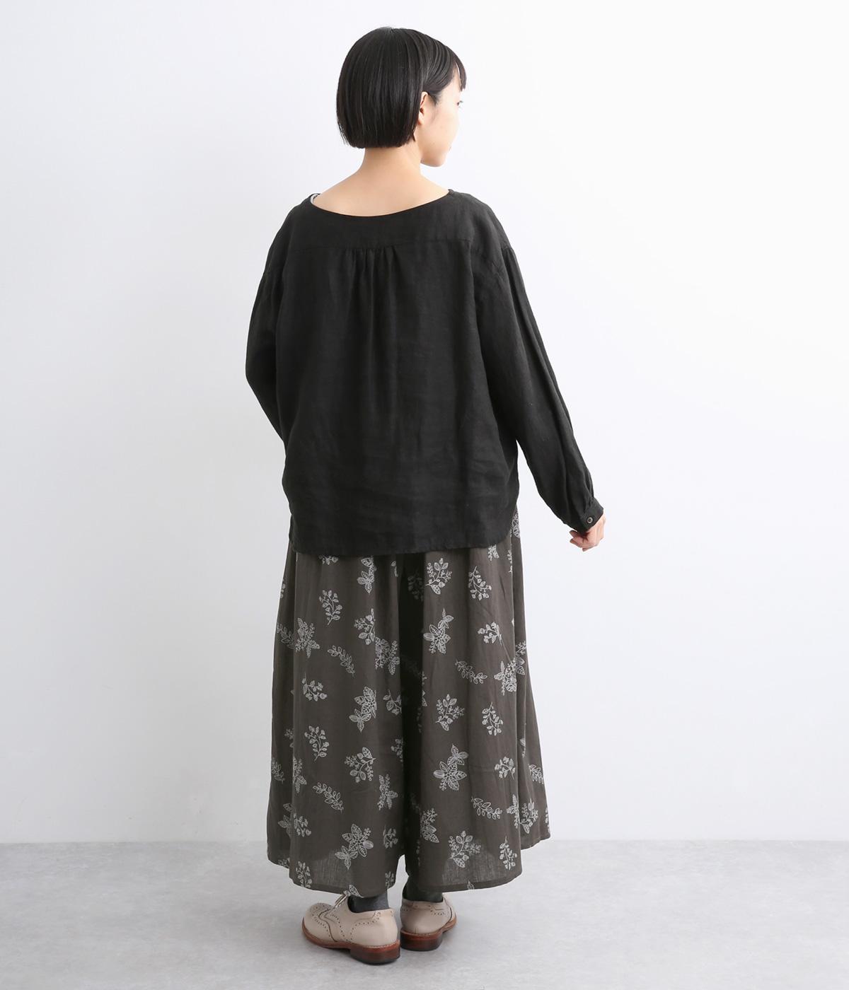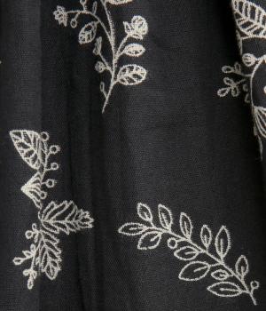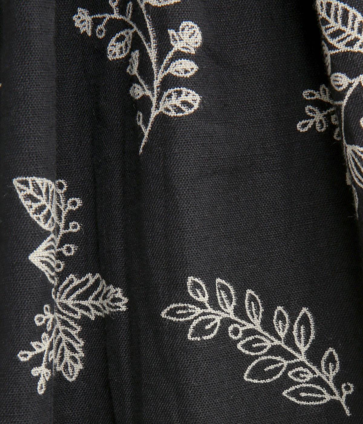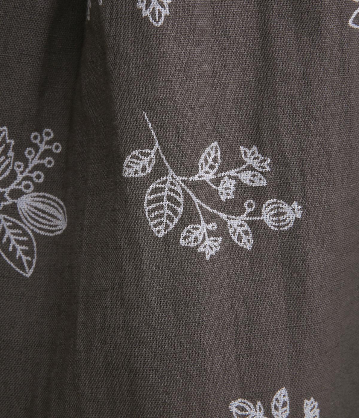 ドライタッチで風通しのいい麻混のコットンフラックス生地を使用。一見刺しゅうのように見えますが、細かなリーフプリントなのでお洗濯も安心。