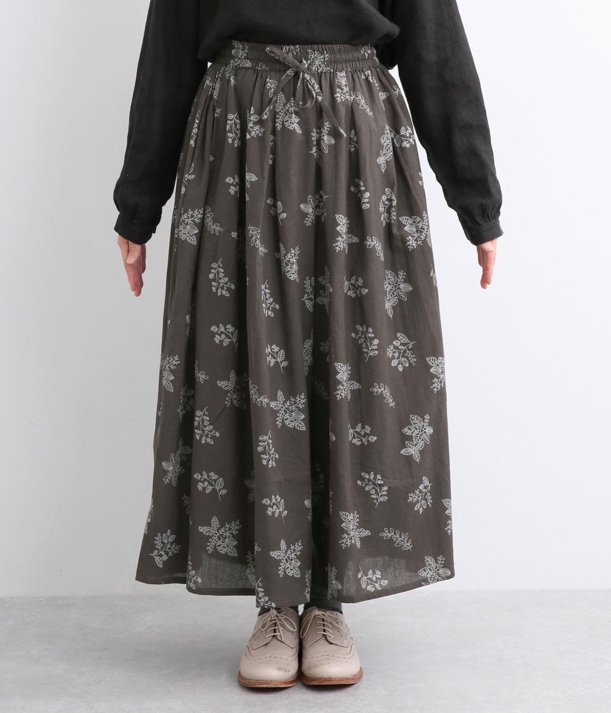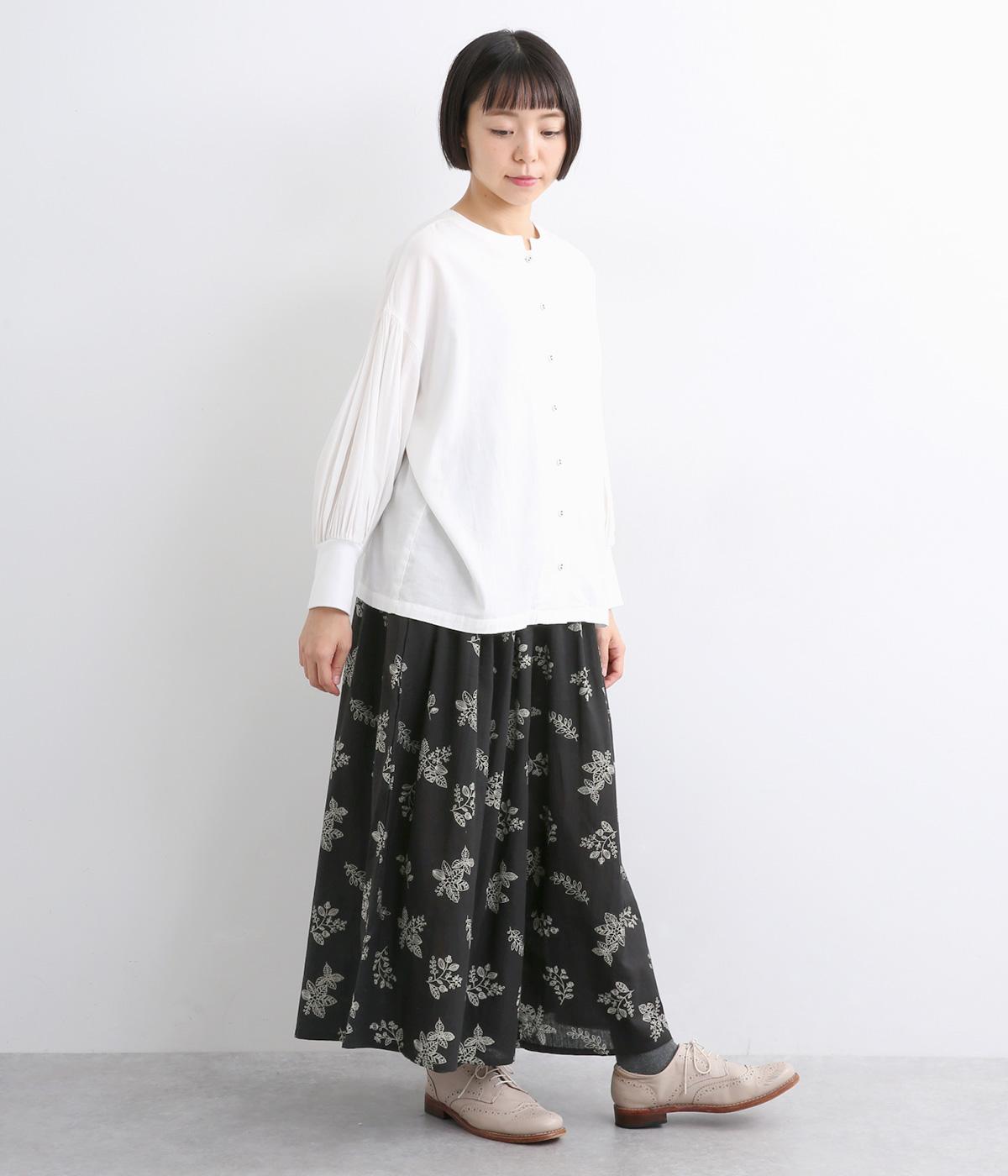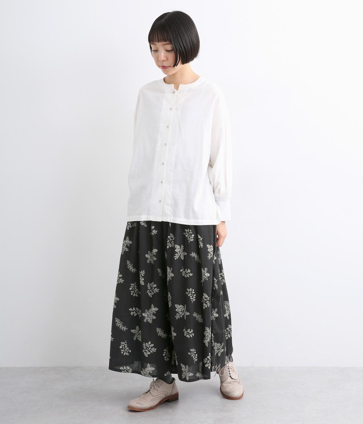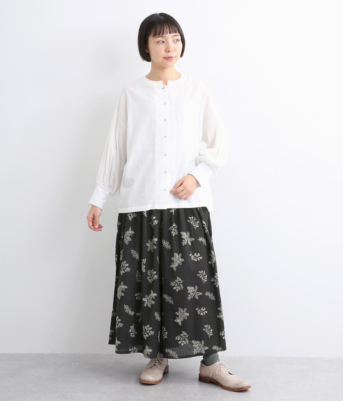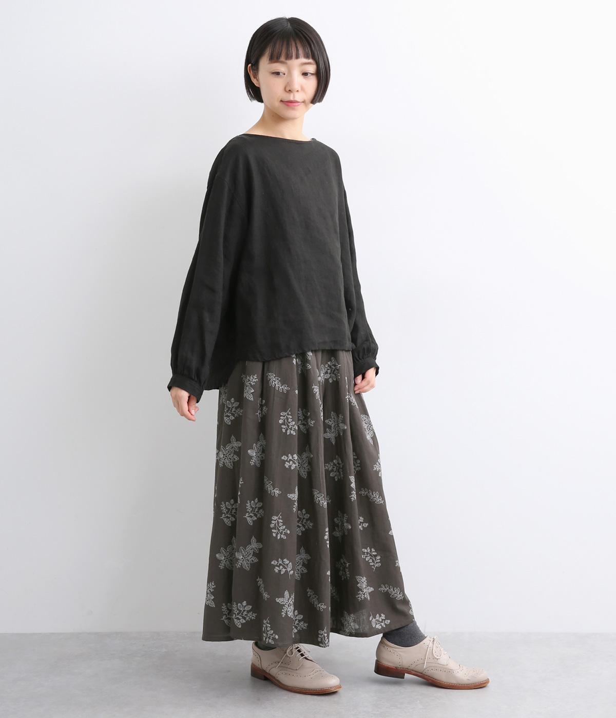 ドライタッチで風通しのいい麻混のコットンフラックス生地を使用。一見刺しゅうのように見えますが、細かなリーフプリントなのでお洗濯も安心。