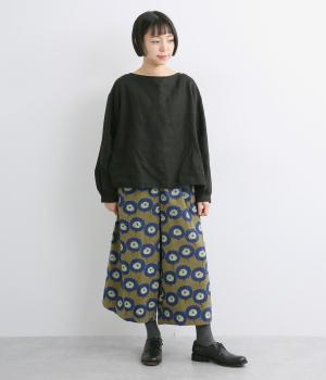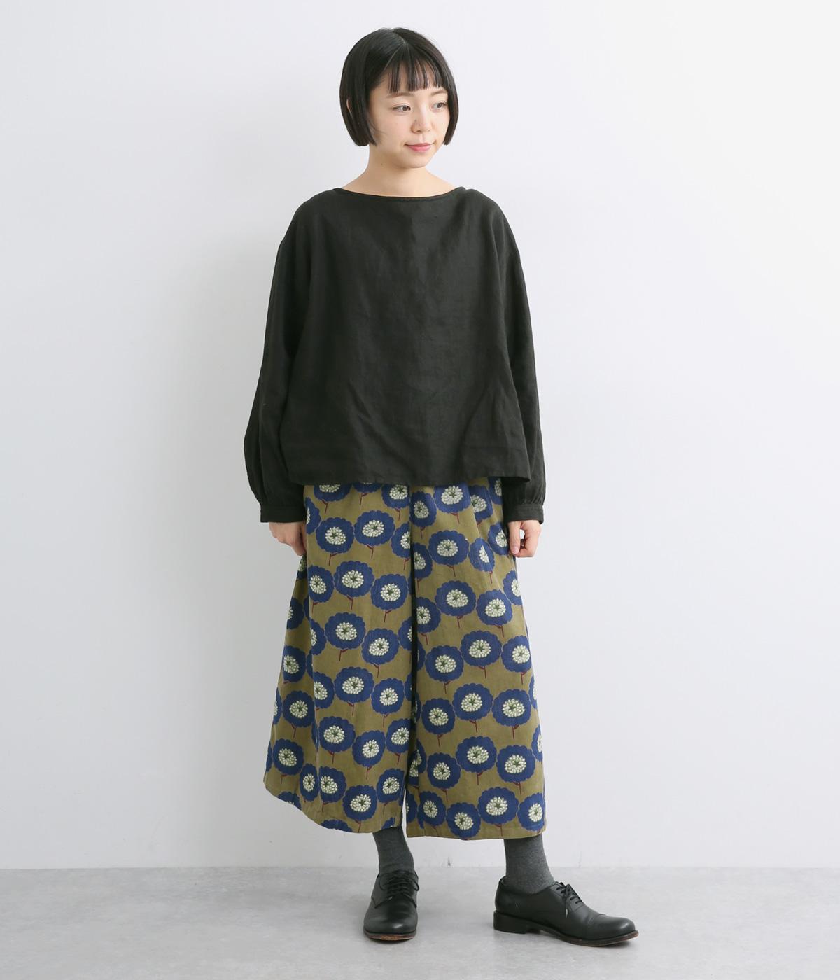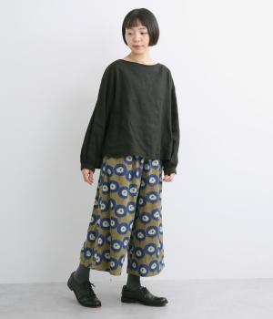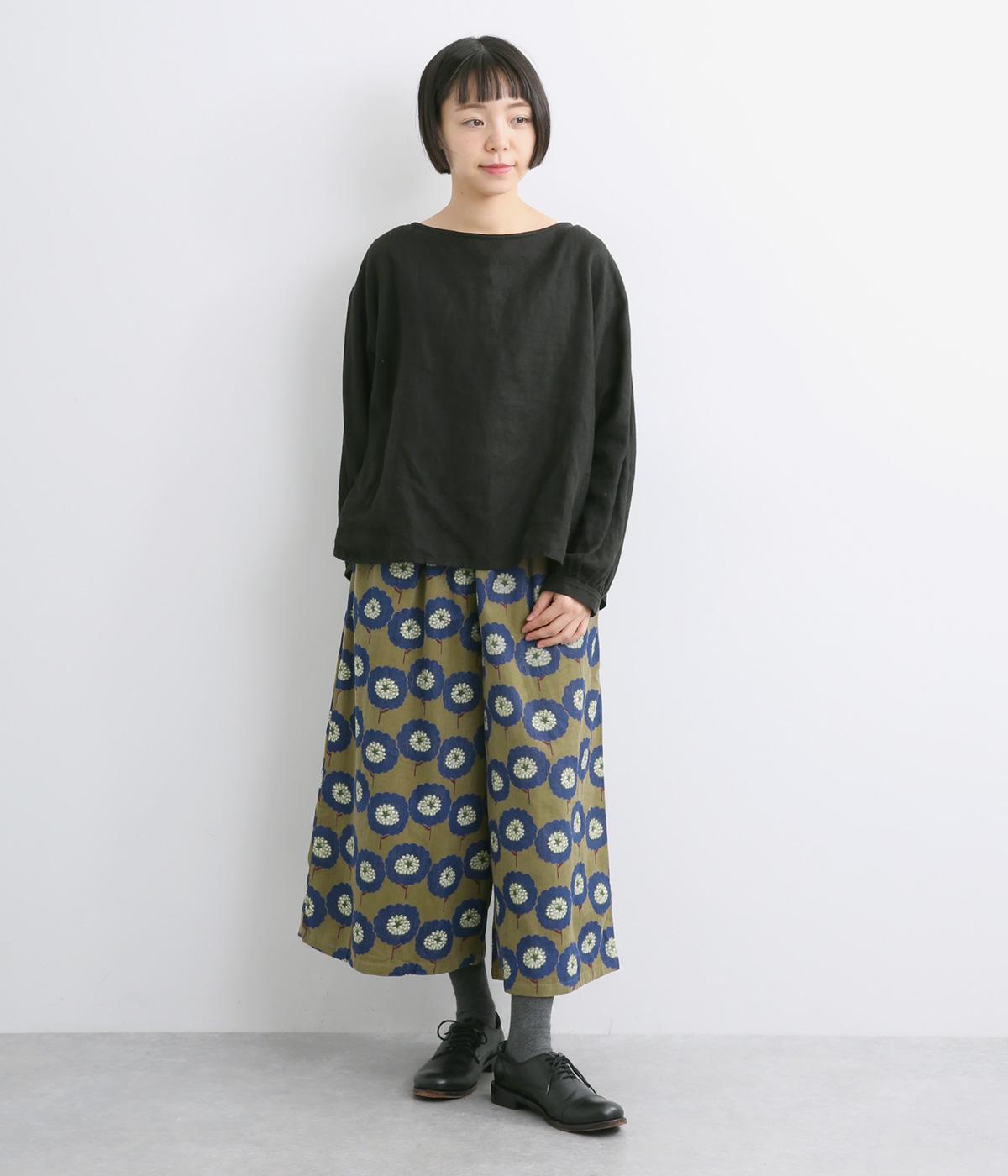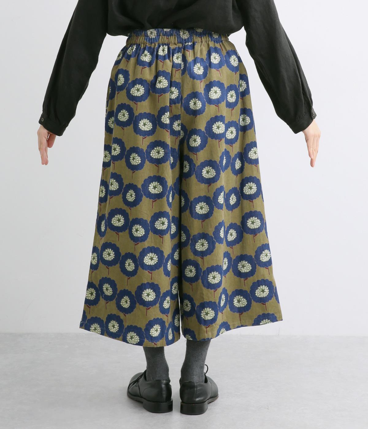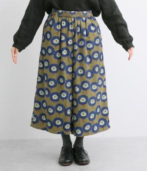 配色のきいたプリントが大人スタイルに可愛らしさを添えます。スカート見えするフレアシルエットではきやすく、シューズ合わせがたのしめる丈感が◎。チュニックワンピースなどの裾からお花をのぞかせるのもおすすめ。ウエストは総ゴム&内紐入りです。