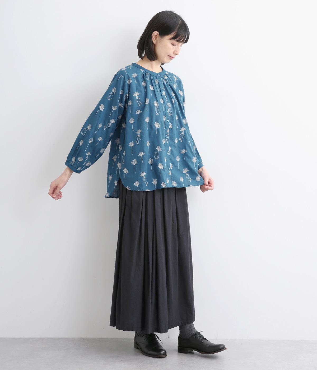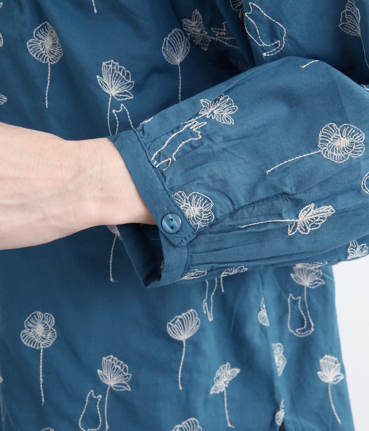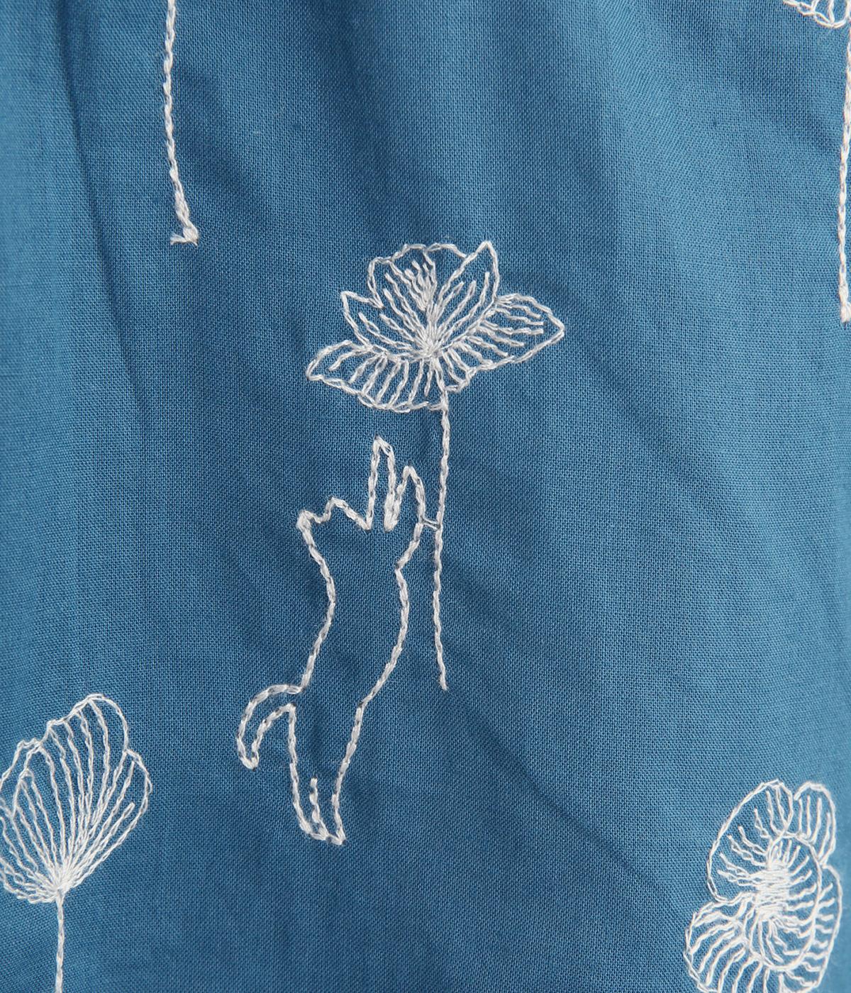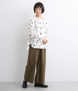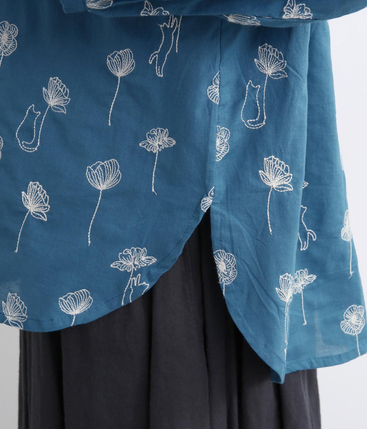 お花と猫の刺しゅうをほどこした大人かわいいブラウス。ゆとりのある着用しやすいシルエットでデイリー使いしやすく、後ろ着丈をやや長めにしています。ボトム合わせしやすくトップスインのきれいめな着こなしも◎。