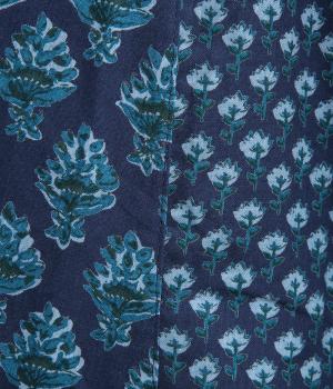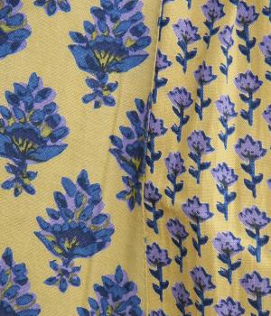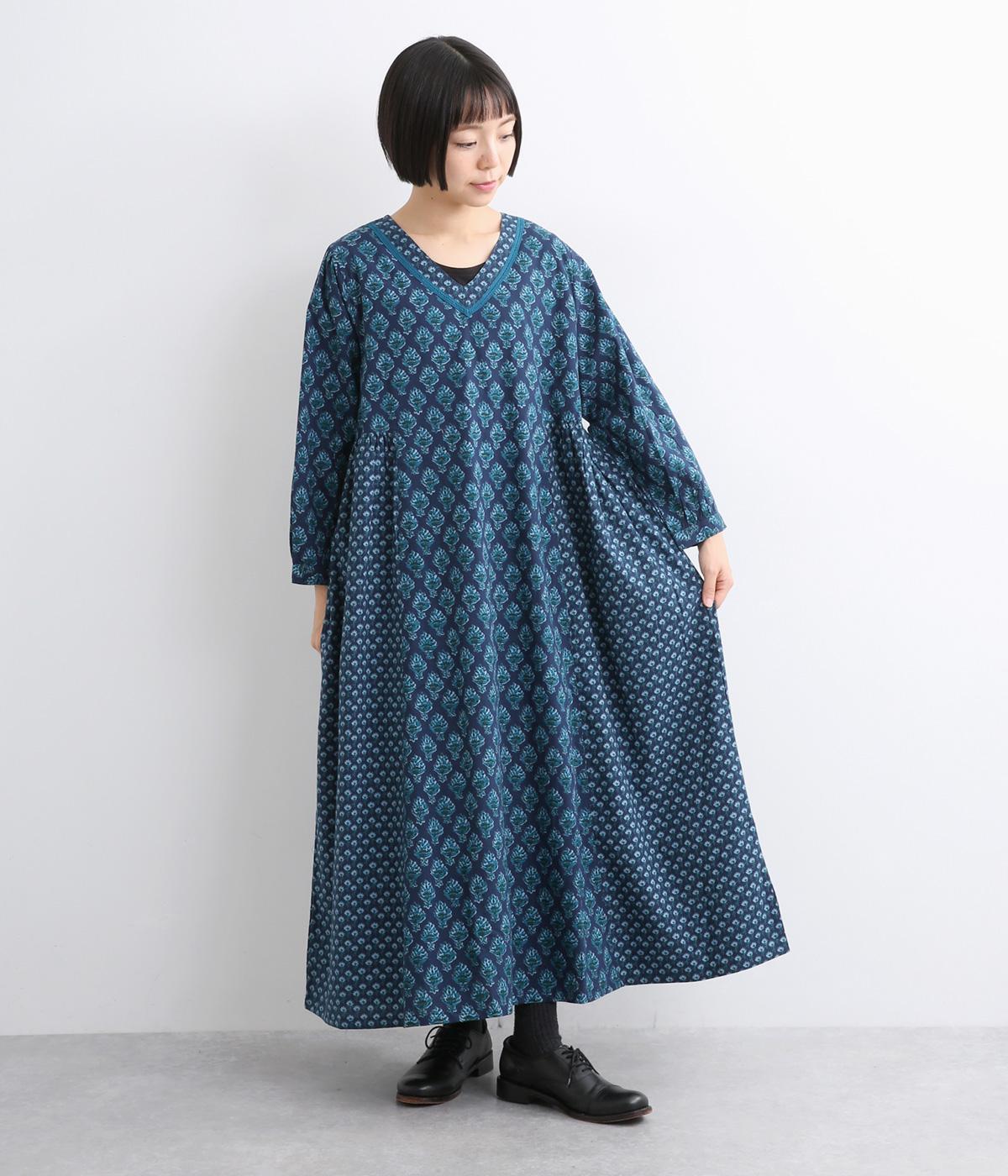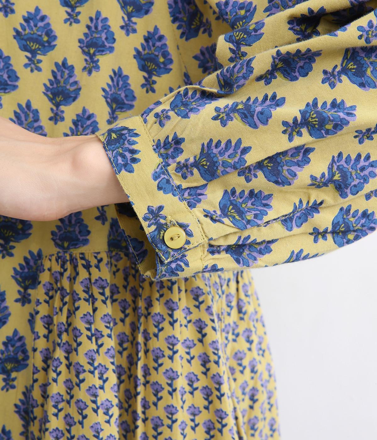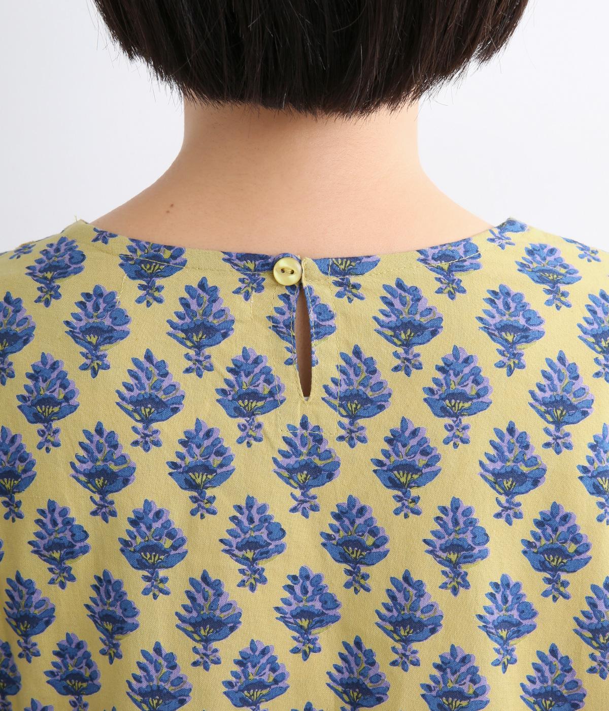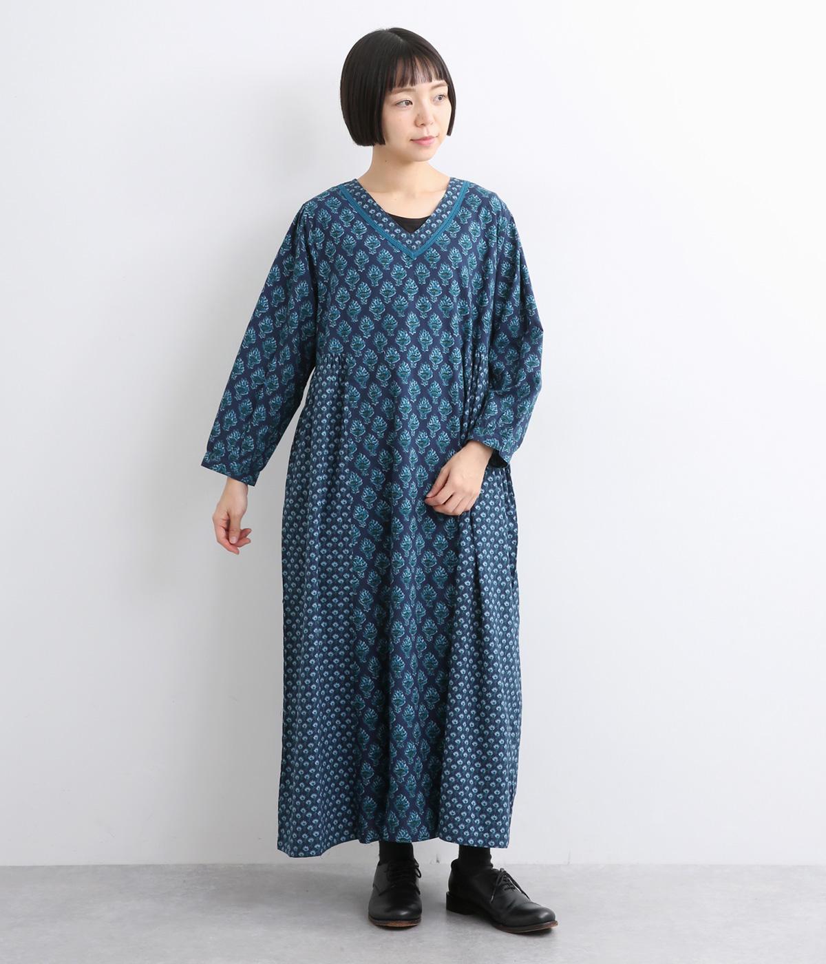 2種類のブロック風ブーケプリント生地とコットンレースを組み合わせた、上品でかわいらしい一着。ゆとりのあるシルエットで着心地が良く、シンプルながらも特別感があります。大人顔なロング丈にVネックの抜け感が好バランス。