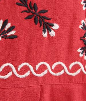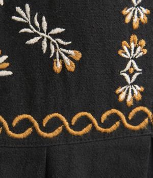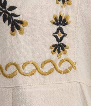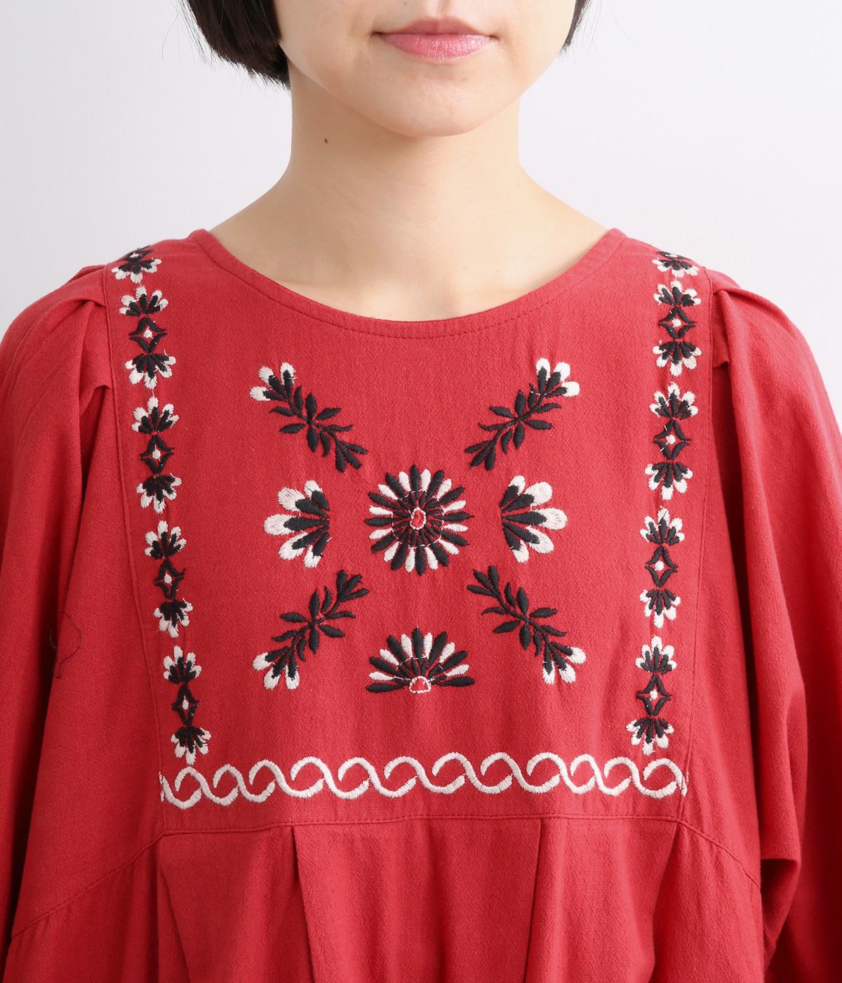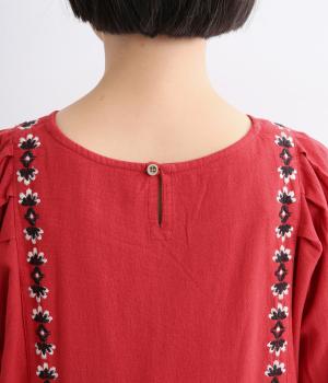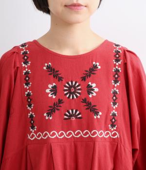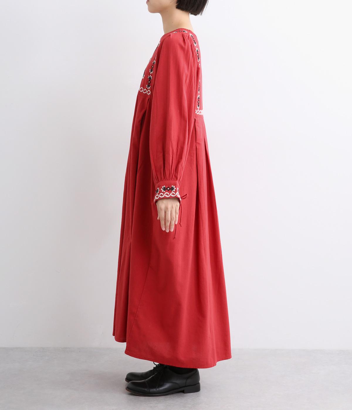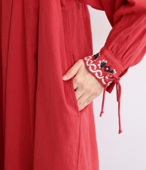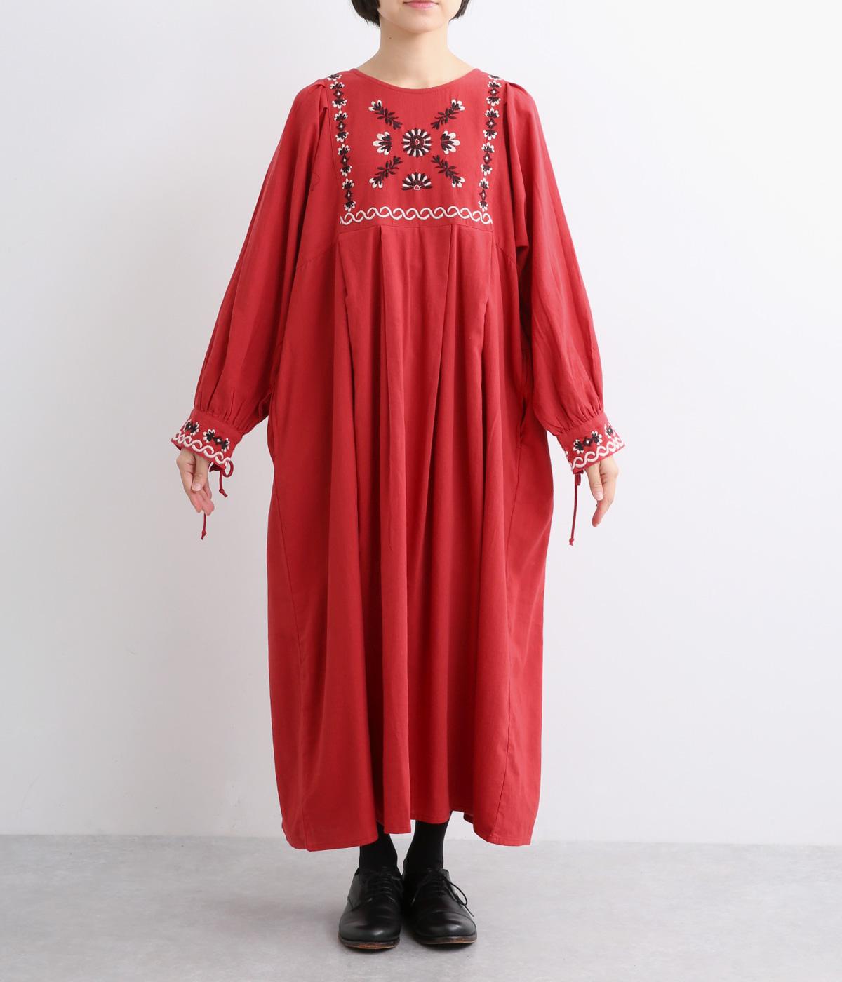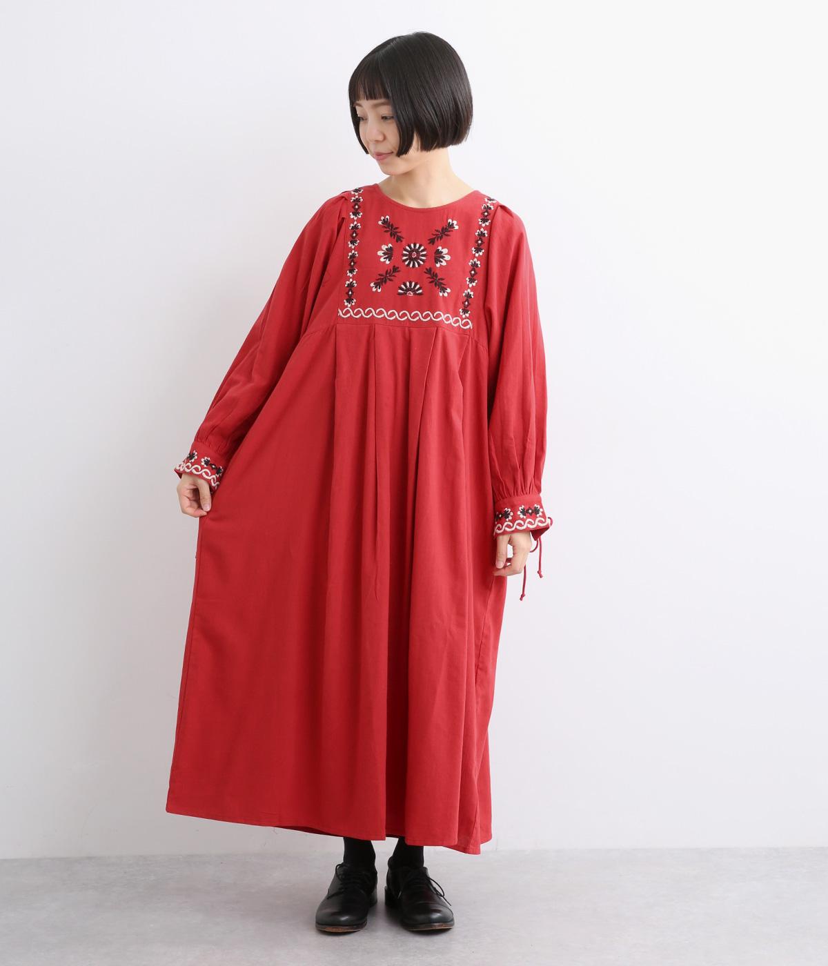 タックを入れたふんわりシルエットに東欧風の刺しゅうを添えた、ぬくもりを感じるワンピース。紐で結ぶ袖口のディテールも特別感があり、日常を盛り上げてくれます。ラフな一枚着でもスタイリングが完成する、頼れるアイテムです。