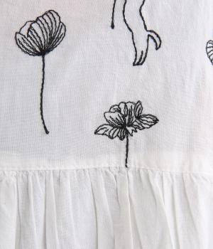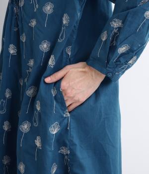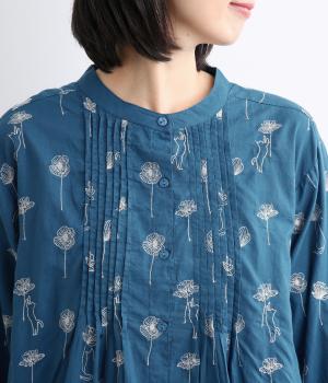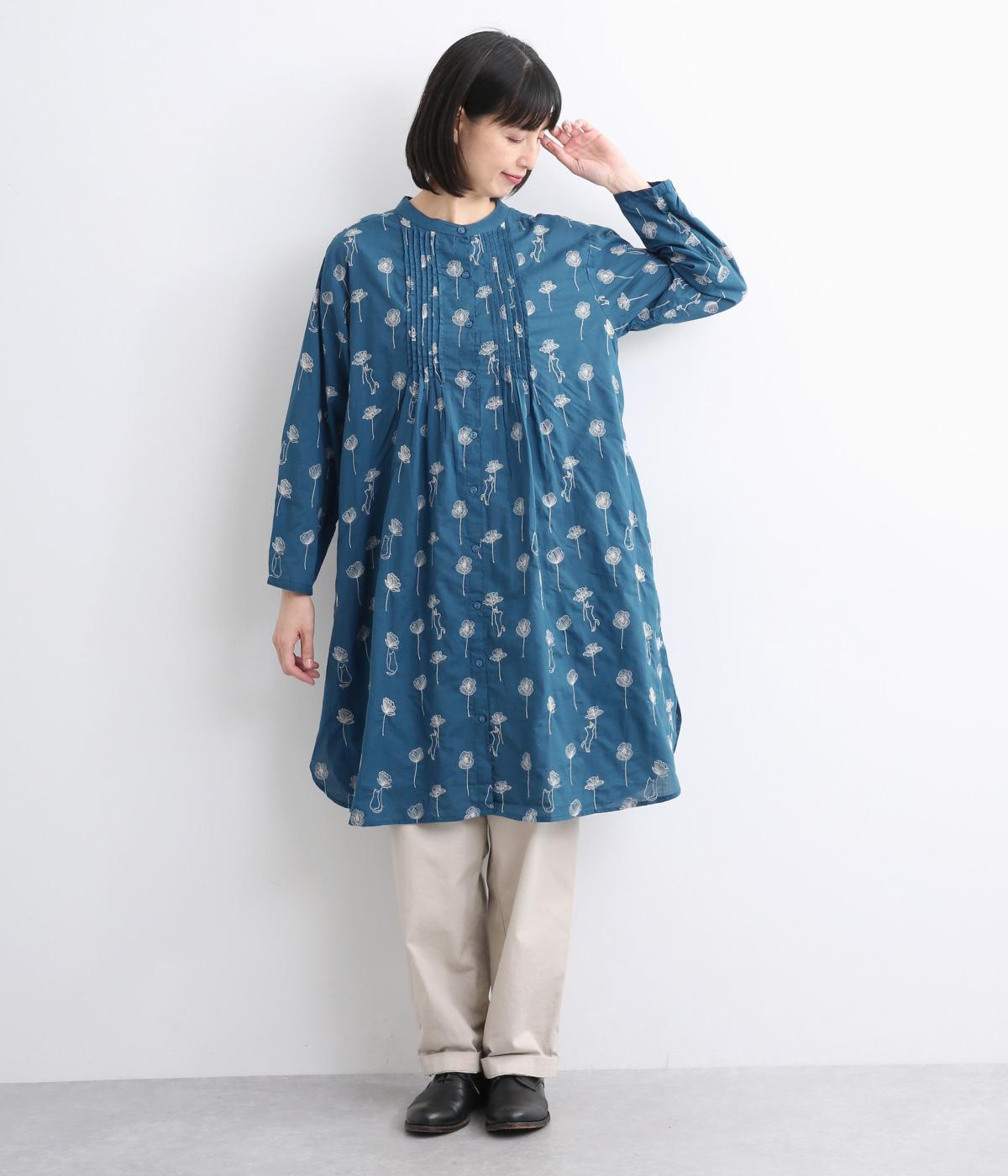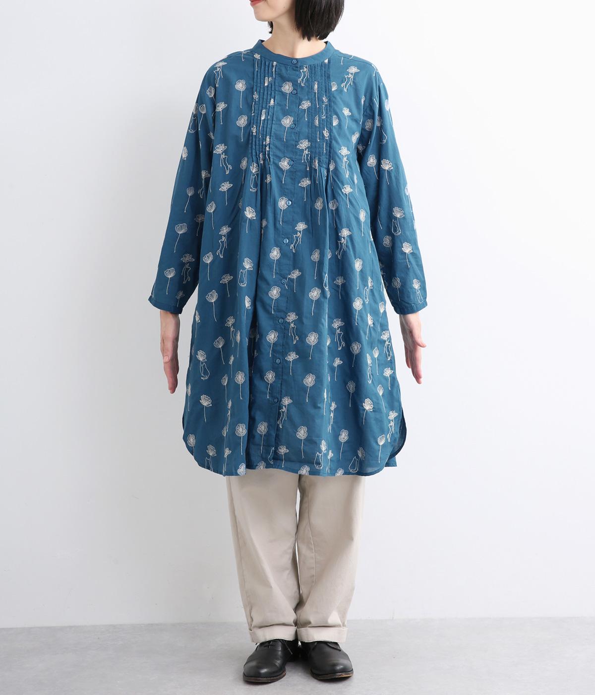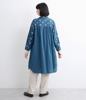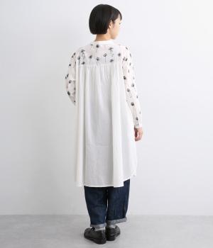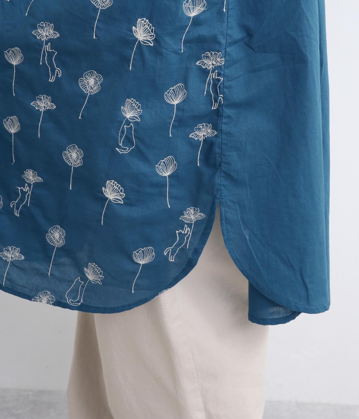 日常使いに最適な着こなしやすいチュニックに、お花と可愛らしい猫の刺しゅうをほどこしました。ボトムを選ばずレイヤードがたのしめる一枚で、うれしいサイドポケットつき。前あきで羽織り使いもおすすめ。
