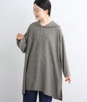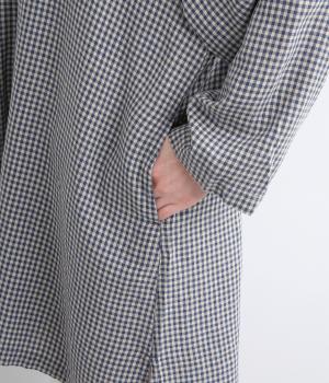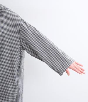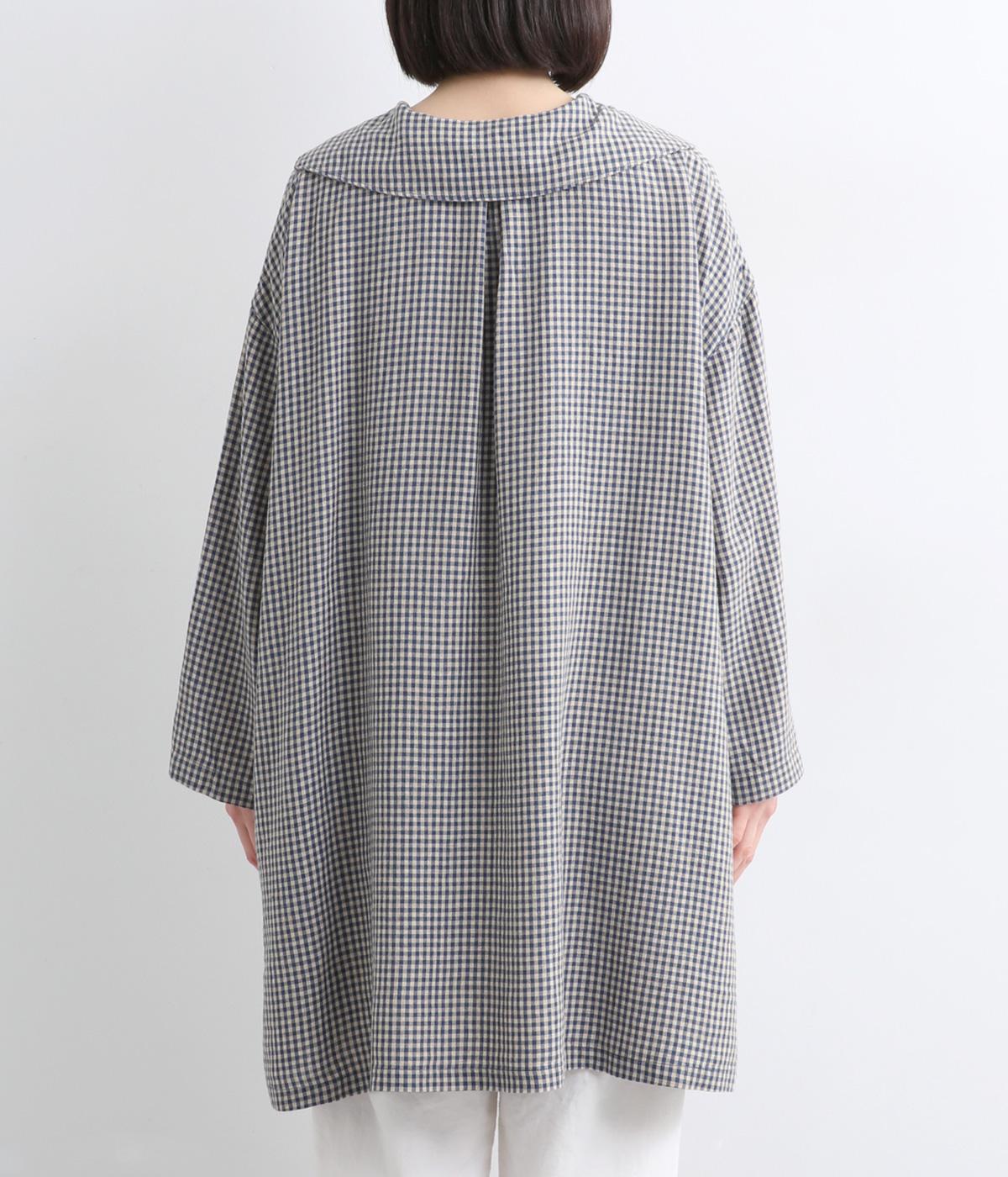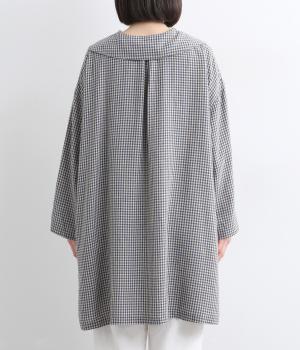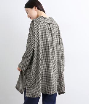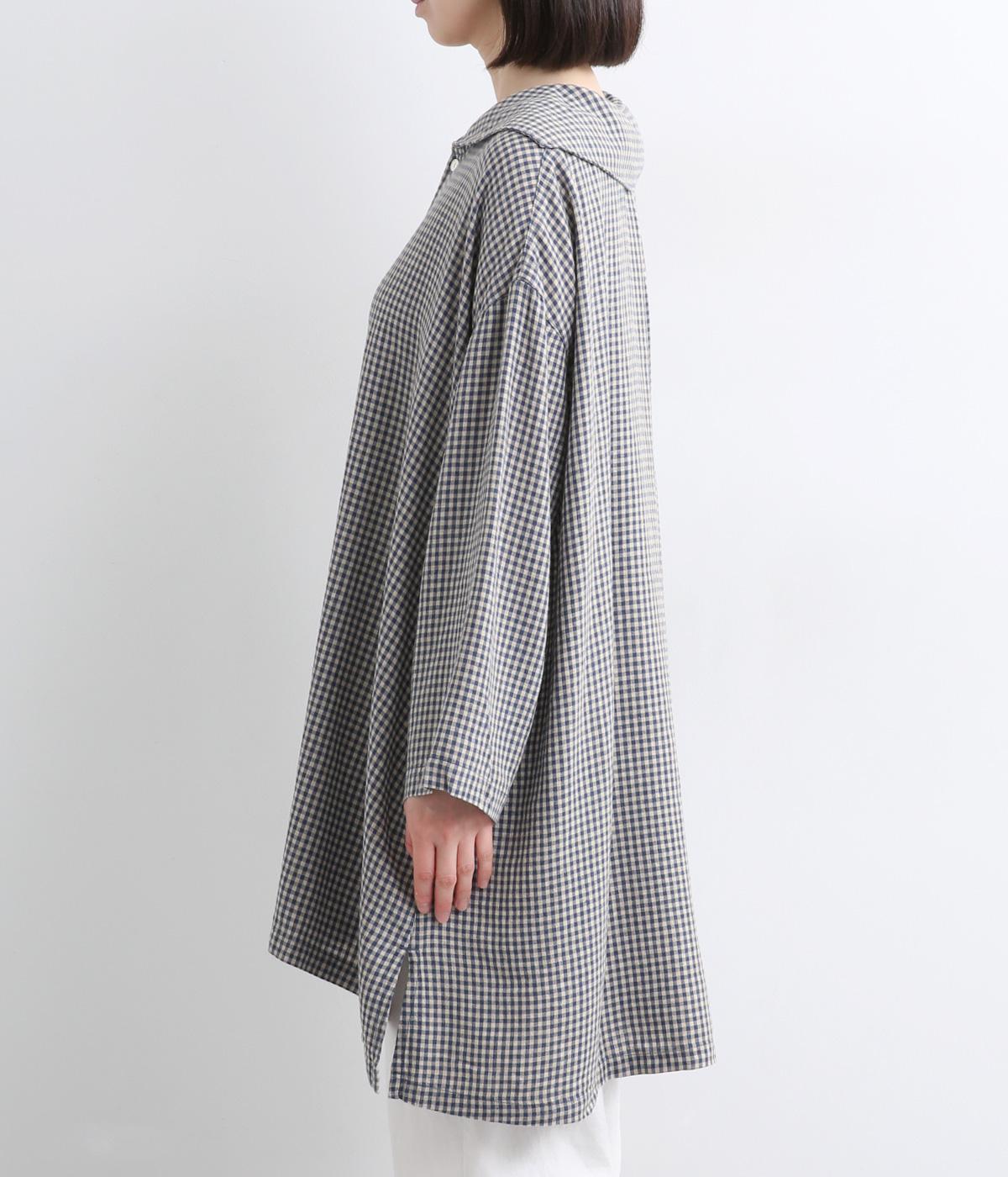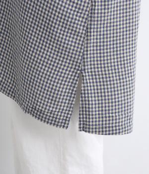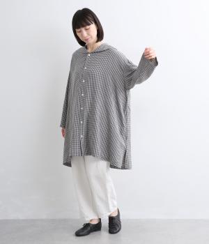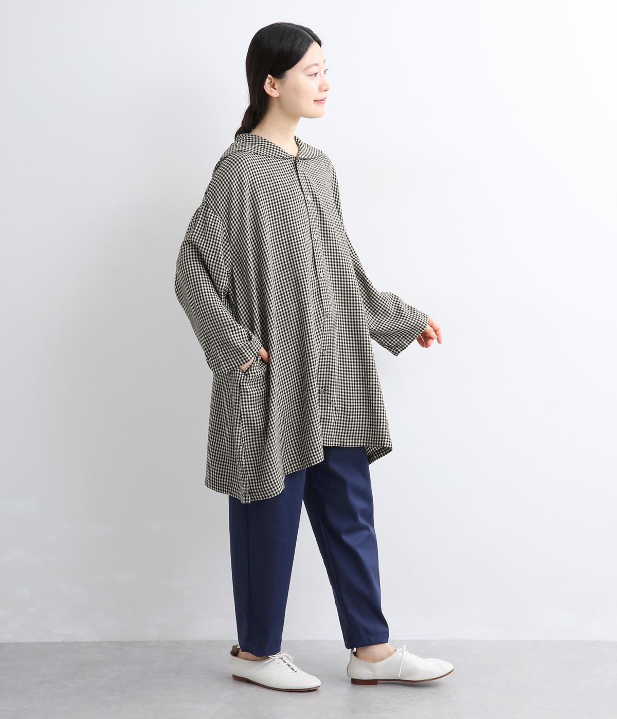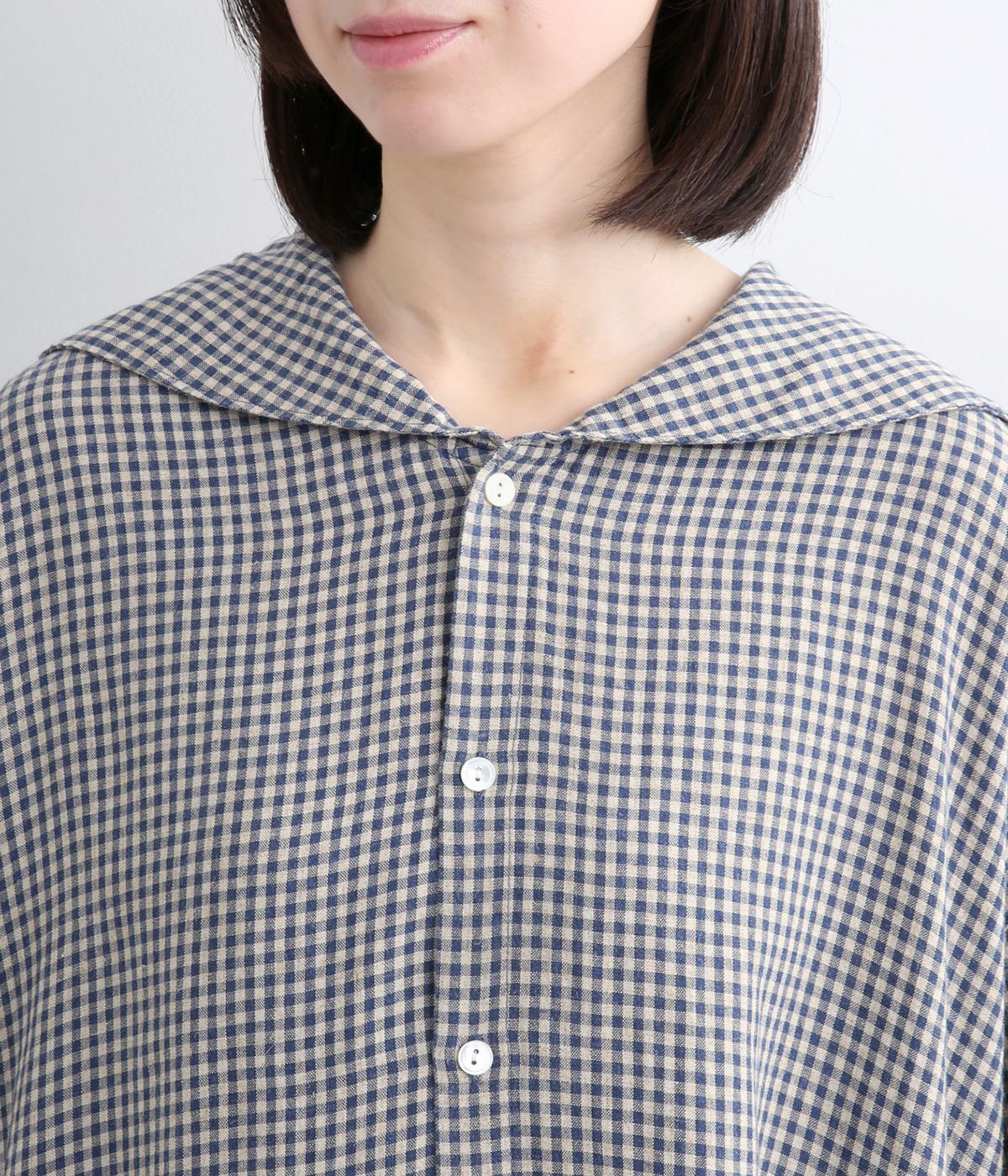 チェック柄にセーラーカラーが大人ガーリーな要素をプラス。ドロップショルダーのゆったりとしたシルエットがリラックス感を生み、サイドスリット入りでボトム合わせも◎。前あきで羽織るなど、デイリースタイルに気負いなく取り入れられます。