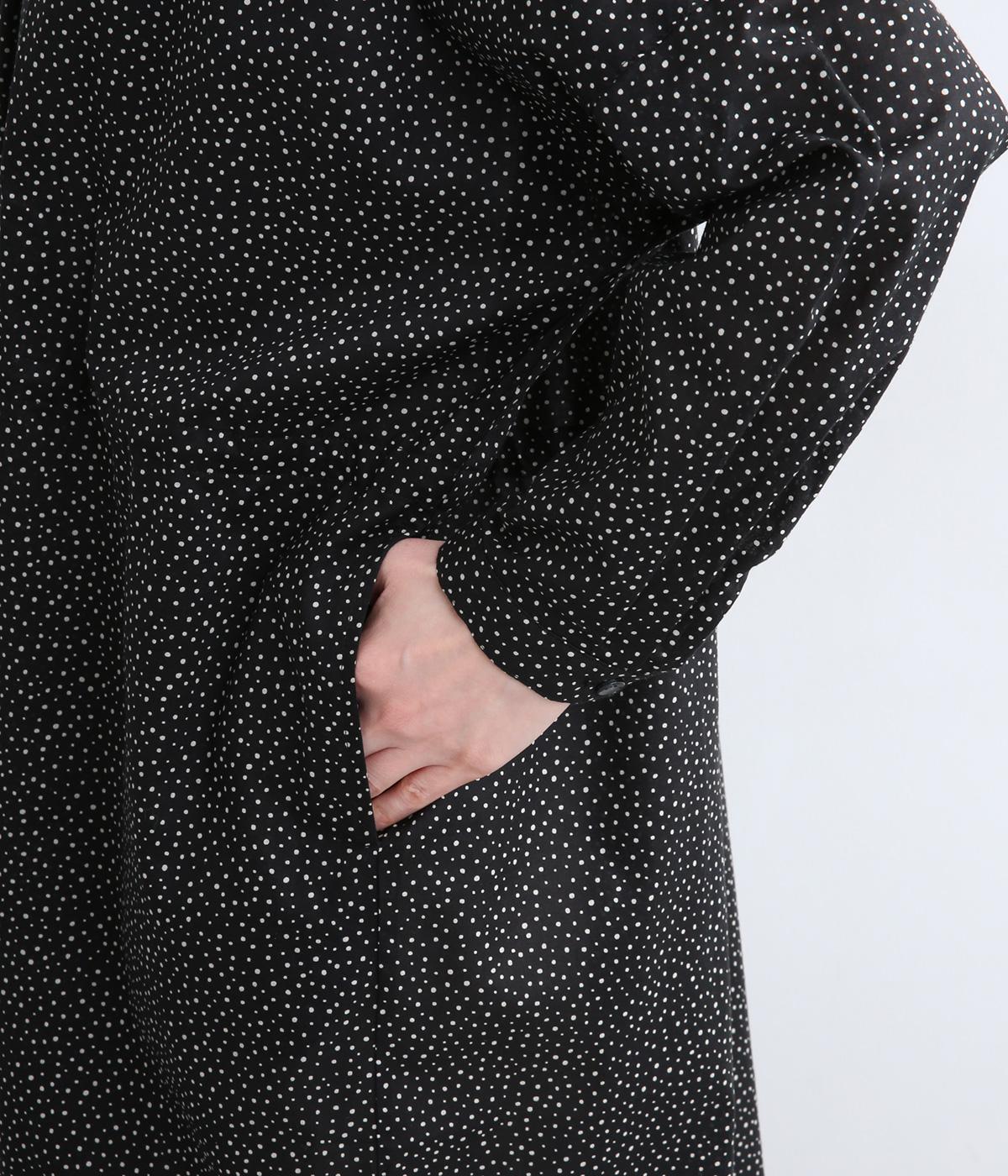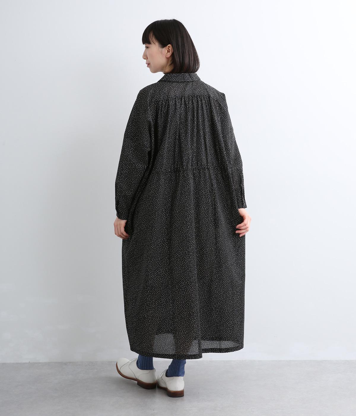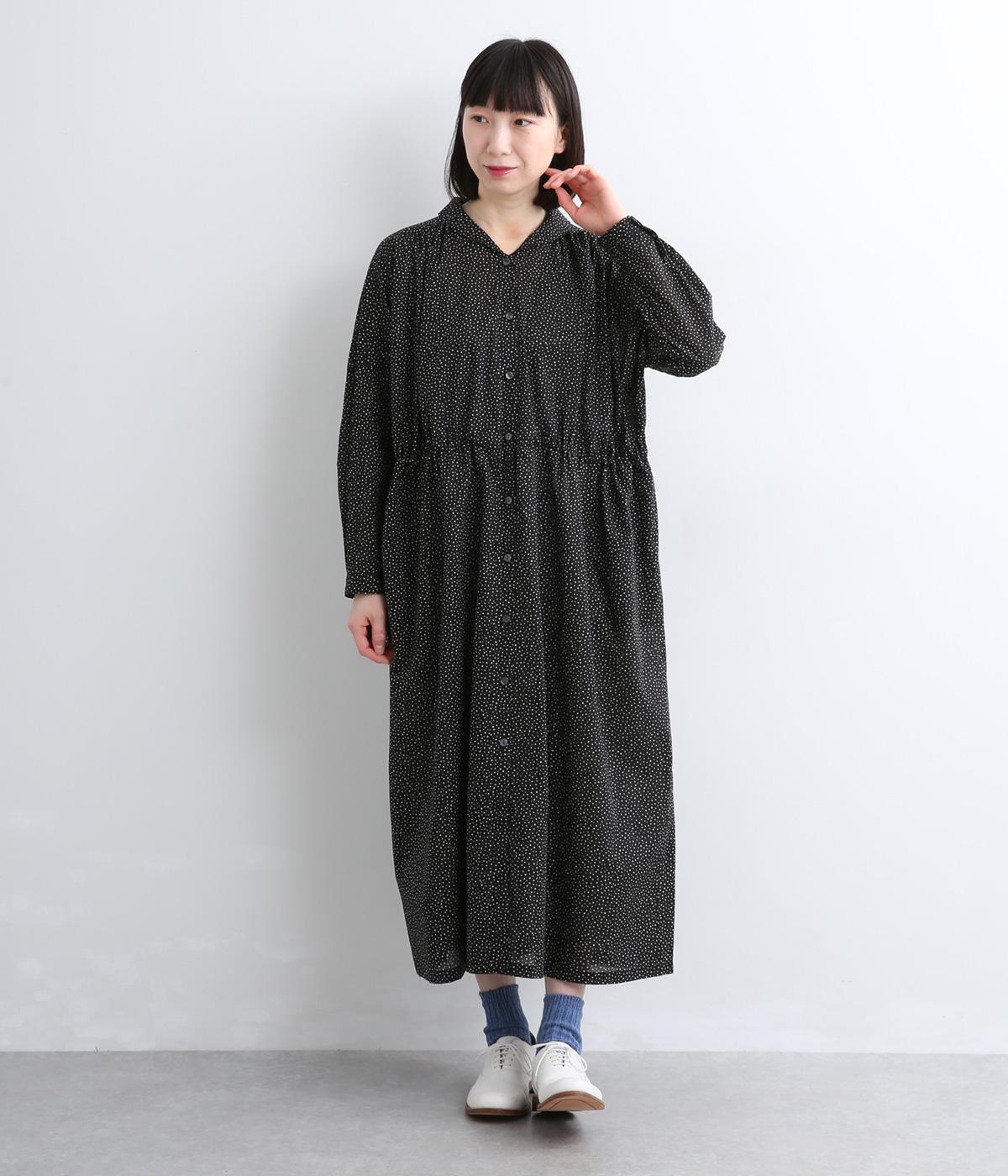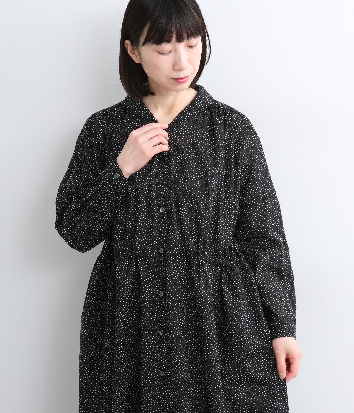 ローンランダムドット ショールカラーワンピース(ブラック-F)