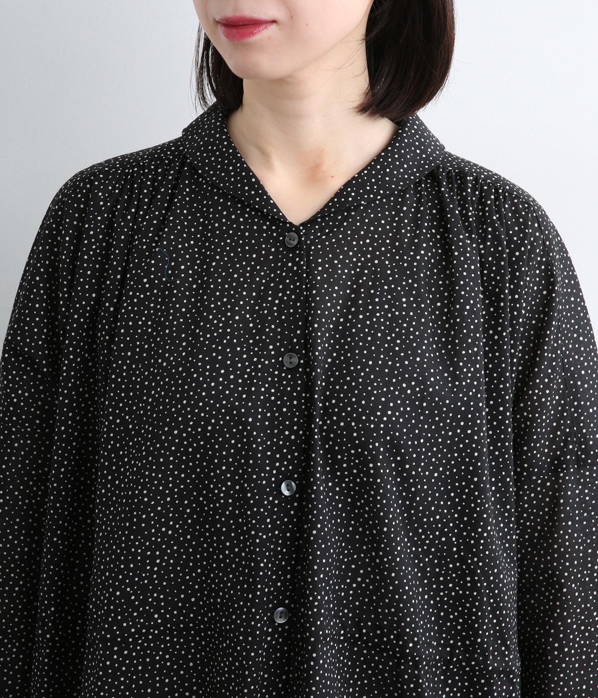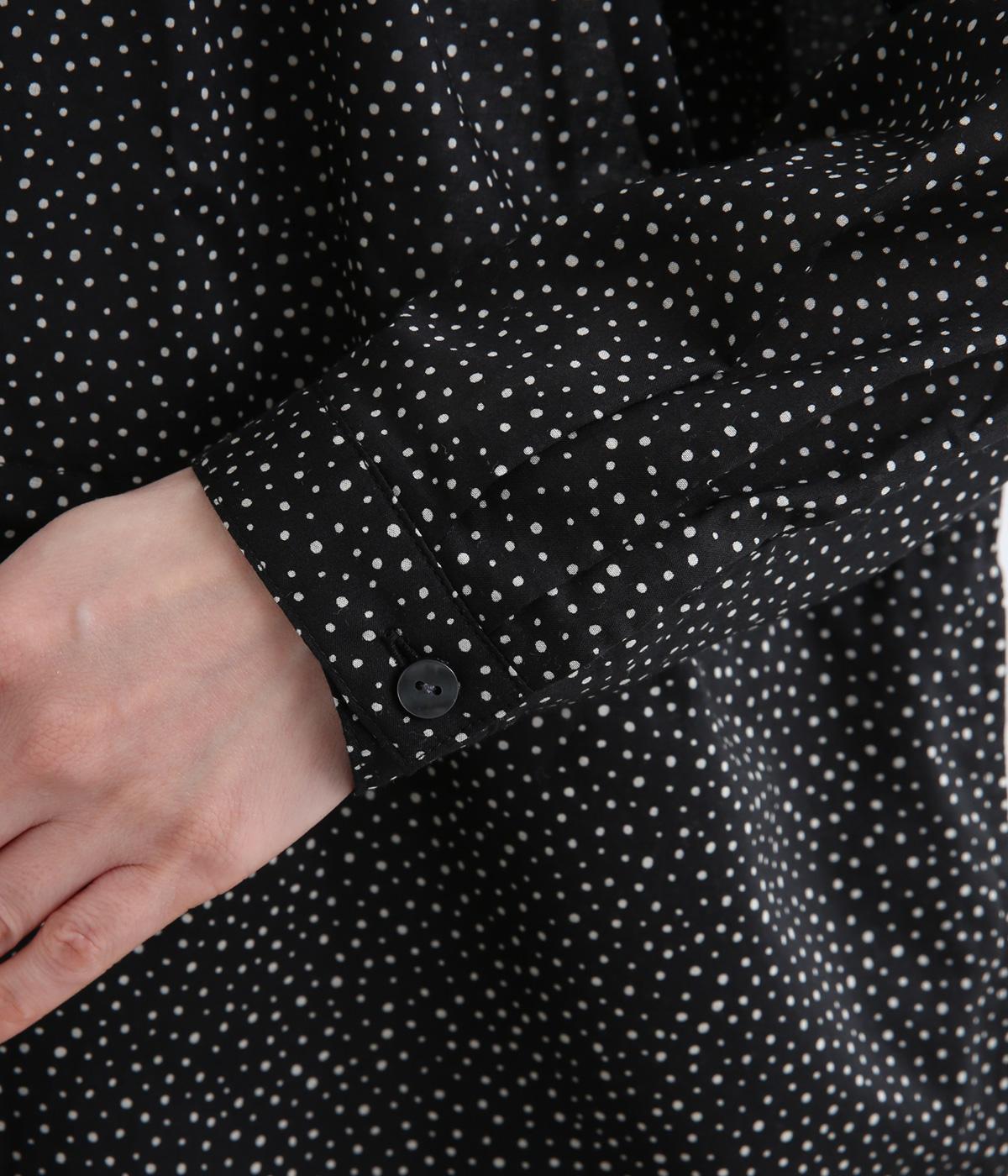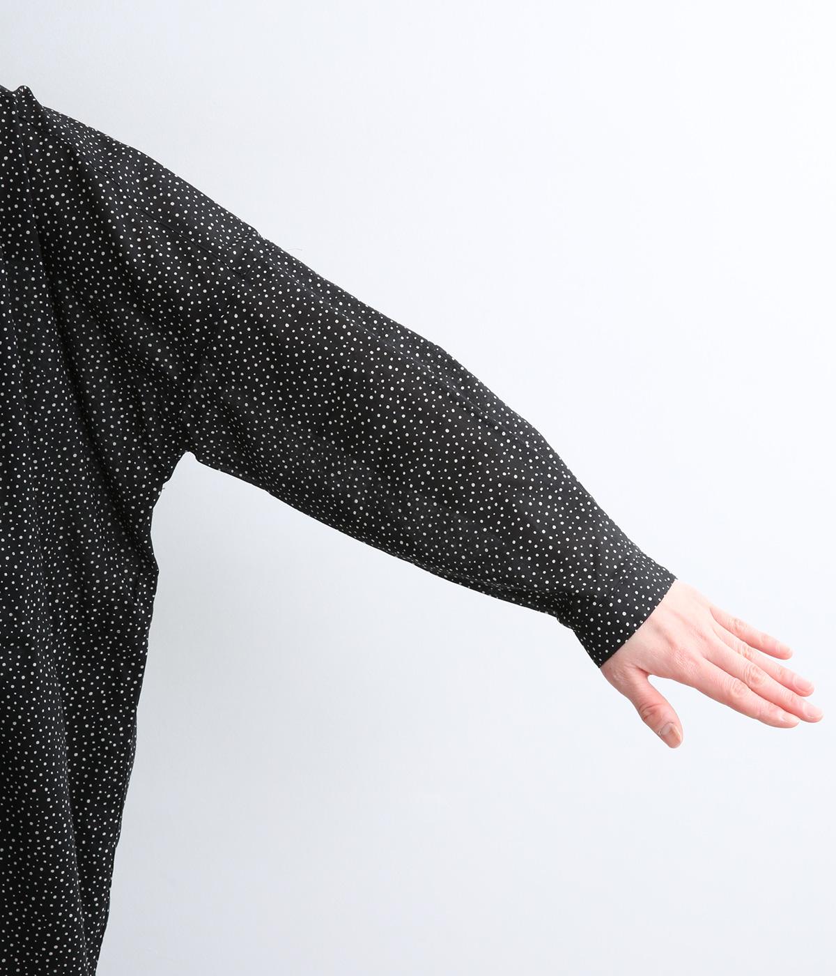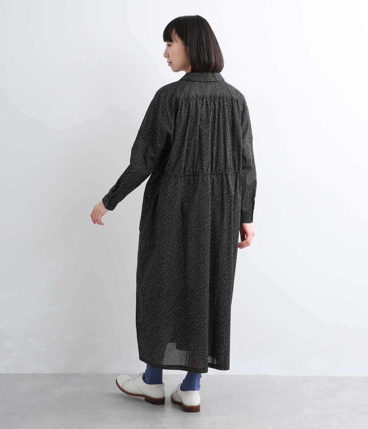 ローンランダムドット ショールカラーワンピース(ブラック-F)