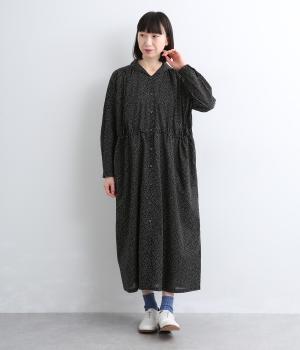 ローンランダムドット ショールカラーワンピース