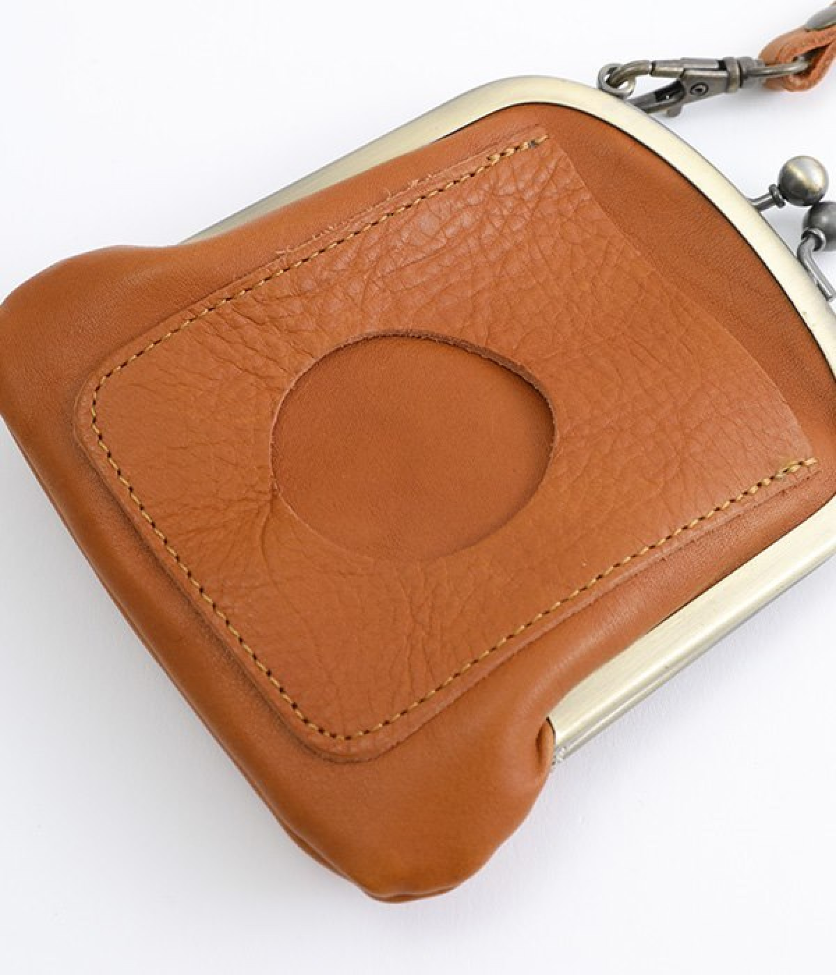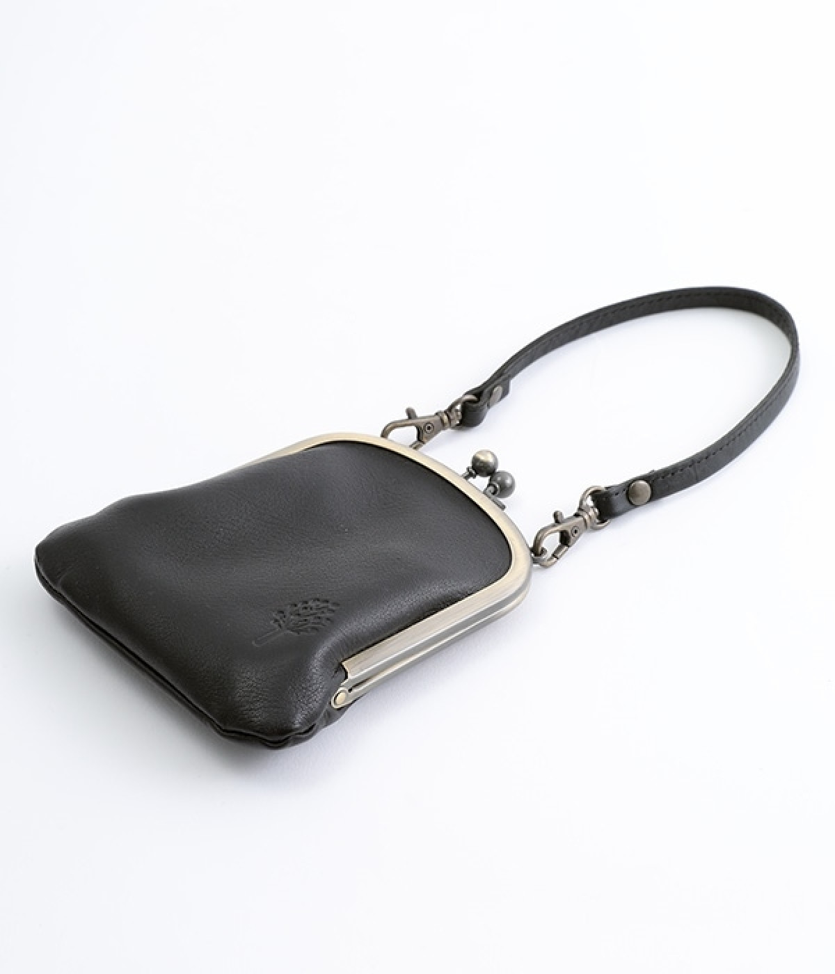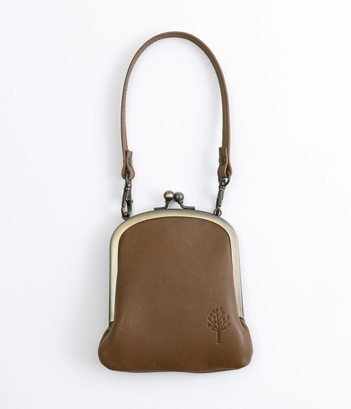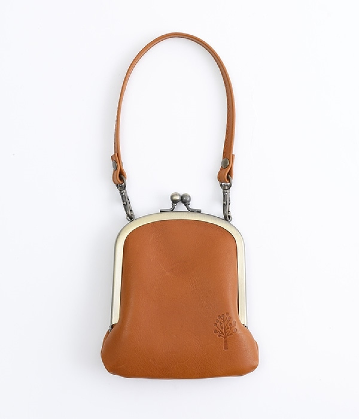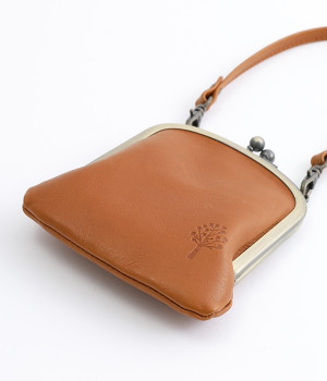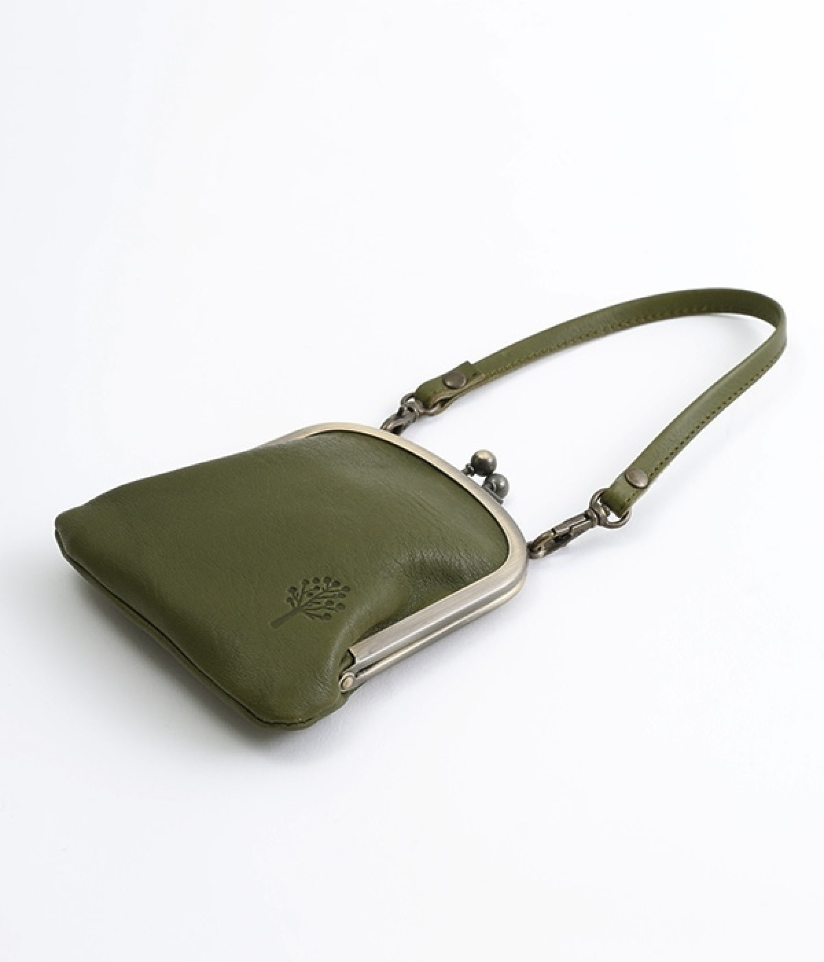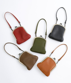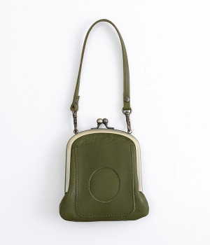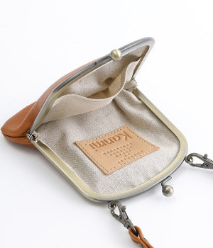 バッグにかけて使えるプチサイズのがま口型パスケースです。深めのがま口の内部には内ポケットが設置されていて、カード類や鍵などの整理に役立ちます。右下にはワンポイントにkanmi.のロゴでもあるドロップツリーをあしらいました。長く使い込むことで経年変化を楽しめる、レザーのやわらかな風合いにもご注目ください。