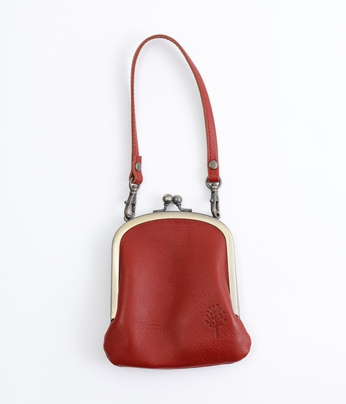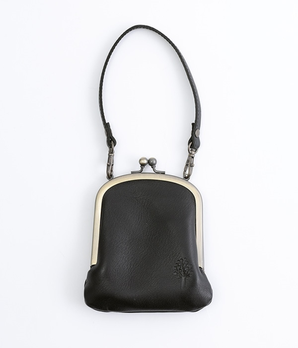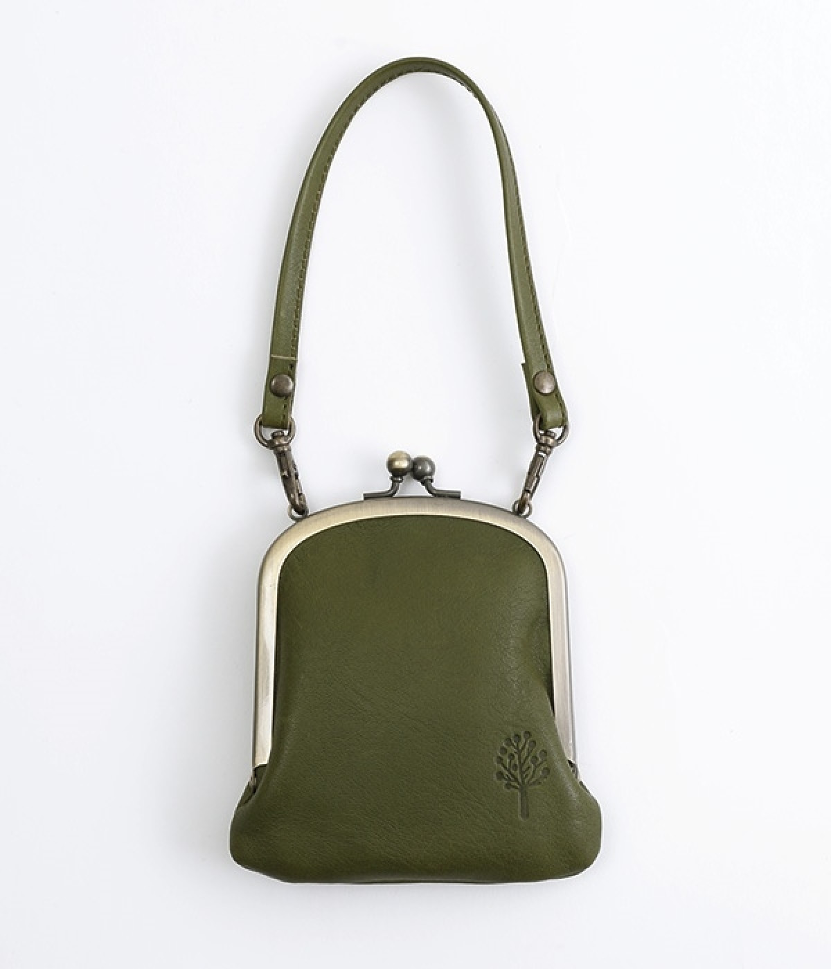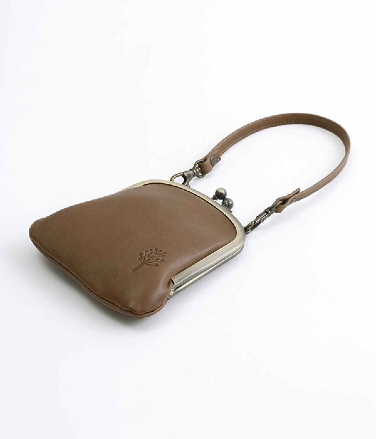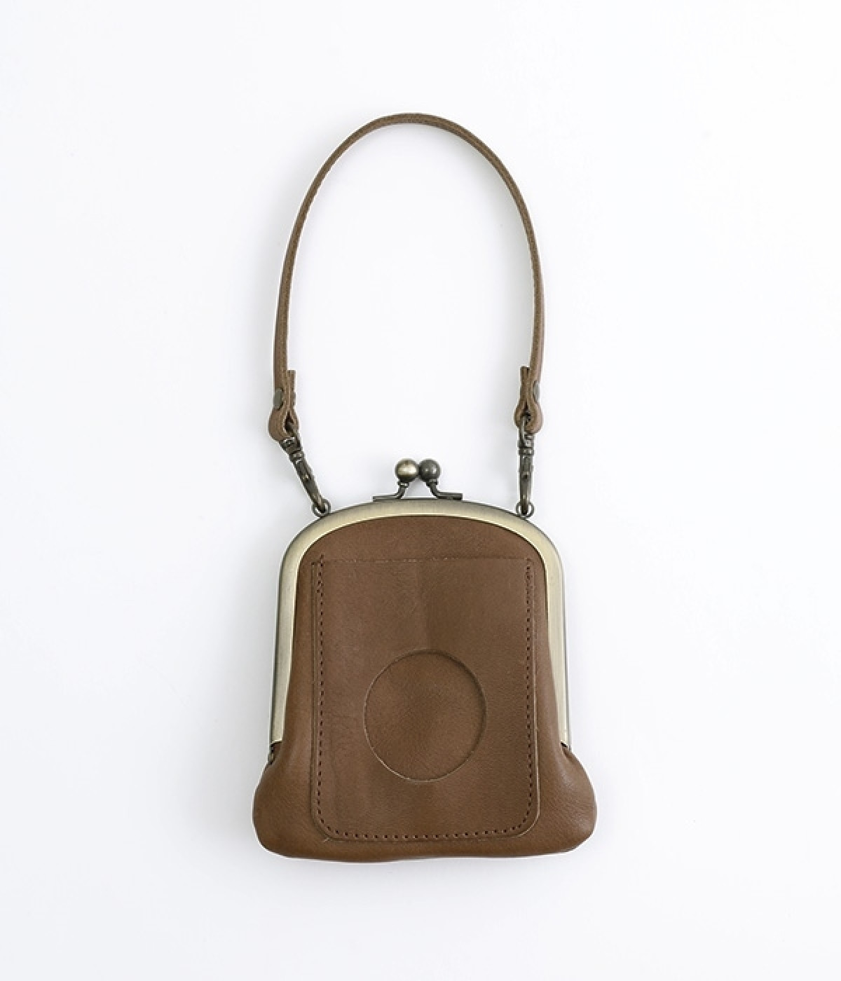 バッグにかけて使えるプチサイズのがま口型パスケースです。深めのがま口の内部には内ポケットが設置されていて、カード類や鍵などの整理に役立ちます。右下にはワンポイントにkanmi.のロゴでもあるドロップツリーをあしらいました。長く使い込むことで経年変化を楽しめる、レザーのやわらかな風合いにもご注目ください。