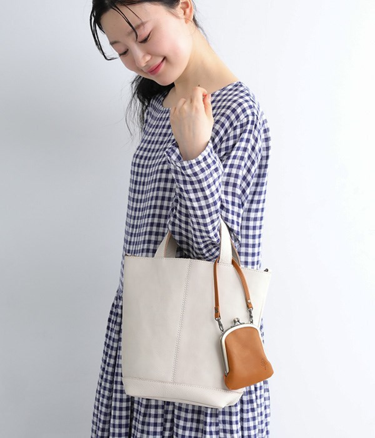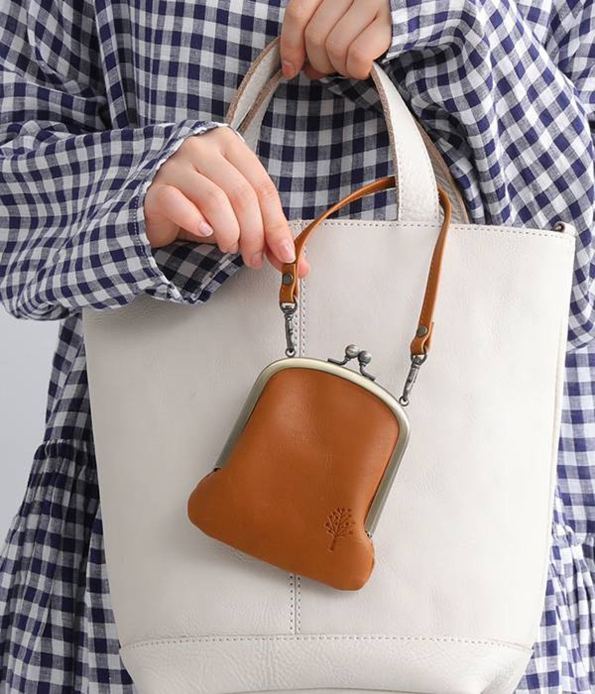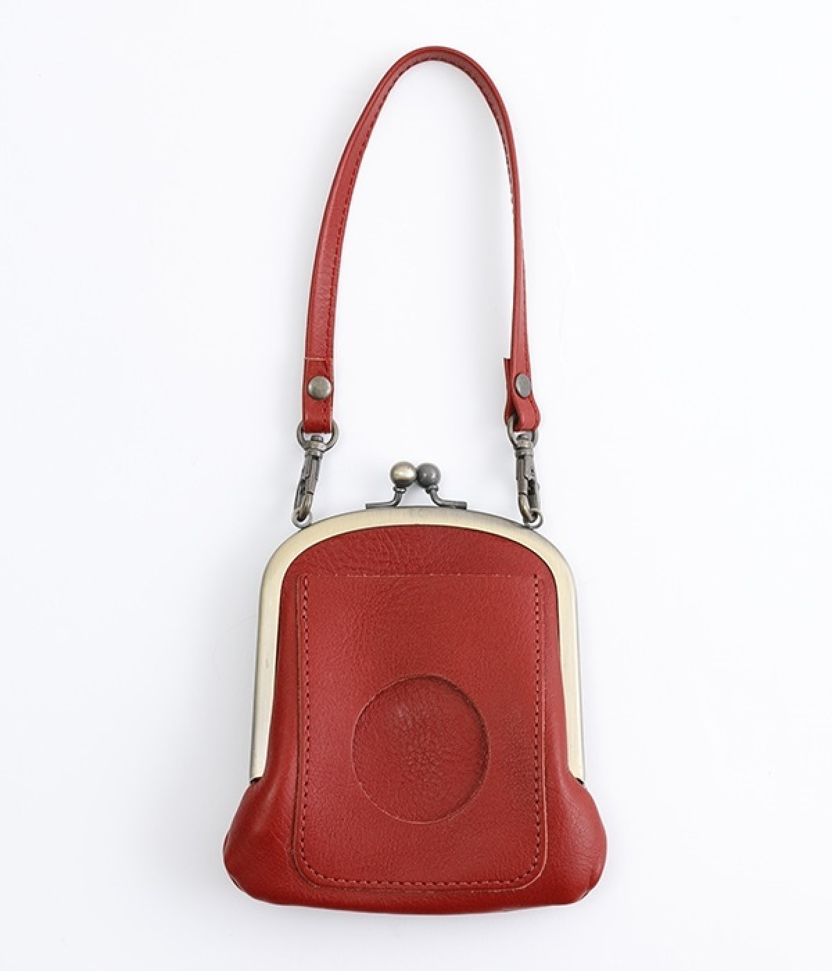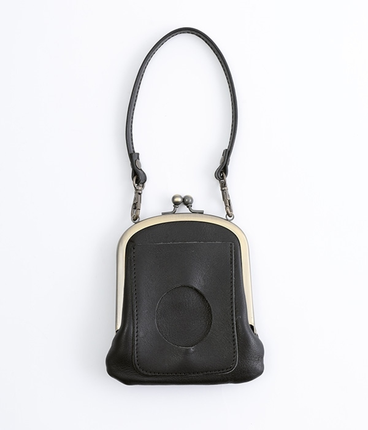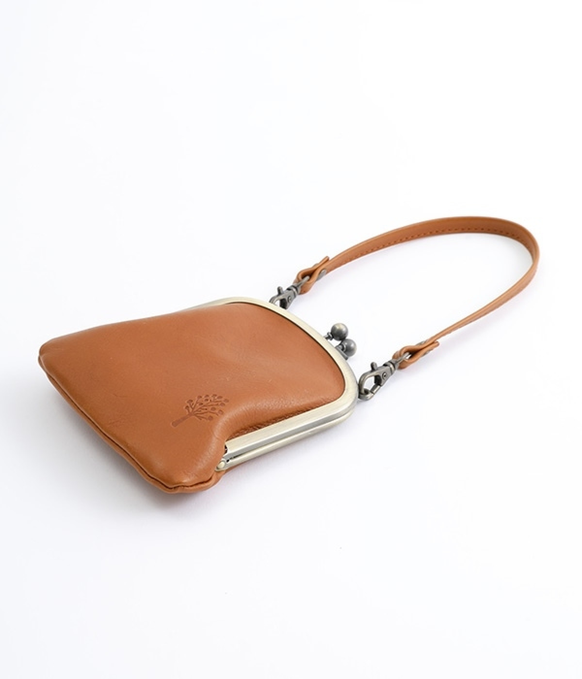 バッグにかけて使えるプチサイズのがま口型パスケースです。深めのがま口の内部には内ポケットが設置されていて、カード類や鍵などの整理に役立ちます。右下にはワンポイントにkanmi.のロゴでもあるドロップツリーをあしらいました。長く使い込むことで経年変化を楽しめる、レザーのやわらかな風合いにもご注目ください。