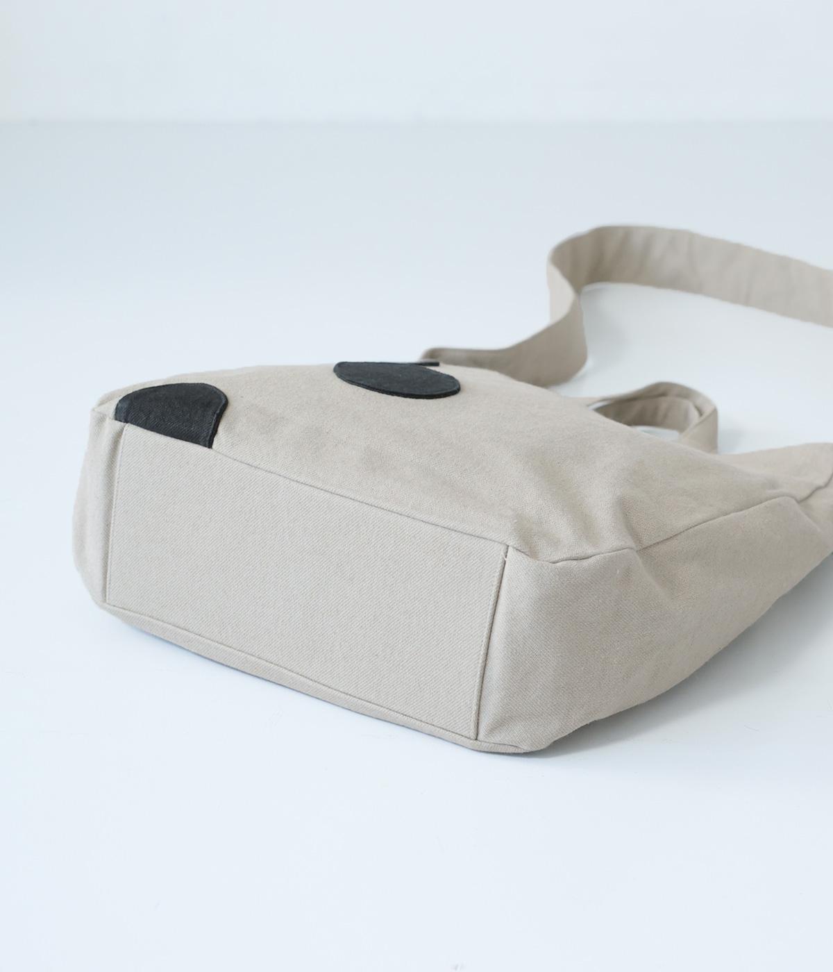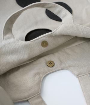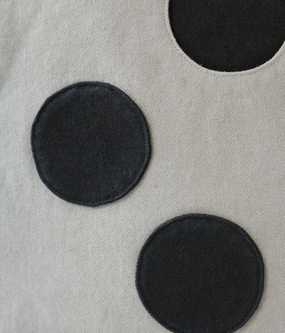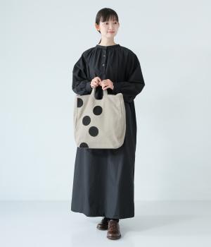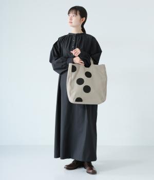 ナチュラルな風合いが魅力のリネンコットン生地。しかりとした厚みがあり、丈夫でデイリー使いしやすいのが◎です。ドット部分は生地を張りつけて立体感を持たせました。