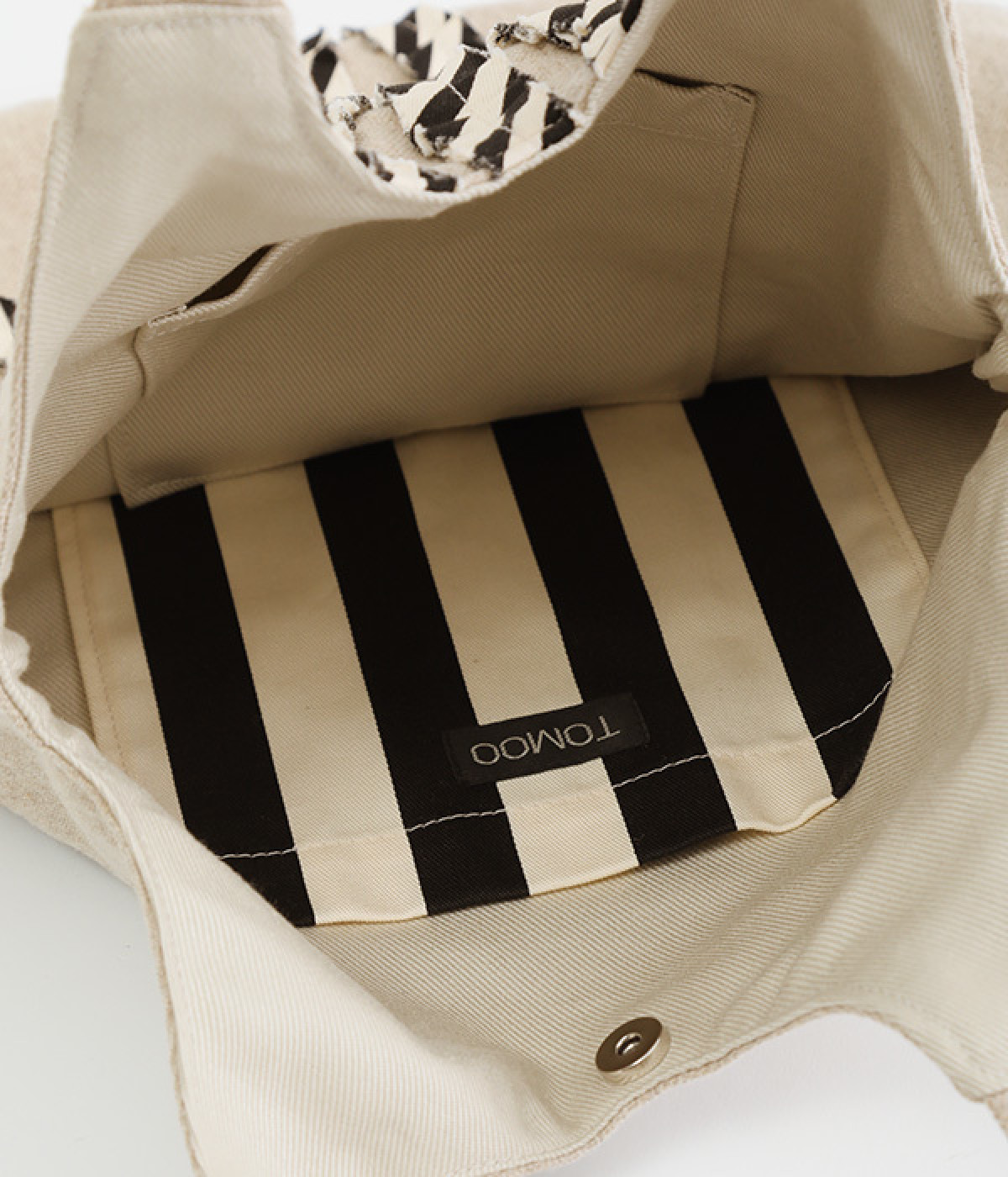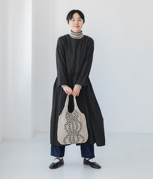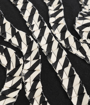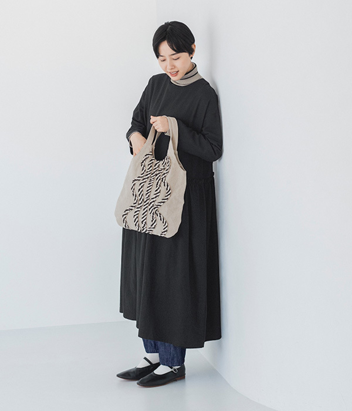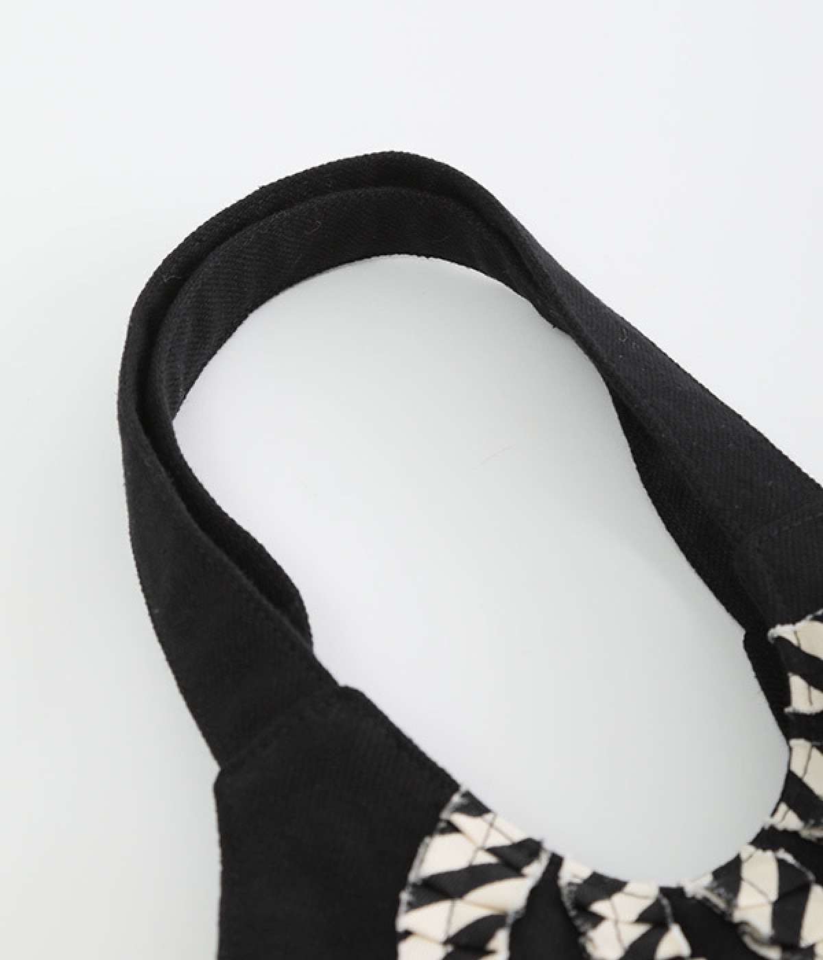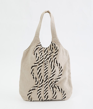 ストライプ布をシャコ貝のような形に縫いつけて遊び心を