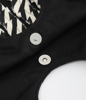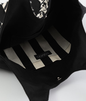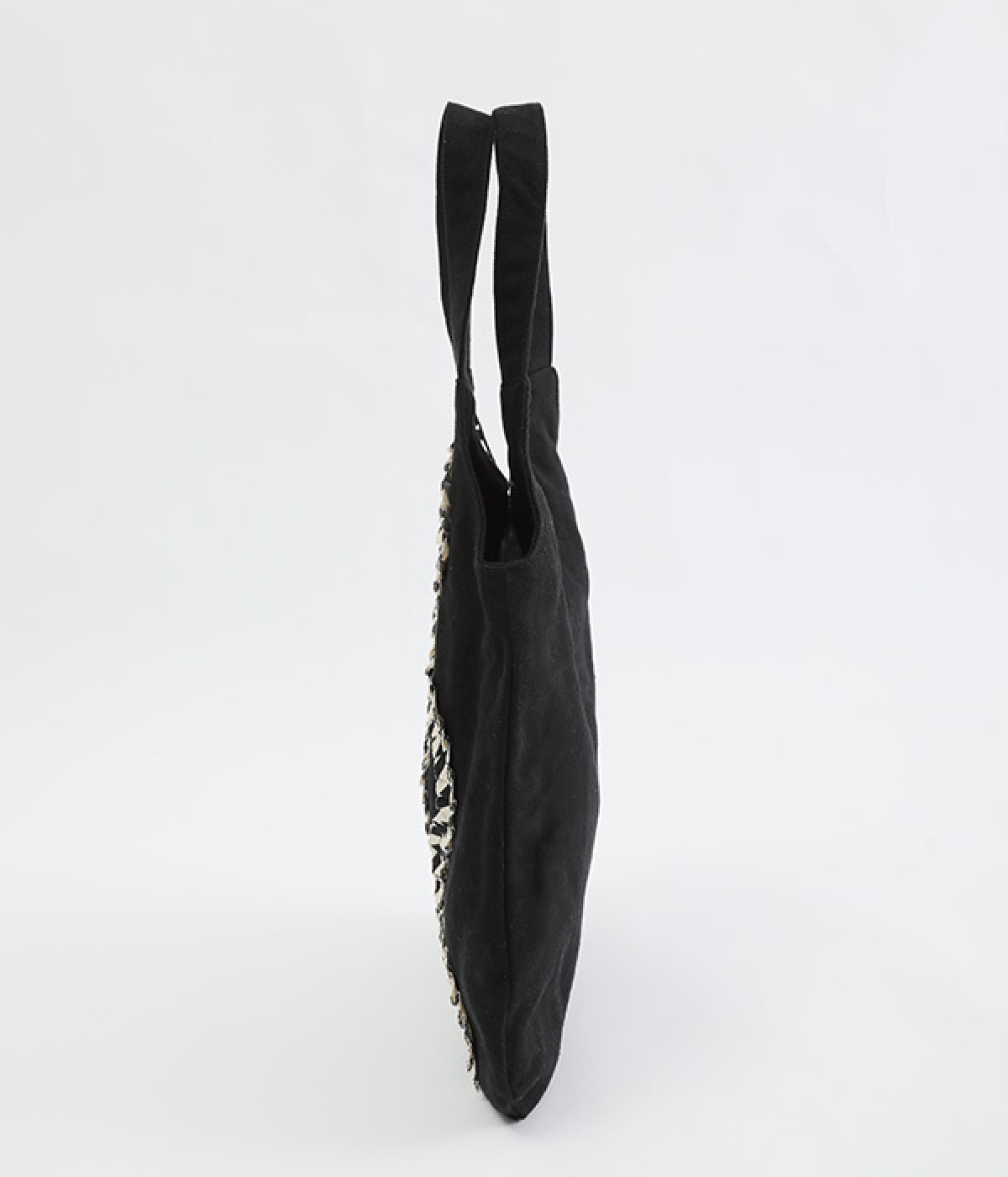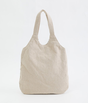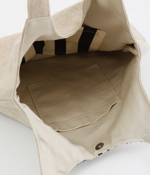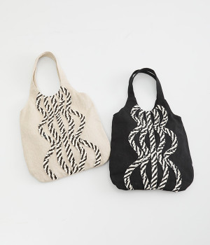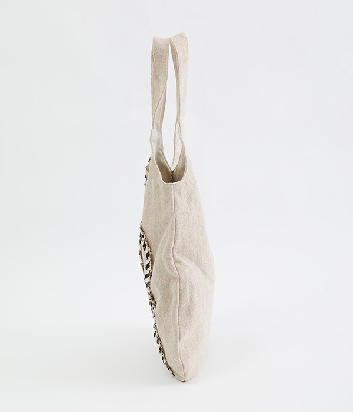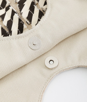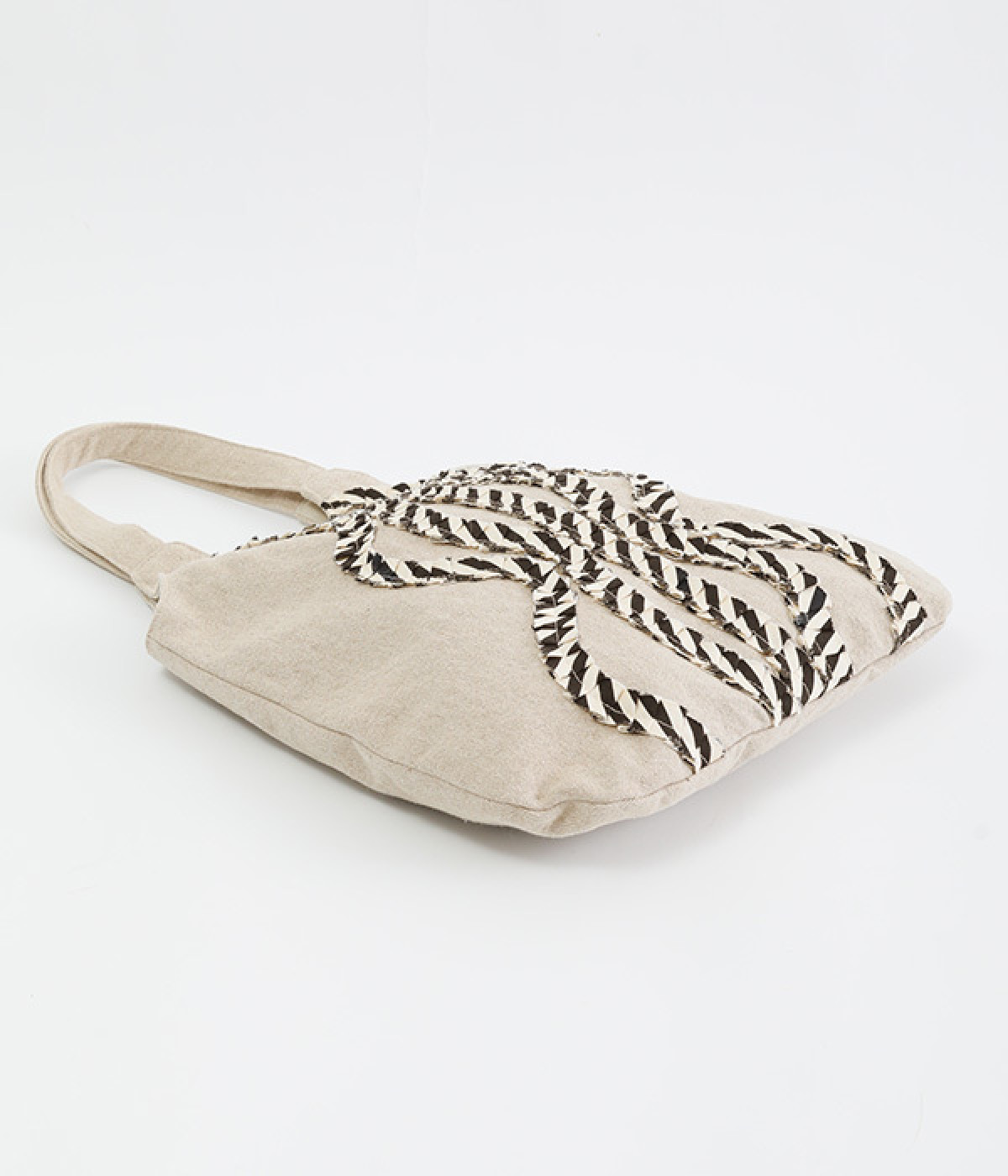 ストライプ布をシャコ貝のような形に縫いつけて遊び心を