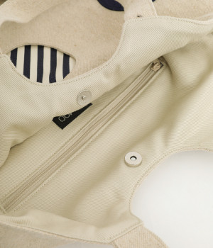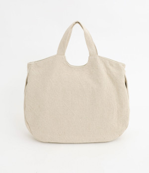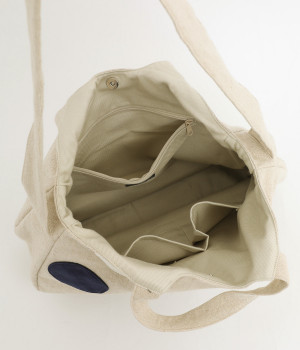 リネン×コットンのキャンバス生地を使用。ほどよい厚みがありながらも、天然素材ならではのやわらかくなじみの良い素材です。