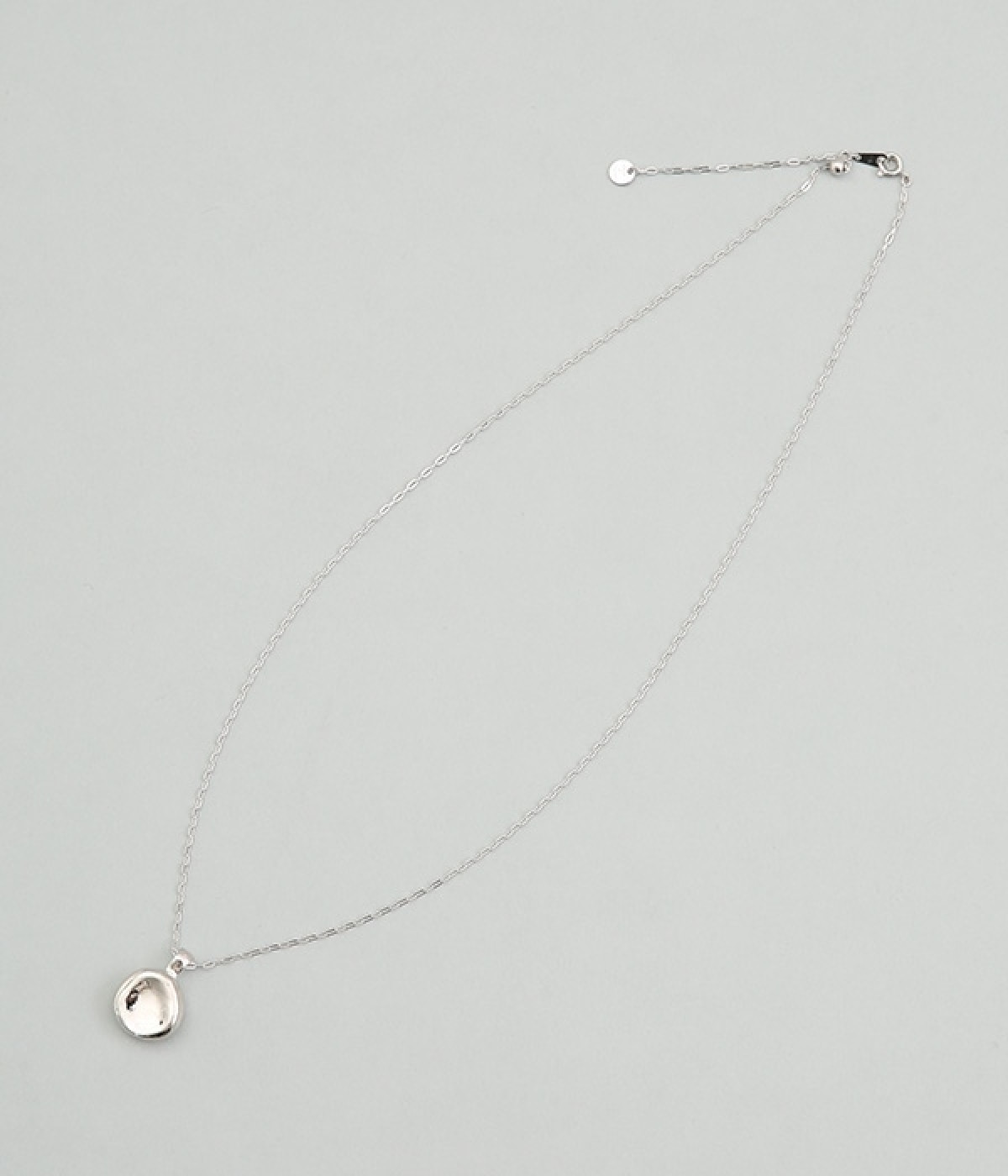 トップモチーフがリバーシブル仕様になっているフレキシブルなネックレスです。片面はフラット、もう片面はくぼみ加工と、ややいびつなサークル型の見え方に変化をつけた自由なデザイン。モチーフ自体が小ぶりなのでスタイリングのジャマにならずにすっとなじんでくれます。チェーンは長さを変えられるアジャスタータイプ。