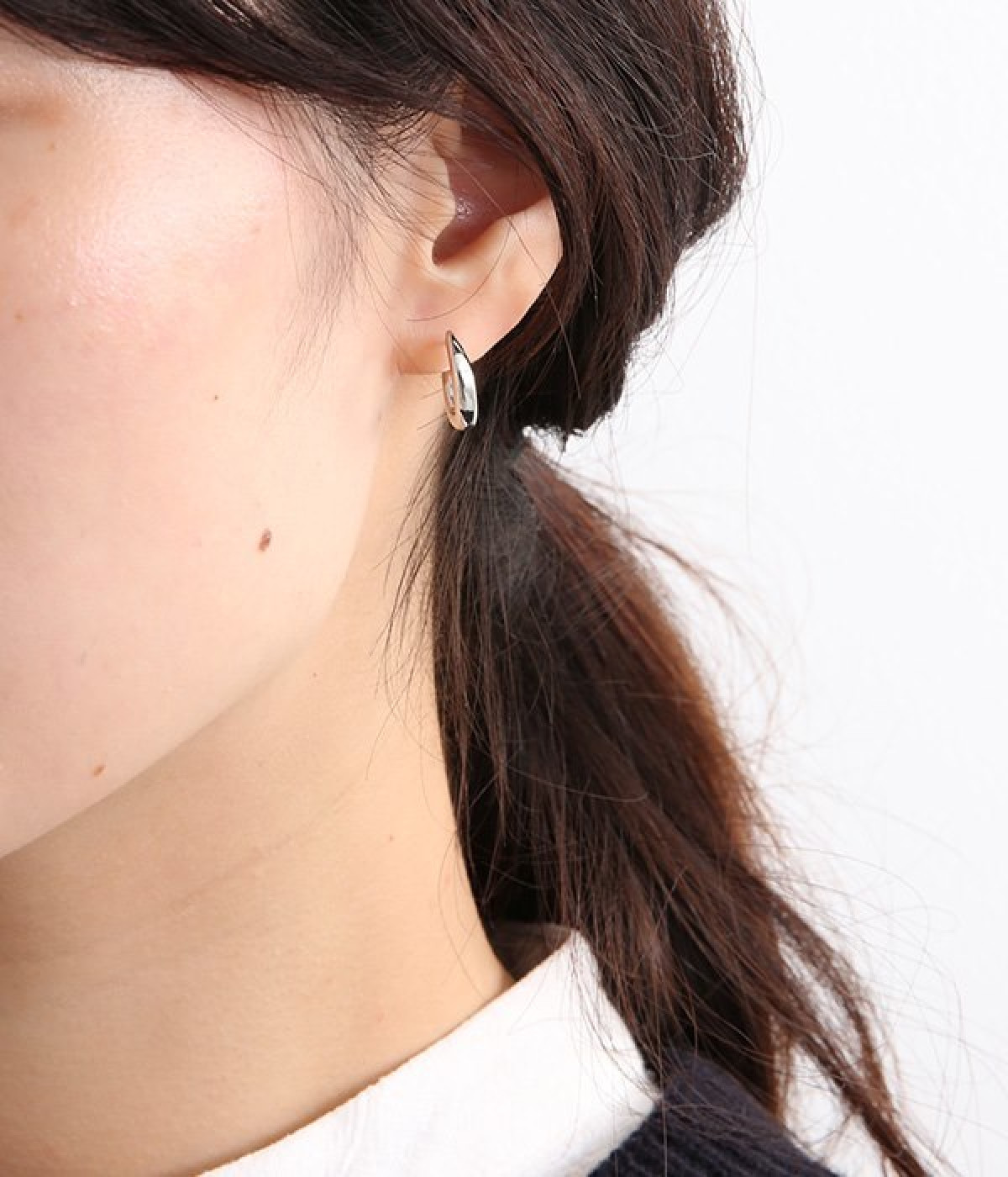 顔まわりのさりげないアクセントになるシンプルなデザインのフープピアスです。さり気ないサイズ感ですが華やかさがあるのでTシャツやデニムなどと合わせて普段使いはもちろん、キレイめのワンピースと合わせてパーティシーンなど特別感のあるお出かけシーンにも活躍。ミニサイズのピアスと重ねづけをして、より耳元にボリュームを加えるのもおしゃれです。