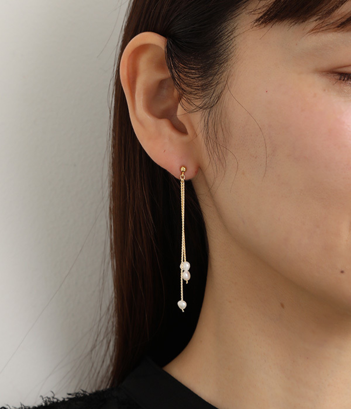 自由に揺らめく淡水パールが顔まわりを華やかに