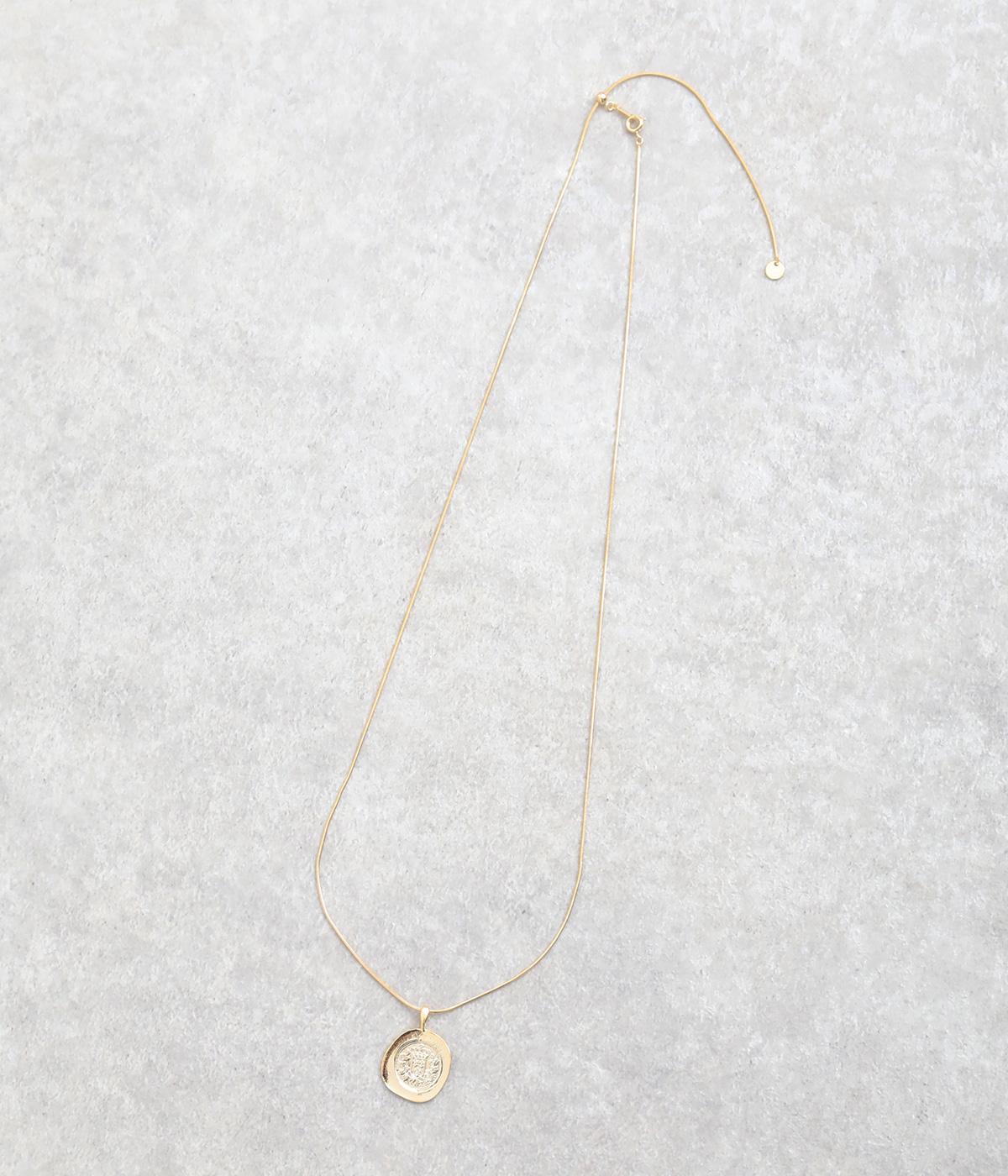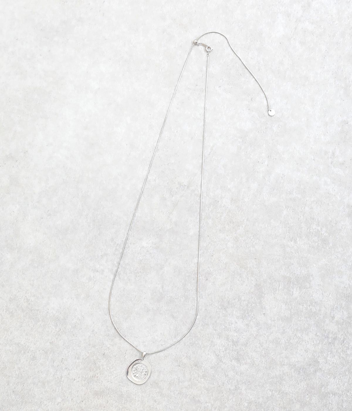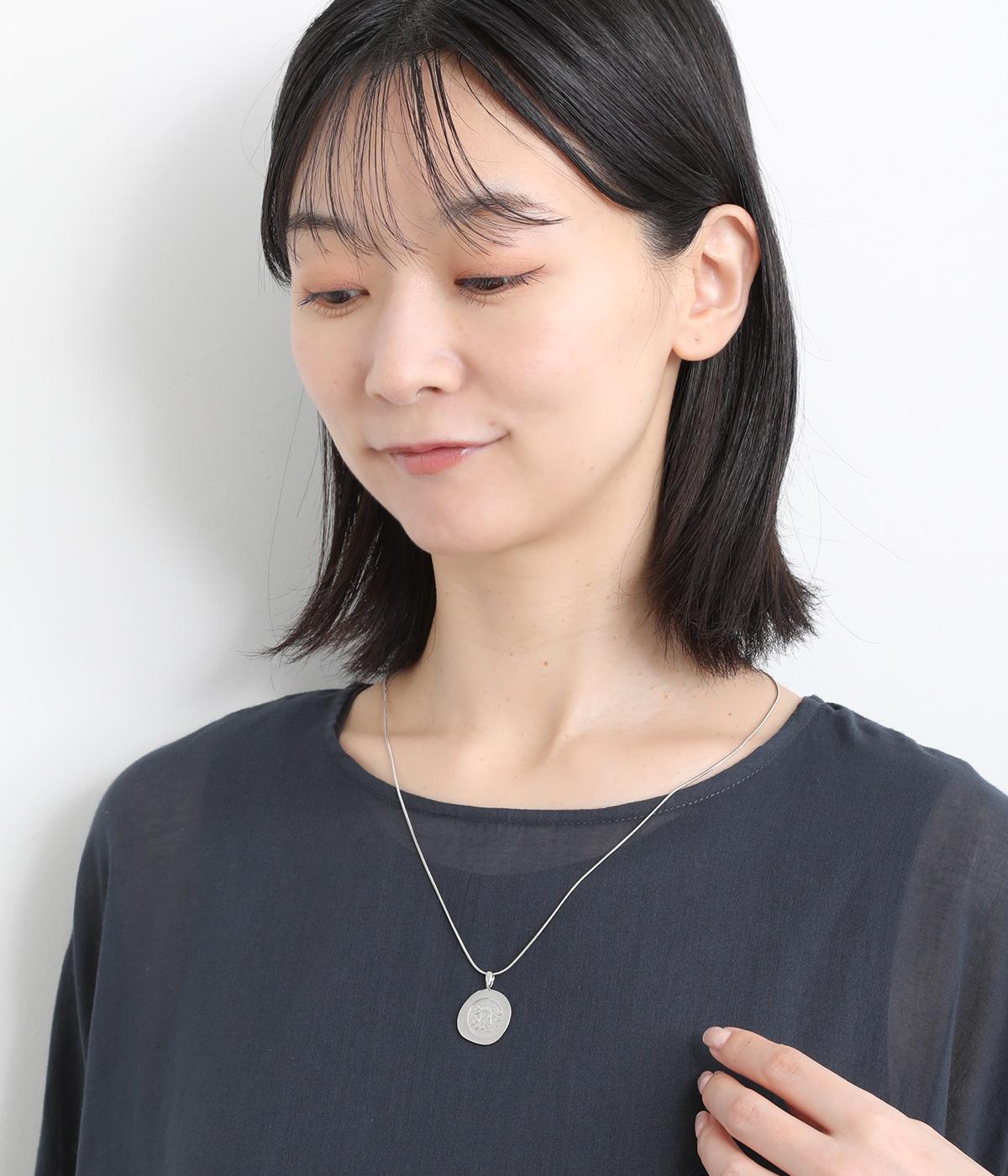 カジュアルからきれいめまで幅広く対応できるコインモチーフのネックレスです。ミディアムからショートまでお好みのバランスで着用できます。チェーンネックレスなどとの重ねつけもおすすめです。
