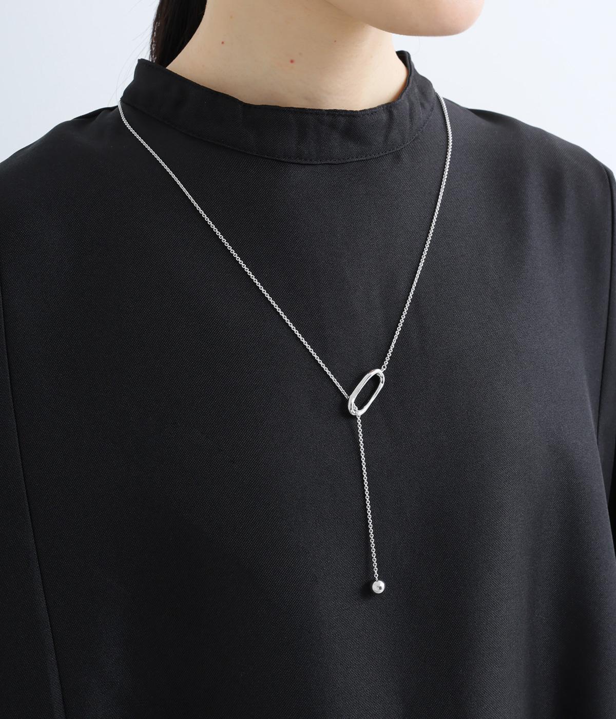 メタルのリングパーツと丸いモチーフを組み合わせたチェーンネックレスです。スライドパーツで長さ調節ができ、着脱も簡単。華奢めなサイズのチェーンを採用しているので、様々なスタイリングに合わせやすい仕上がりです。